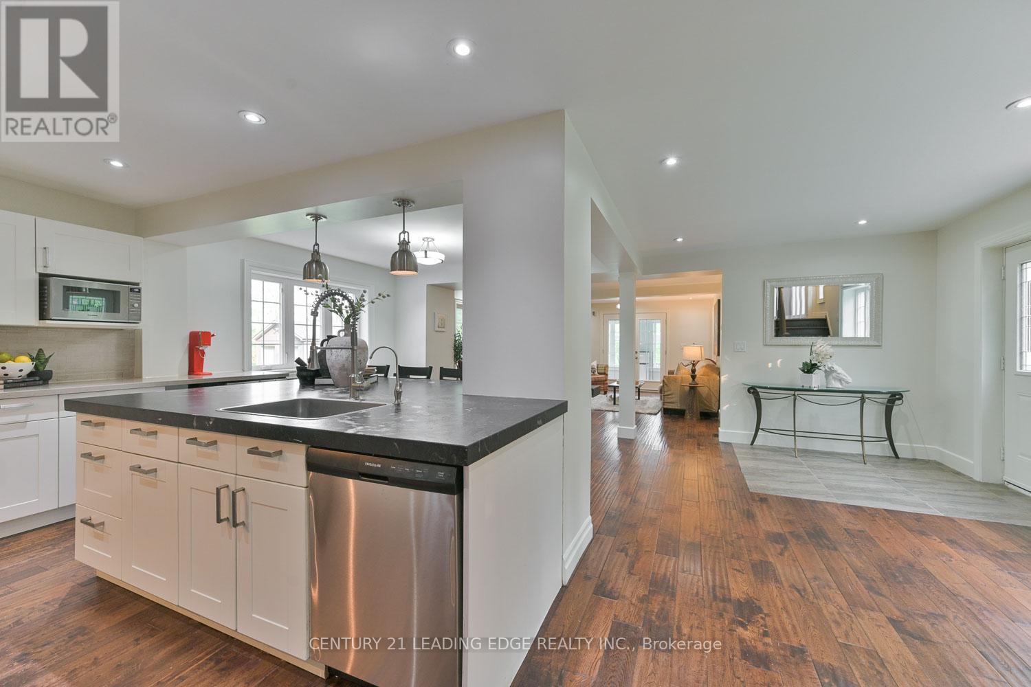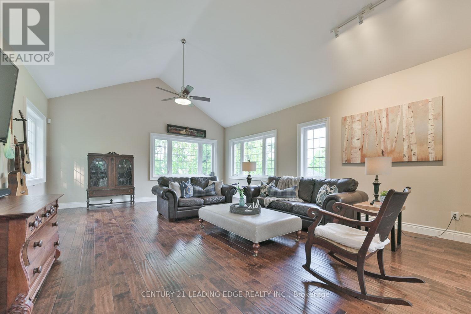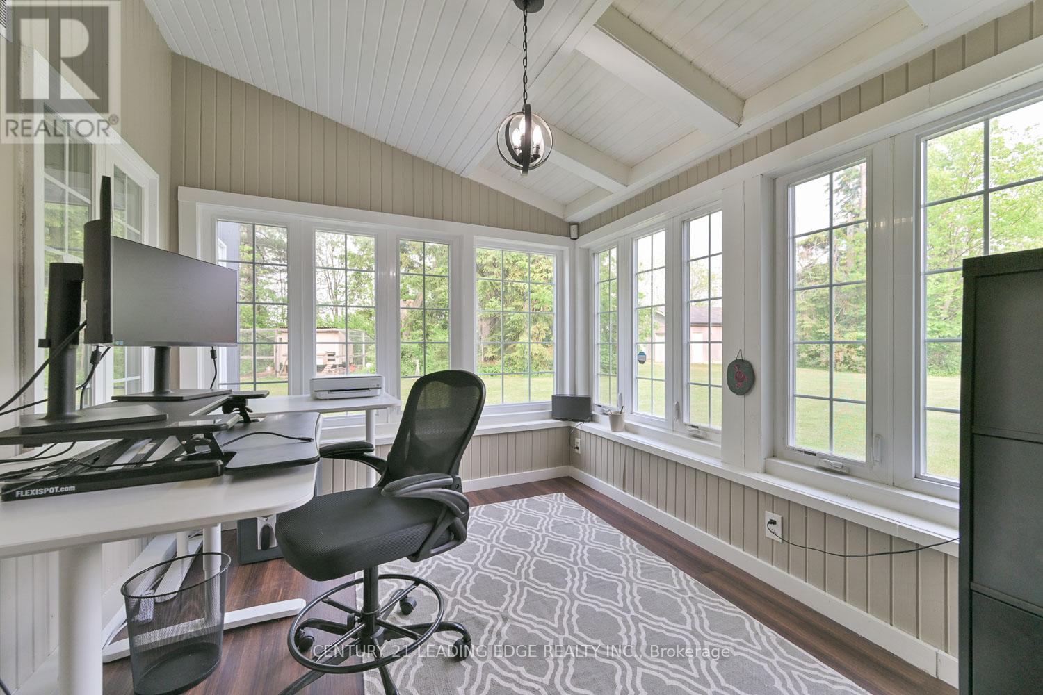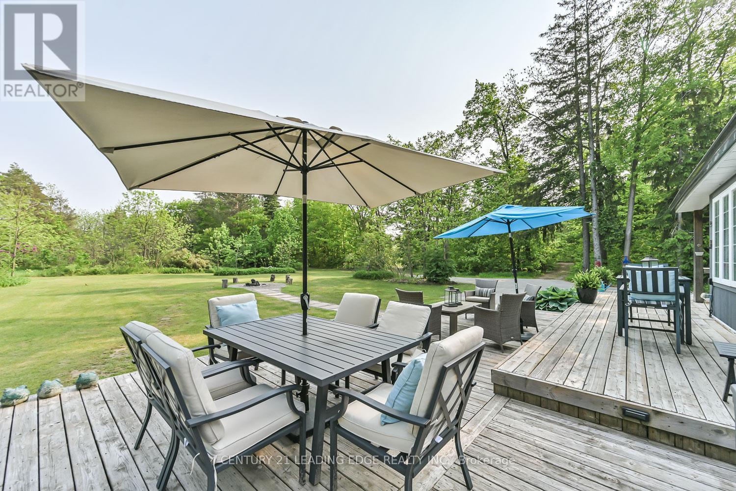 Nestled on 8.33 acres of pristine, unspoiled land, this exceptional one of a kind property offers the tranquility of Muskoka with the convenience of suburban living. Lovingly restored in 2014, the home blends timeless modern finishes with a layout ideal for growing or multi-generational families. Every detail of the exterior was updated during the restoration including the roof, soffits, eaves, windows, and exterior doors. The expansive grounds include a 10' x 10' storage shed, a separate 20' x 30' heated workshop, and a charming chicken coop for those with a passion for hobby farming. A 1000 sq ft. detached guest house which is just a short stroll from the main home features a sitting area with kitchenette, bathroom and a 2nd floor loft, a cozy and private space for visitors. Inside, the main home features a unique and versatile layout with dual staircases and distinct wings that flow seamlessly together. The main floor of this 3800 sq ft home boasts an open-concept chef-inspired kitchen overlooking the living and dining areas. Adding more convenience to this space is a powder room and laundry room with additional storage. The upper level offers a stunning great room and dining area with soaring cathedral ceilings and architecturally inspired windows that flood the space with natural light. The luxurious primary suite is a true retreat, featuring a spa-inspired ensuite and walk-out to a glass-enclosed balcony. With a total of 5 bedrooms & 5 bathrooms this property provides plenty of room for the whole family. Enjoy chilly evenings in the enclosed sunroom or take in panoramic views from the multi-level deck overlooking the rolling greenery and serene surroundings. Whether you're entertaining, gardening, or simply unwinding, this property offers the perfect backdrop. (id:51158)