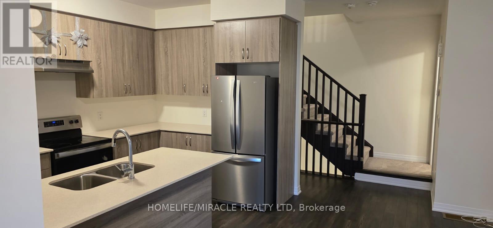 Spacious end unit townhouse overlooking the park. This 3 bedroom + den (can be used as office, bedroom or play room) has been freshly painted, with carpets steam-cleaned and the home professionally cleaned. The townhouse features 10 ft ceiling on main level with laminate flooring on main and lower level, high end kitchen cabinetry with quartz countertop and stainless steel appliances. The townhouse features two walkout balconies, with one on main and other in a bdrm. The 2.5 washrooms features laminate countertop and imported ceramic wall tiles. Townhouse is close to schools, grocery stores, restaurants and it takes less than 5 minutes to get on the highway 403. (id:51158)
