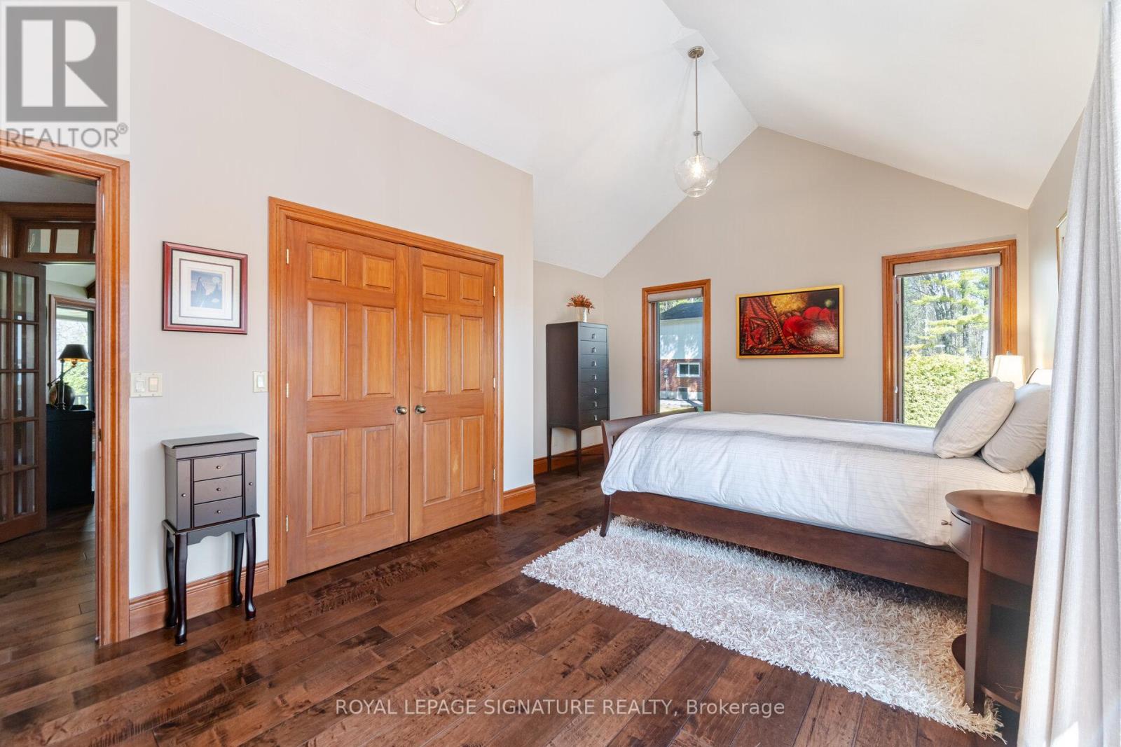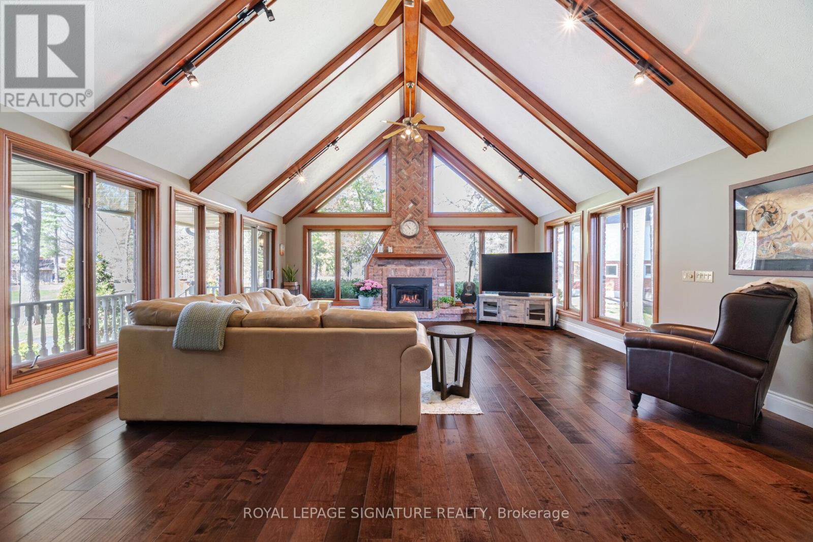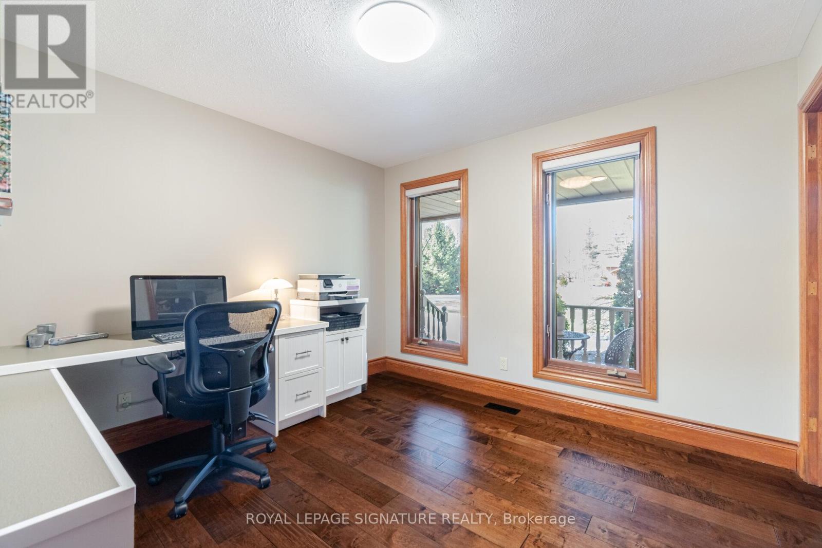 Stunning Country Estate !!! This One-of-a-Kind Masterpiece captivates from the very first glance with unmatched curb appeal and it's distinctive design. A true architectural gem, the home showcases custom exposed timber and iron construction, offering a dramatic welcome with soaring 26-foot ceilings in the foyer & great room. Anchoring the space is a striking gas stove and dramatic staircase just two of of the many bespoke touches throughout. The chefs kitchen is a showstopper in its own right, thoughtfully positioned between the great room & the expansive rear deck. Designed for seamless indoor-outdoor living, its perfect for entertaining on any scale, from intimate gatherings to grand events incorporating the sparkling heated saltwater pool, hot tub, deck, & beyond. Prepare to be awestruck yet again in the window-walled family room, where vaulted ceilings rise above a stunning floor-to-ceiling brick fireplace. Here, panoramic views of the beautifully manicured grounds, create a tranquil yet breathtaking backdrop for family gatherings. The main floor offers 2 bedrooms, including an expansive primary suite that feels like a private retreat. It features a luxurious 5-piece spa-style bath w/glass shower enclosure, a generous walk-in closet & direct access to the deck through a private walkout. Additional features include renovated 3 piece bath & laundry rm. The sweeping, open-riser circular staircase leads to the equally impressive upper level. Here you'll find two spacious bedrooms, a sleek and modern 3-piece bathroom, and a versatile loft-style den or studio area. The open-to-below wrap around balcony offers a front-row seat to the craftsmanship of the handcrafted artistry that defines this remarkable home. For the hobbyist or DIY, an incredible bonus awaits: heated 1,200 sq ft- accessory building, fully equipped with a 3-piece bathroom. This versatile space is ideal for a workshop, studio- home gym, the possibilities are endless! (id:51158)
