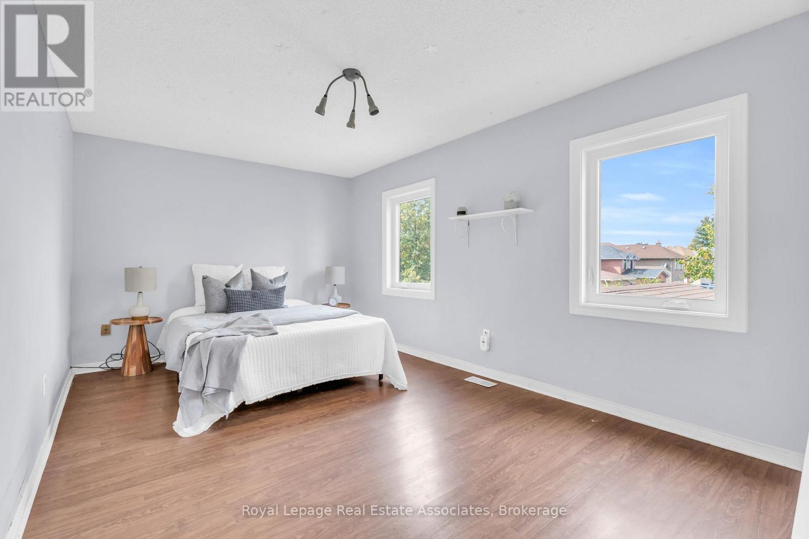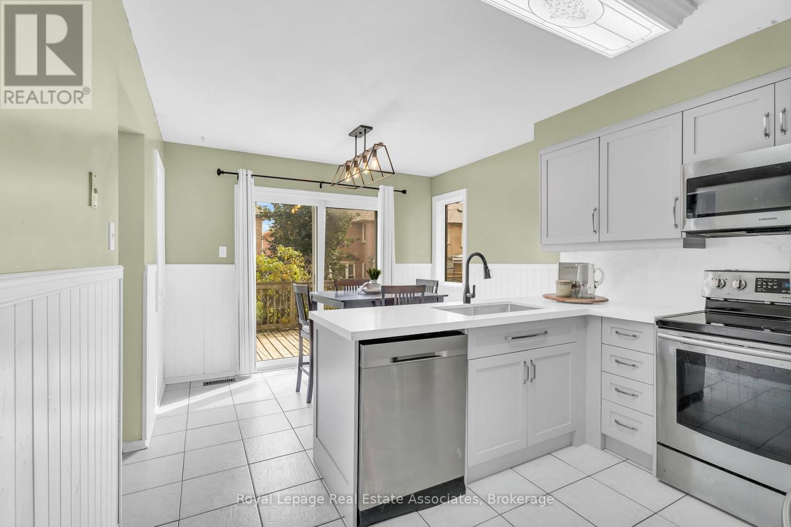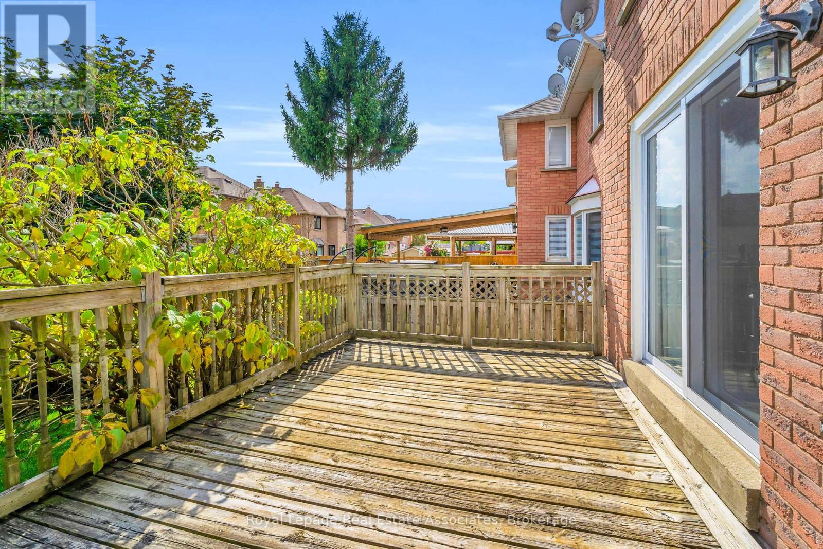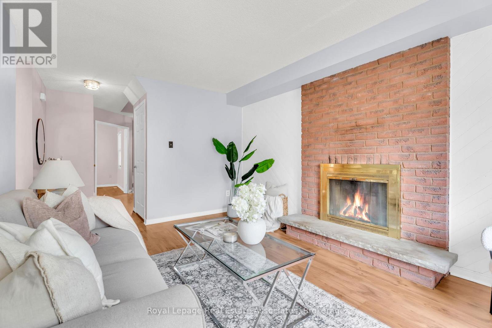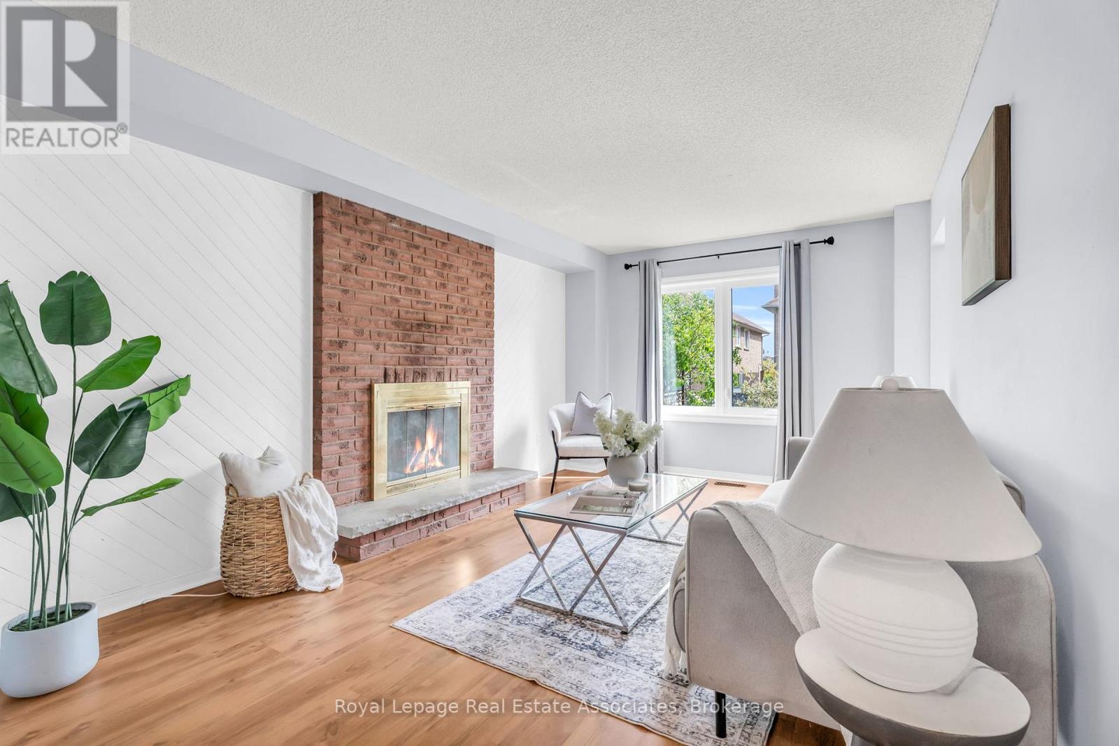 Welcome to this 3-bedroom, 3-bathroom home in Bramptons highly sought-after Heartlake community. Offering 1,867 sq. ft. of living space, this property features a spacious family room with a cozy wood-burning fireplace, an updated kitchen with granite countertops, stainless steel appliances, ceramic tile flooring, and walkout to a two-tiered deck with gazebo in the fully fenced backyard. The main floor boasts laminate flooring throughout and a convenient 2-piece powder room. Upstairs, the primary bedroom has his-and-her closets including a walk in closet and a 3-piece ensuite with walk-in shower and double sinks, while two additional spacious bedrooms are served by a 4-piece bath. Laminate flooring extends through all bedrooms. Recent updates include several windows (Spring 2024), new stand up shower in ensuite, new sliding back door and a new front door. The basement is partially finished, offering additional living space and storage. Complete with a 2-car garage and parking for 2 more on the driveway, this home is ideally located close to schools, parks, shopping, and transit. (id:51158)