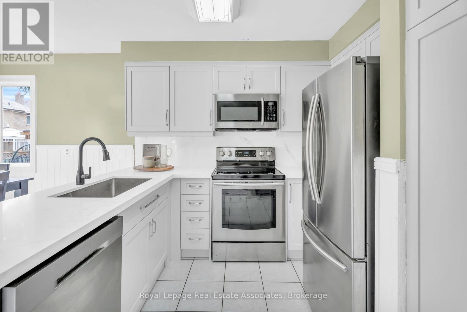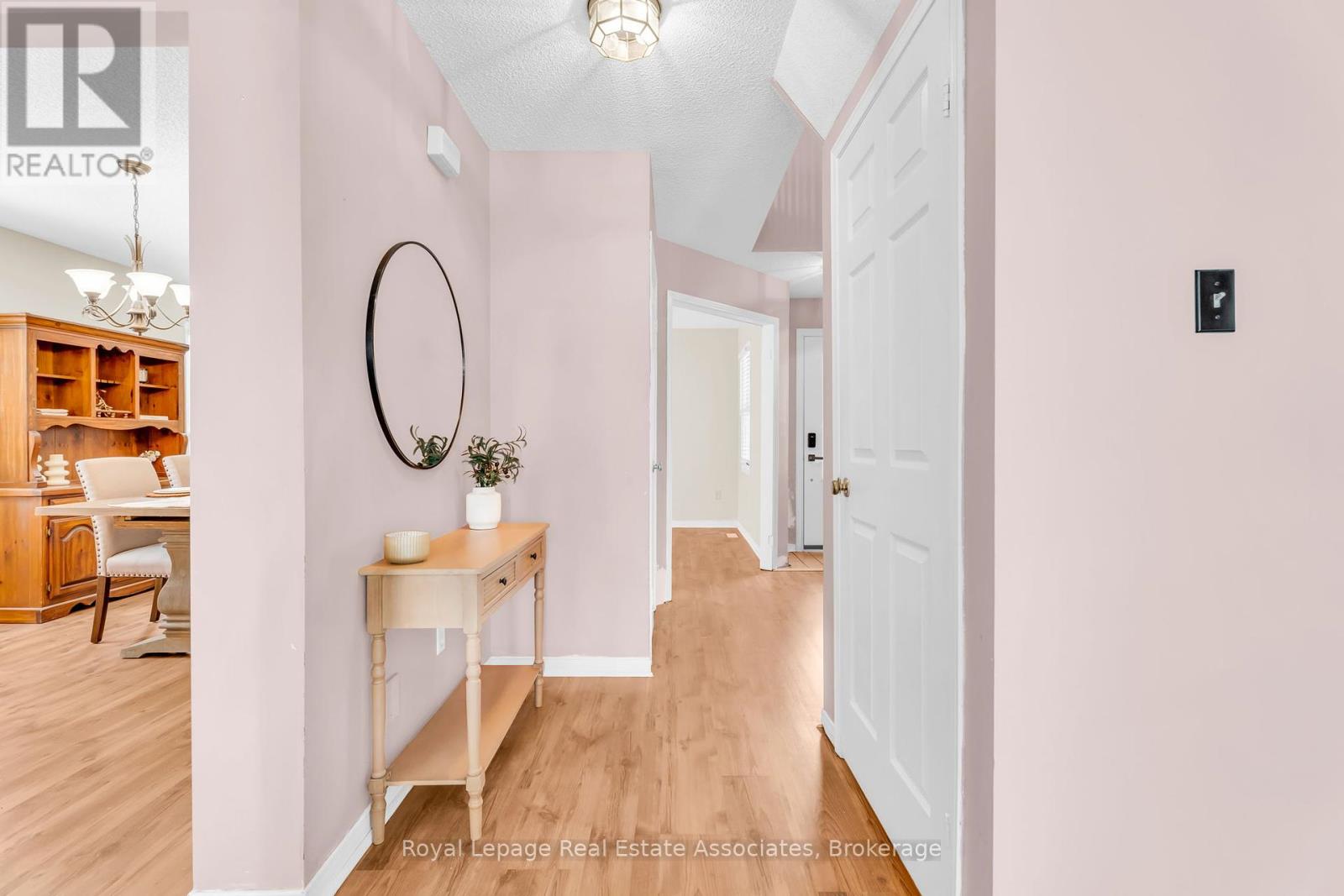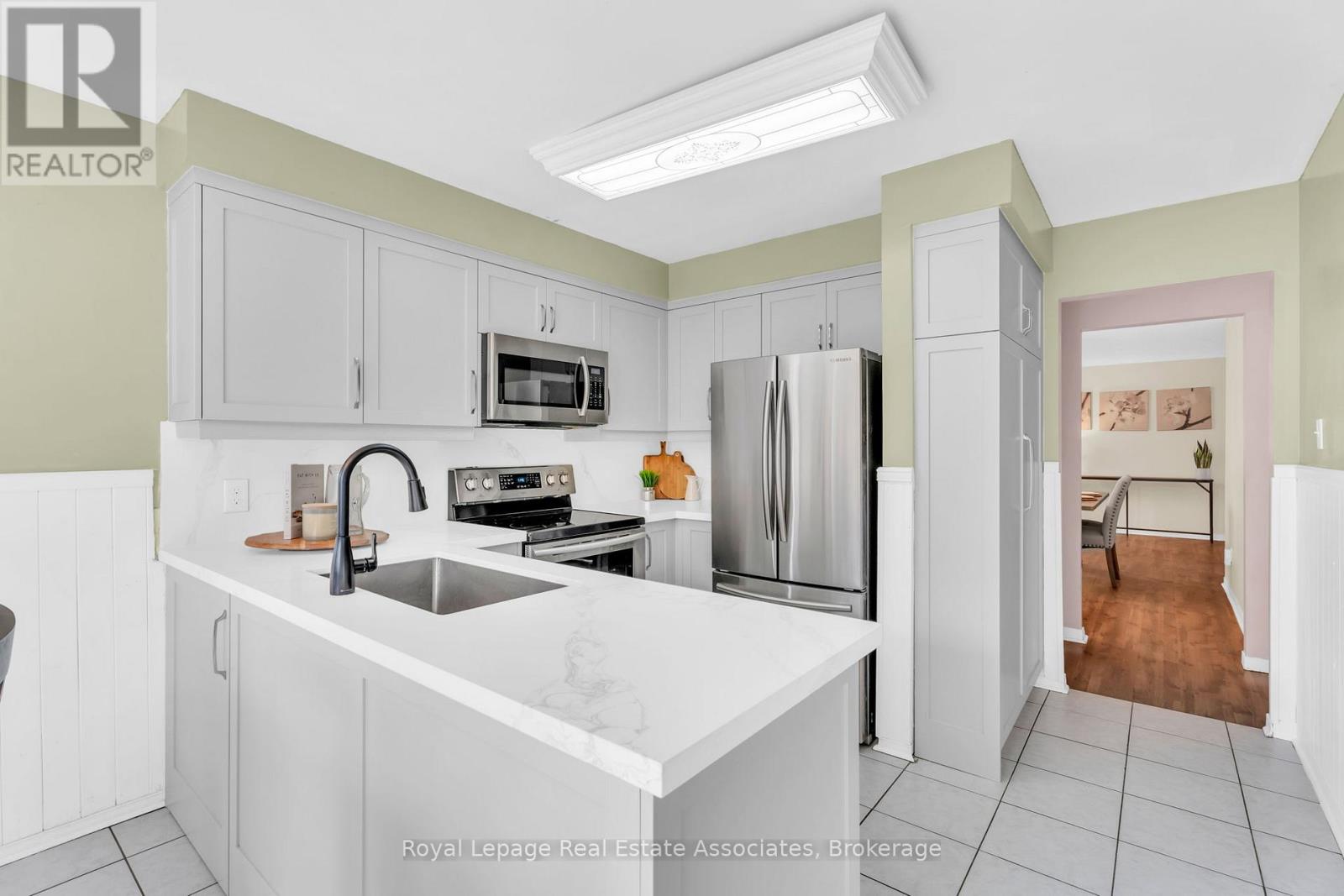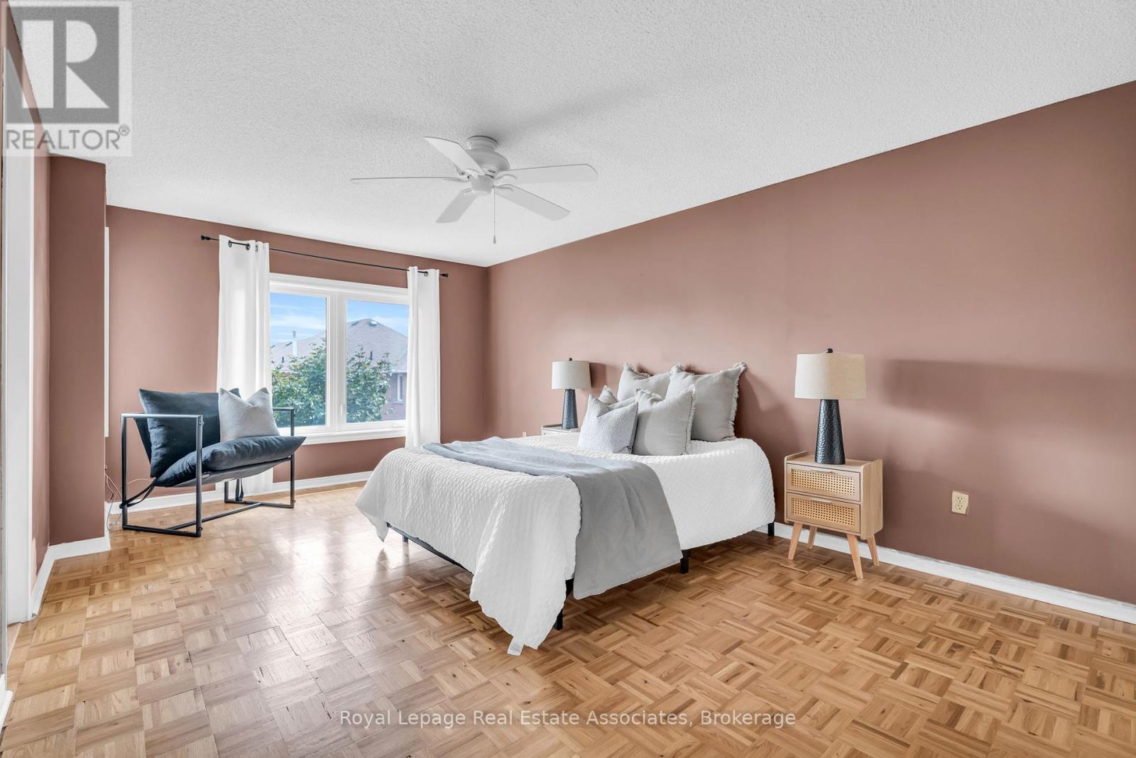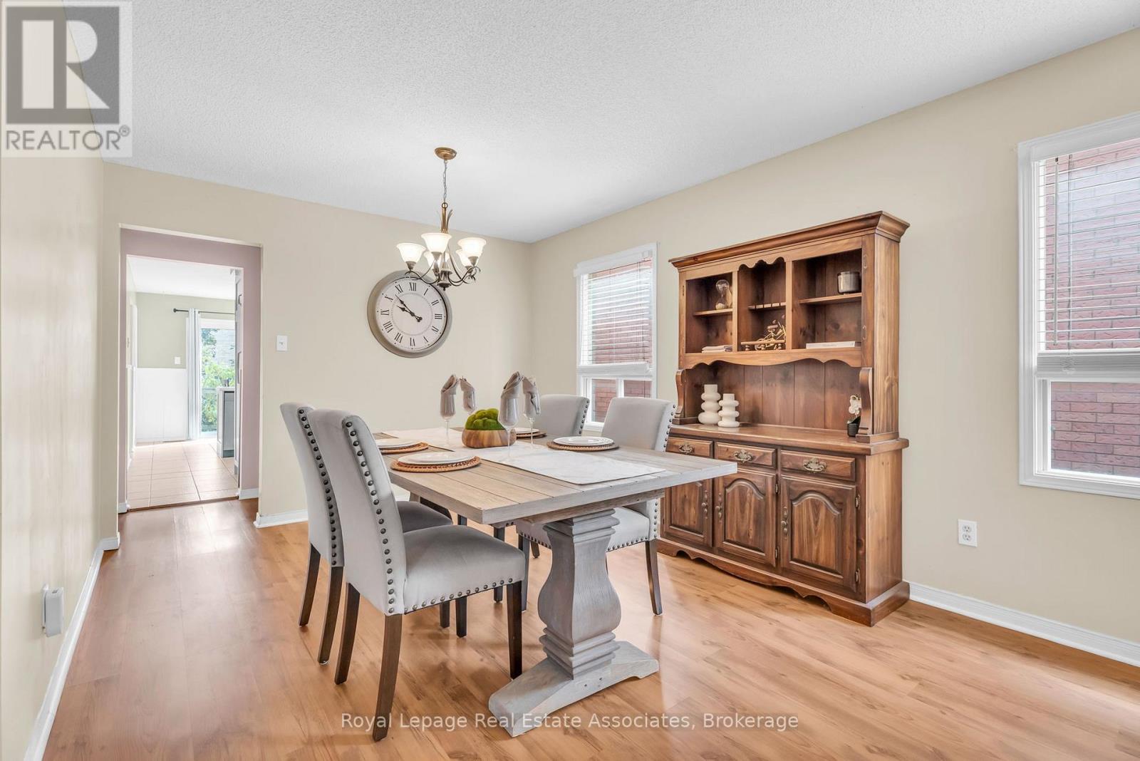 Welcome to this 3-bedroom, 3-bathroom home in Bramptons highly sought-after Heartlake community. Offering 1,867 sq. ft. of living space, this property features a spacious family room with a cozy wood-burning fireplace, an updated kitchen with granite countertops, stainless steel appliances, ceramic tile flooring, and walkout to a two-tiered deck with gazebo in the fully fenced backyard. The main floor boasts laminate flooring throughout and a convenient 2-piece powder room. Upstairs, the primary bedroom has his-and-her closets including a walk in closet and a 3-piece ensuite with walk-in shower and double sinks, while two additional spacious bedrooms are served by a 4-piece bath. Laminate flooring extends through all bedrooms. Recent updates include several windows (Spring 2024), new stand up shower in ensuite, new sliding back door and a new front door. The basement is partially finished, offering additional living space and storage. Complete with a 2-car garage and parking for 2 more on the driveway, this home is ideally located close to schools, parks, shopping, and transit. (id:51158)