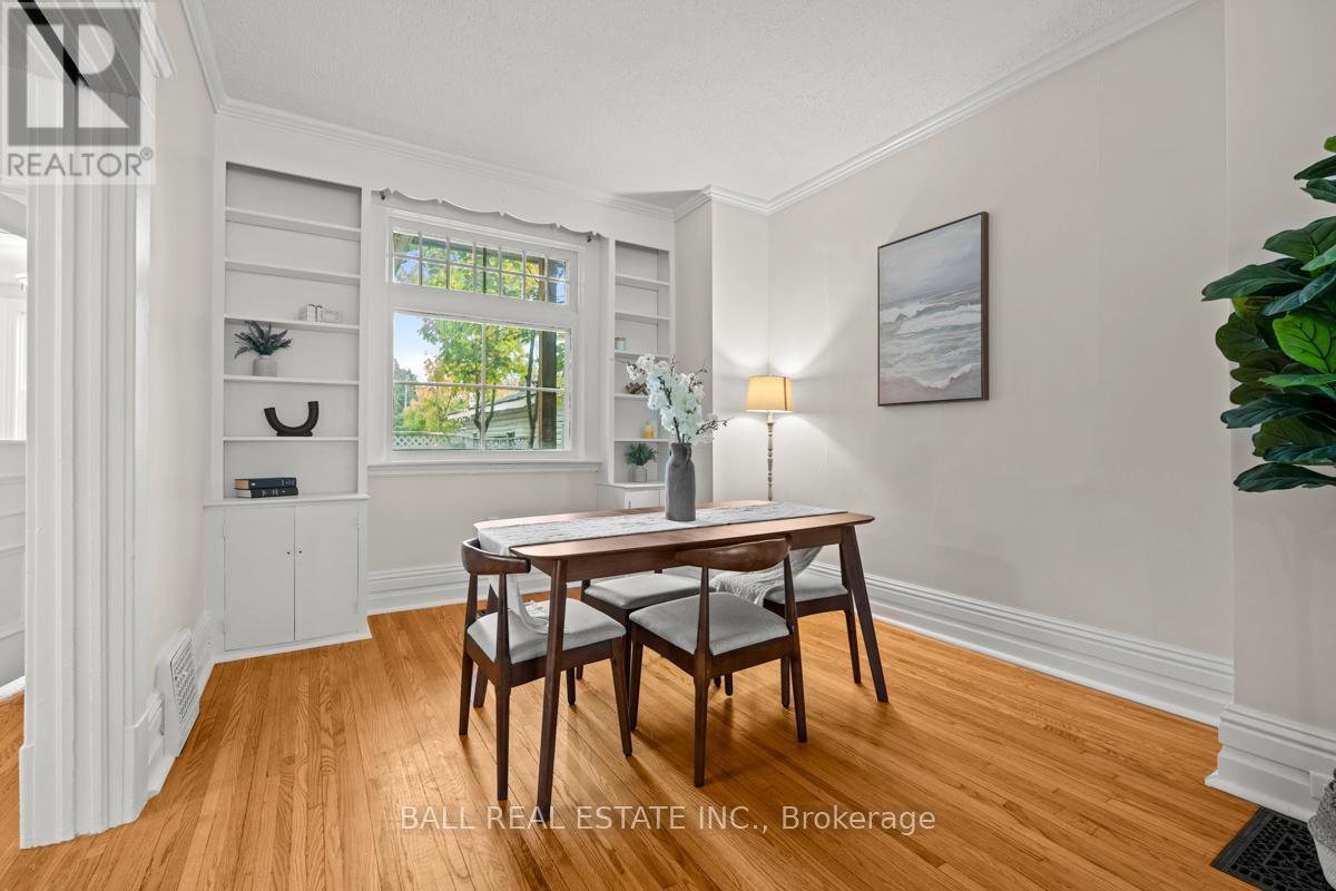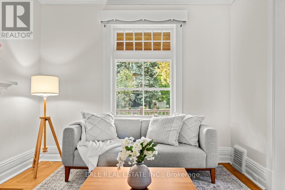 Welcome to 597 Gilmour Street a beautiful 2.5-storey brick home nestled on one of the most desirable and picturesque streets in Peterboroughs Old West End. This timeless property is full of charm and character, featuring original architectural details, hardwood flooring throughout, and a warm, inviting atmosphere that instantly feels like home. Thoughtfully updated and meticulously maintained, it perfectly blends historic beauty with modern comfort. The updated kitchen is both stylish and functional, offering a seamless flow to the dining and living areas ideal for family gatherings or entertaining friends. Upstairs, you'll find three spacious bedrooms and a beautifully refreshed bathroom, while the third-floor loft provides a versatile bonus space perfect for a home office, playroom, or cozy retreat. The partially finished basement includes an additional full bathroom, laundry area, and excellent storage space. Step outside to a private, fully fenced backyard the perfect place to relax, entertain, or enjoy your morning coffee. Every inch of this home reflects care, pride of ownership, and timeless appeal. Located in one of Peterborough's most sought-after neighbourhoods, you're just steps from parks, schools, shops, and the downtown core. 597 Gilmour Street is more than a house - it'swhere character meets comfort, and where you' ll feel right at home. (id:51158)