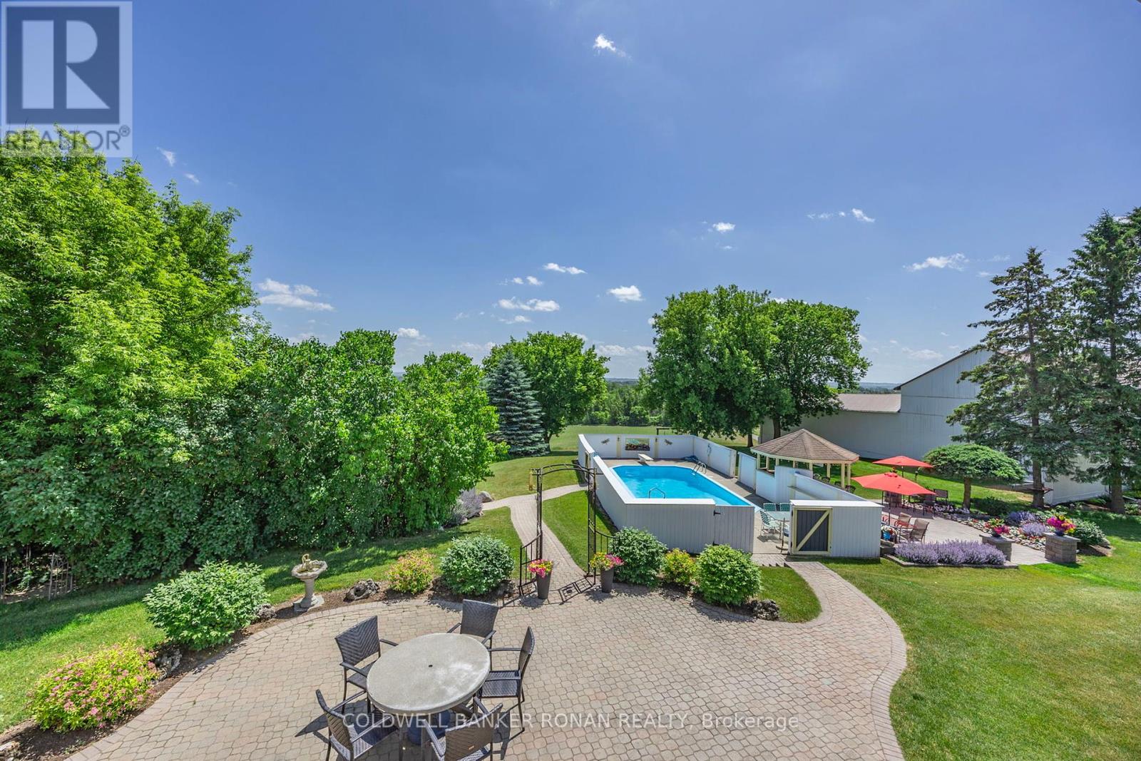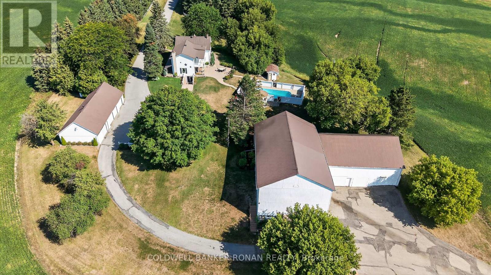 A Private Country Paradise. Welcome to this exceptional 104-acre farm estate offering the perfect blend of functionality, natural beauty, and refined country living. Whether you're looking for a working farm, a private retreat, or a place to create lasting family memories, this meticulously maintained property delivers it all. Set back from the road you'll arrive via a long, paved tree-lined driveway framed by a classic white fence, leading to a manicured lawn and beautifully landscaped flower gardens. The mixed-use land offers productive cash crop fields, forested trails for hiking or ATVing, a private pond, and ample open space for recreation or expansion. The charming 4-bedroom home features a metal roof, covered front porch ideal for relaxing summer evenings, inviting living room with fireplace and walk out to patio, large eat in kitchen, formal dining room great for entertaining and grand primary suite complete with a 4-piece ensuite, wall-to-wall closet, and walk-out to a large private balcony. Outside, enjoy the fully fenced in-ground pool for warm-weather fun, complete with tiki bar. A classic barn, and a detached 4-bay garage offer ample storage and workspace. Dual access to the property provides convenience and flexibility. Whether you're seeking tranquility, an investment opportunity or a place to bring your rural dreams to life, this stunning property located close to the growing town of Alliston has it all. Don't miss this rare opportunity to own a piece of countryside perfection. (id:51158)