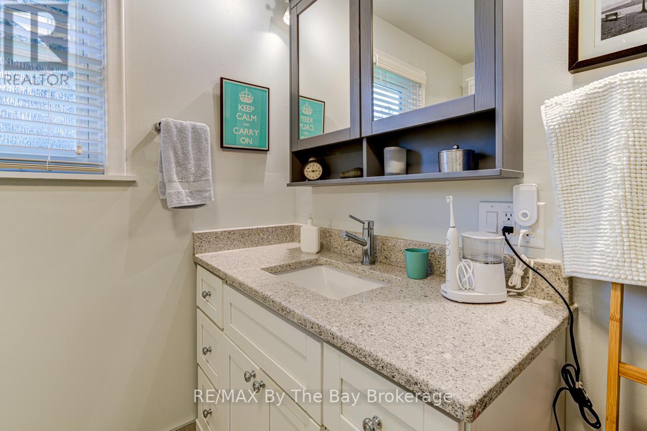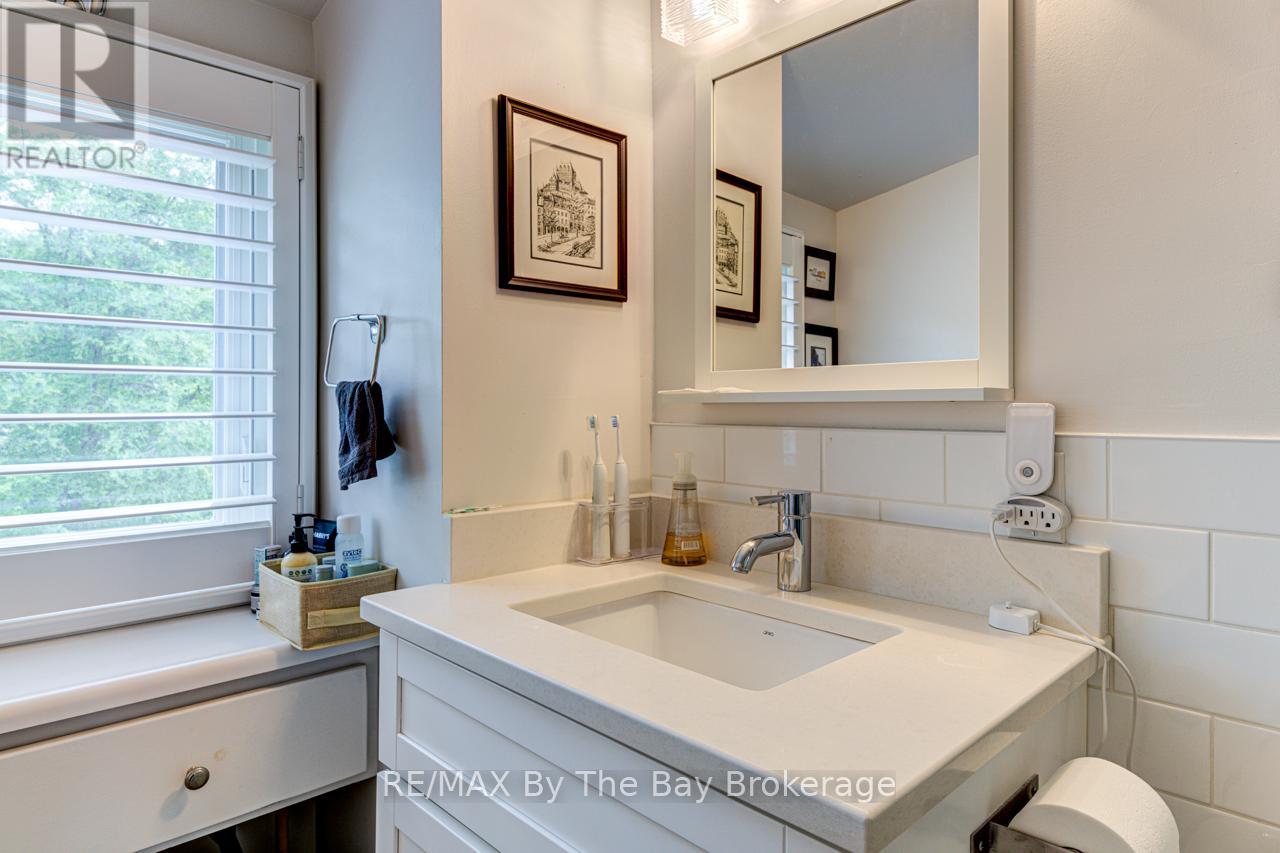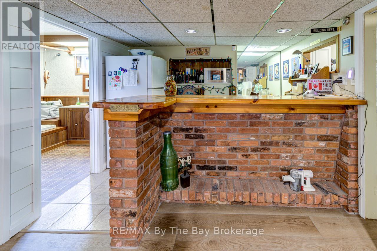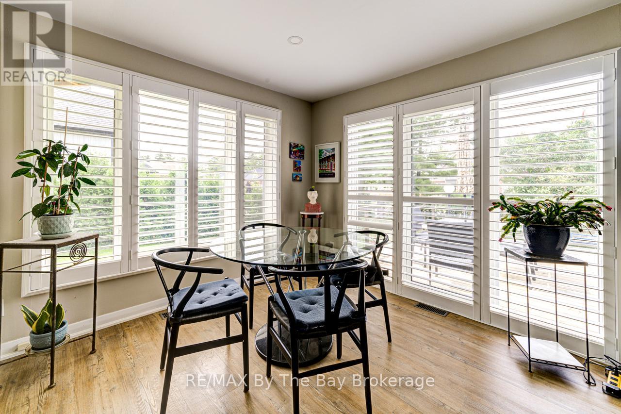 One block to the Sandy Beaches of Wasaga! 2500 sqft 4 bedroom, 3 Bathroom , 2 Story home on a 100x145 double lot with frontages on Mosley and Old Mosley Streets. This unique home in the original Village of Wasaga is meticulously maintained with beautiful landscaping, sprinkler system & wrought iron fencing. The interior features a large updated kitchen, modern flooring, ample natural light from large windows with California shutters and a walkout to the oversized front deck with glass railings. The upper level features a large Master suite with a private deck, 3pc bath, and huge walk-in closet with window. Office/bedroom on upper level. The lower level has a wet bar, 2 large living areas, 3pc bath, and sauna. Laundry room with pantry. Gas fireplace along with forced air gas furnace. Central air. Detached 24'x24' Garage with large loft. 2 Garden sheds. Official Plan allows for Development opportunities such as: Semi/ Townhouse/ Apartment/ Accessory Dwelling Unit. In proximity to Beach Area 1. (id:51158)