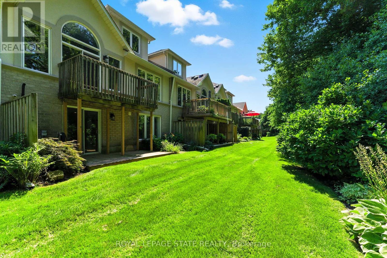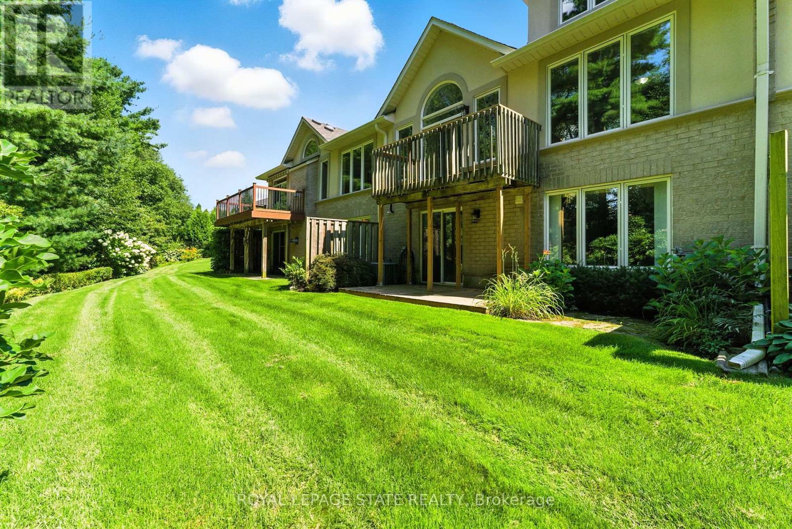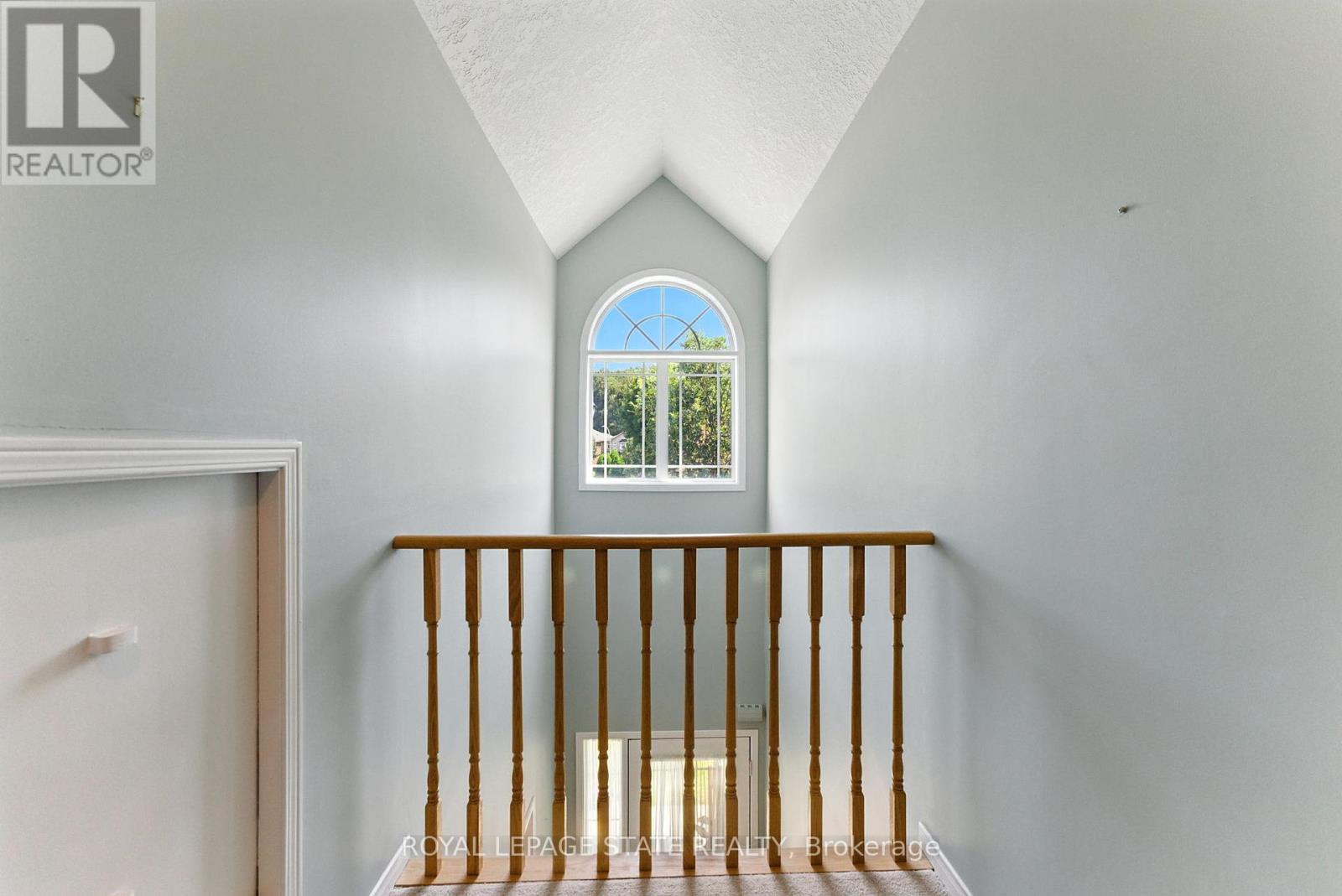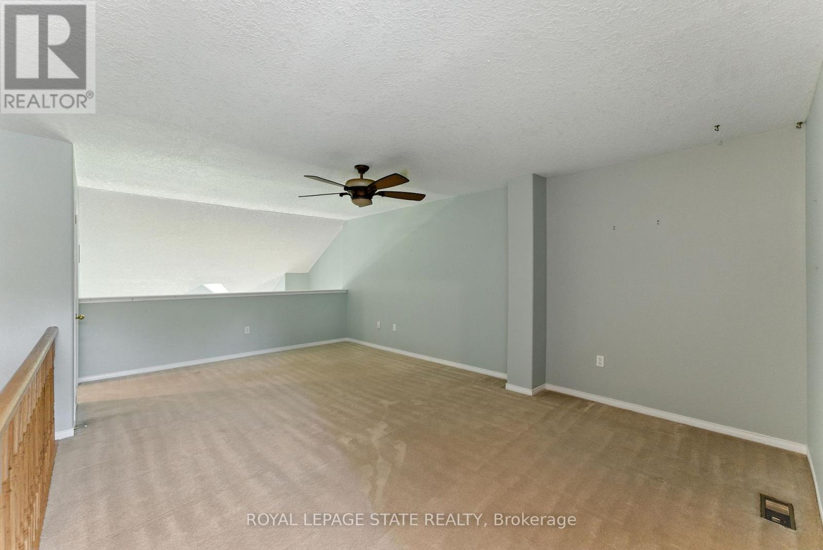 Experience refined living in this beautifully designed bungaloft condominium located in the exclusive Castle Ridge enclave of Ancaster. Boasting 1,893 sq ft above grade, this spacious 3-bedroom, 3-bathroom home offers the perfect blend of comfort, elegance, and low-maintenance living. Step inside to soaring vaulted ceilings in the living room that create a bright, open atmosphere, and enjoy the convenience of main floor laundry. The kitchen features granite countertops, with ample cabinetry, the 2nd mnflr bdrm could be used as a separate dining room. The 2nd floor features an open loft space overlooking the mfr living room, a 3rd bedroom w/sitting area & additional 4 pc bathroom, perfect for overnight guests. Retreat to an exceptionally large primary bedroom with generous closet space & 4pc ensuite bath, while the walk-out basement offers excellent potential with a 3-piece rough-in and the finished rec room walks out to a private patio overlooking a tranquil ravine the perfect setting for morning coffee or quiet evenings. Additional highlights include: Single-car garage with private driveway. Plenty of storage throughout. Maintenance-free living in a desirable condo community. Located close to top-rated schools, shopping, parks, conservation areas, and with easy access to major highways, this home is ideal for professionals, downsizers, or anyone seeking peaceful luxury in a sought-after location. Don't miss this rare opportunity to own in one of Ancasters most desirable communities. Book your private showing today! (id:51158)