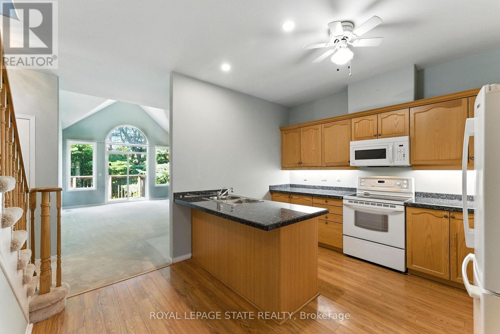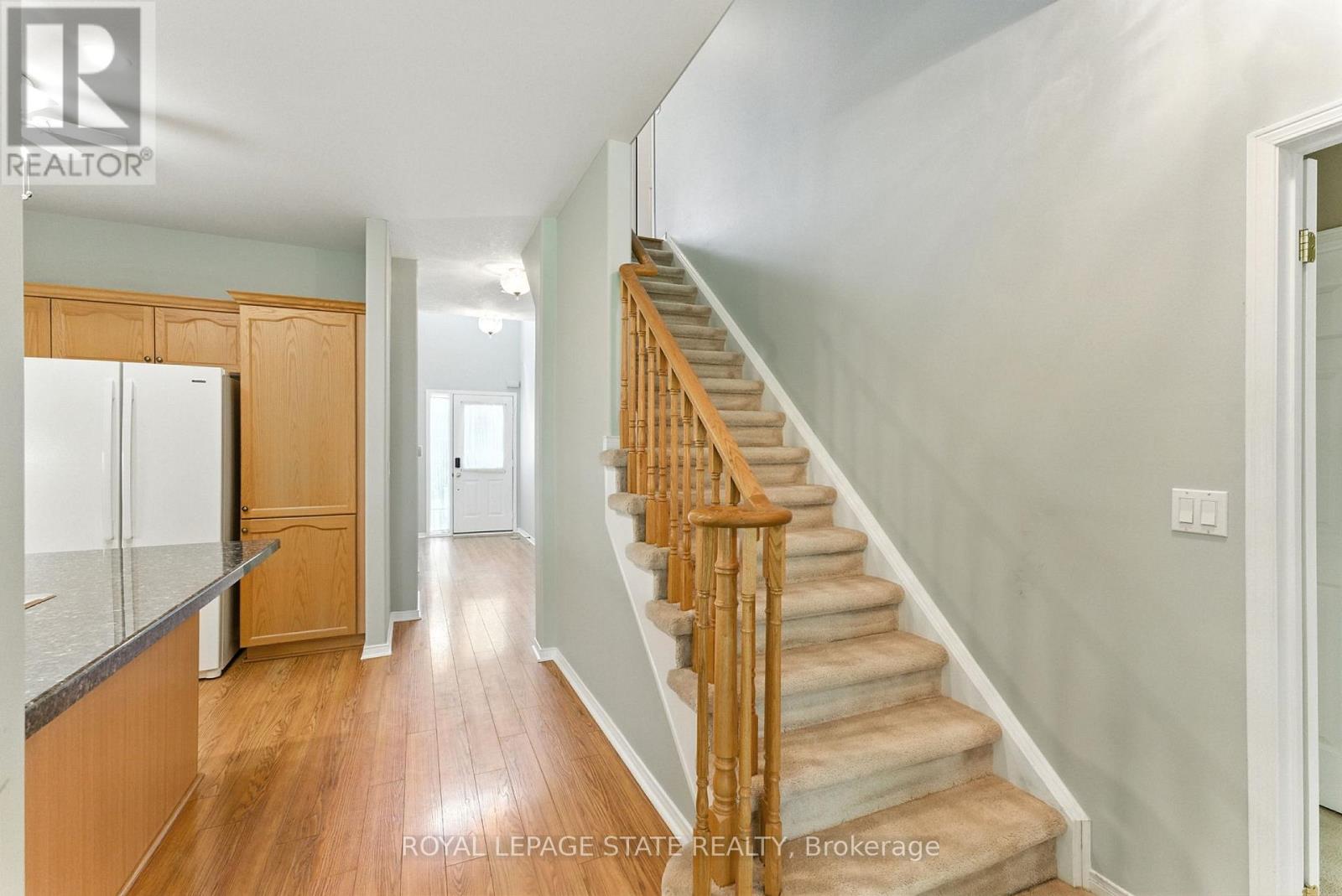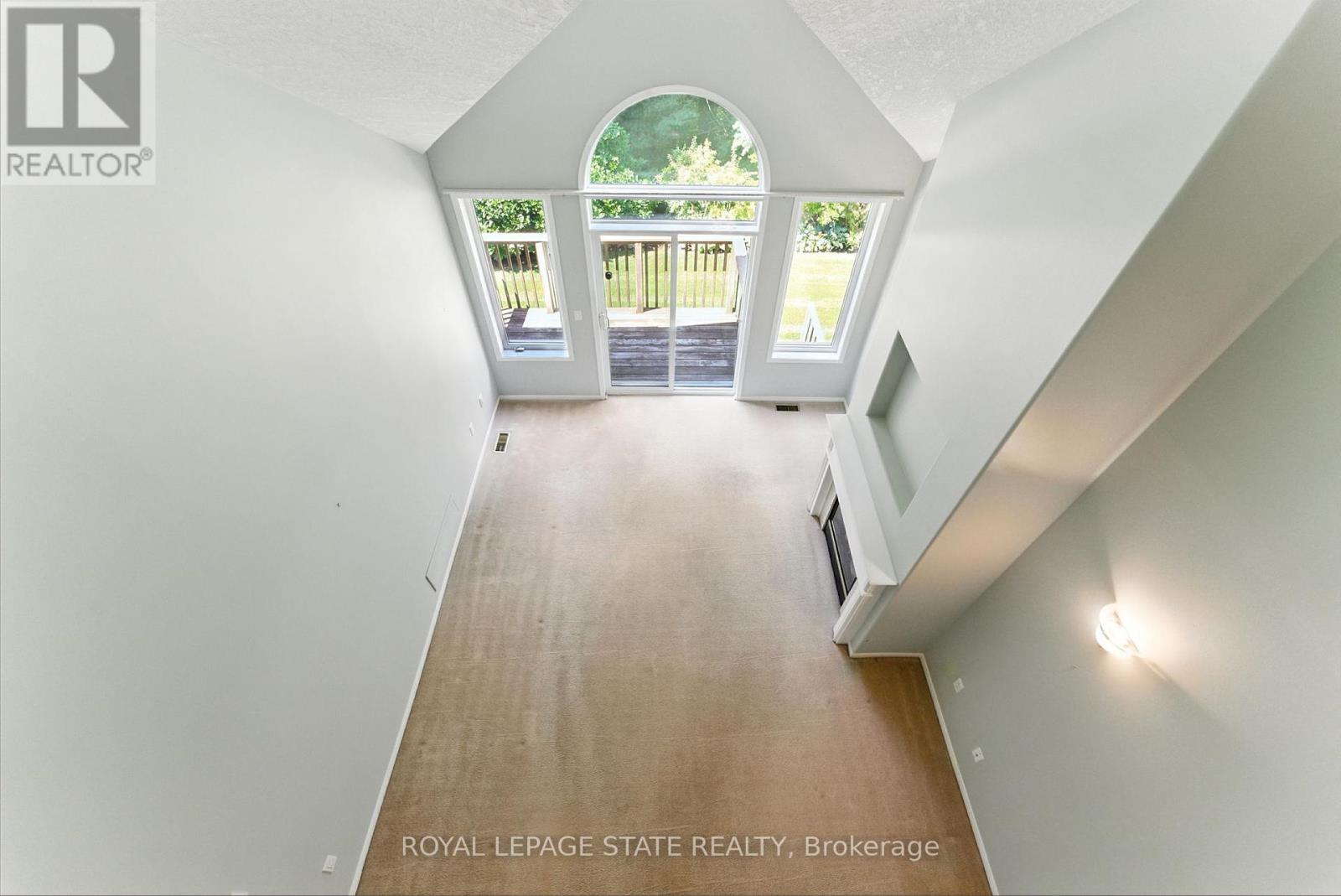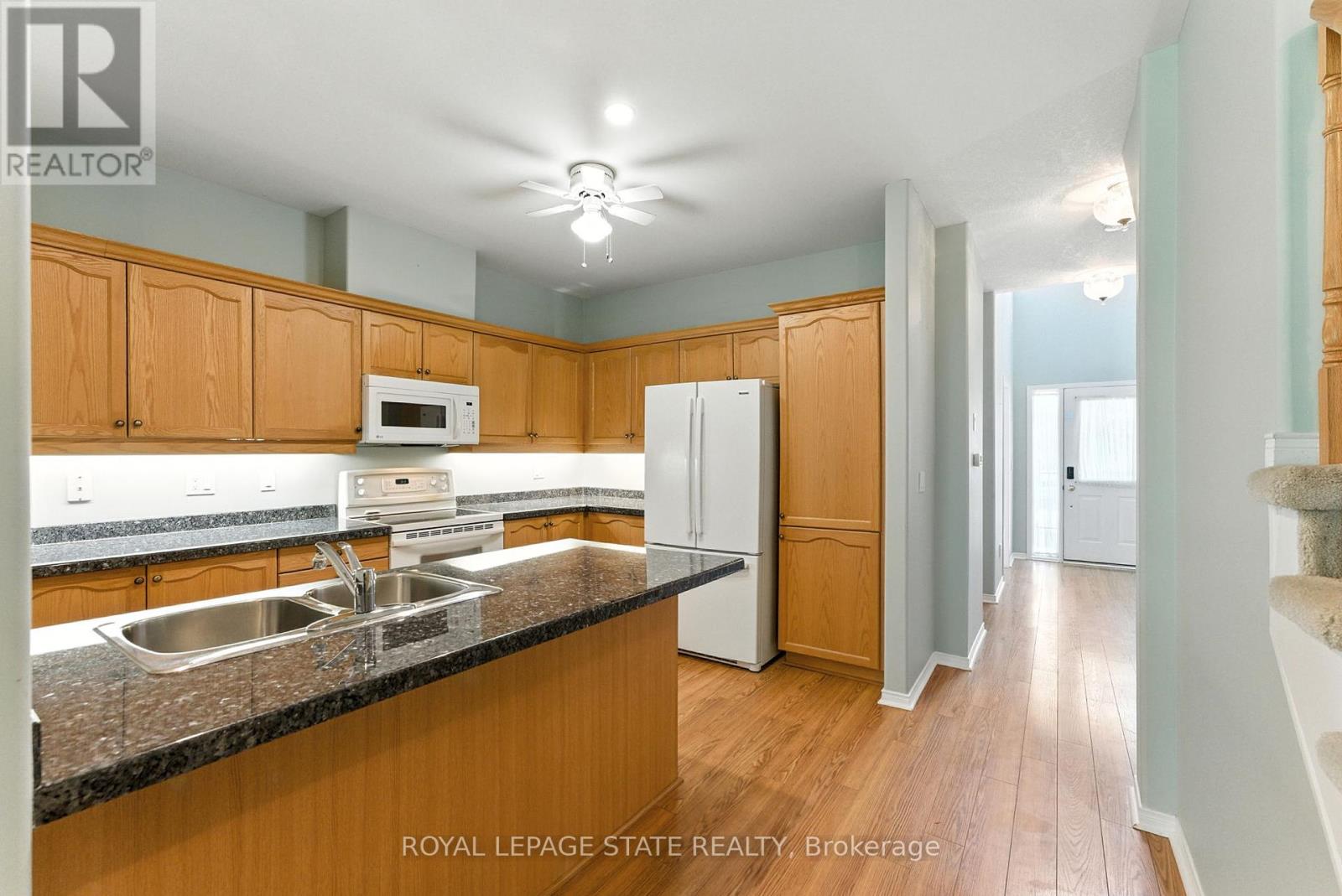 Experience refined living in this beautifully designed bungaloft condominium located in the exclusive Castle Ridge enclave of Ancaster. Boasting 1,893 sq ft above grade, this spacious 3-bedroom, 3-bathroom home offers the perfect blend of comfort, elegance, and low-maintenance living. Step inside to soaring vaulted ceilings in the living room that create a bright, open atmosphere, and enjoy the convenience of main floor laundry. The kitchen features granite countertops, with ample cabinetry, the 2nd mnflr bdrm could be used as a separate dining room. The 2nd floor features an open loft space overlooking the mfr living room, a 3rd bedroom w/sitting area & additional 4 pc bathroom, perfect for overnight guests. Retreat to an exceptionally large primary bedroom with generous closet space & 4pc ensuite bath, while the walk-out basement offers excellent potential with a 3-piece rough-in and the finished rec room walks out to a private patio overlooking a tranquil ravine the perfect setting for morning coffee or quiet evenings. Additional highlights include: Single-car garage with private driveway. Plenty of storage throughout. Maintenance-free living in a desirable condo community. Located close to top-rated schools, shopping, parks, conservation areas, and with easy access to major highways, this home is ideal for professionals, downsizers, or anyone seeking peaceful luxury in a sought-after location. Don't miss this rare opportunity to own in one of Ancasters most desirable communities. Book your private showing today! (id:51158)