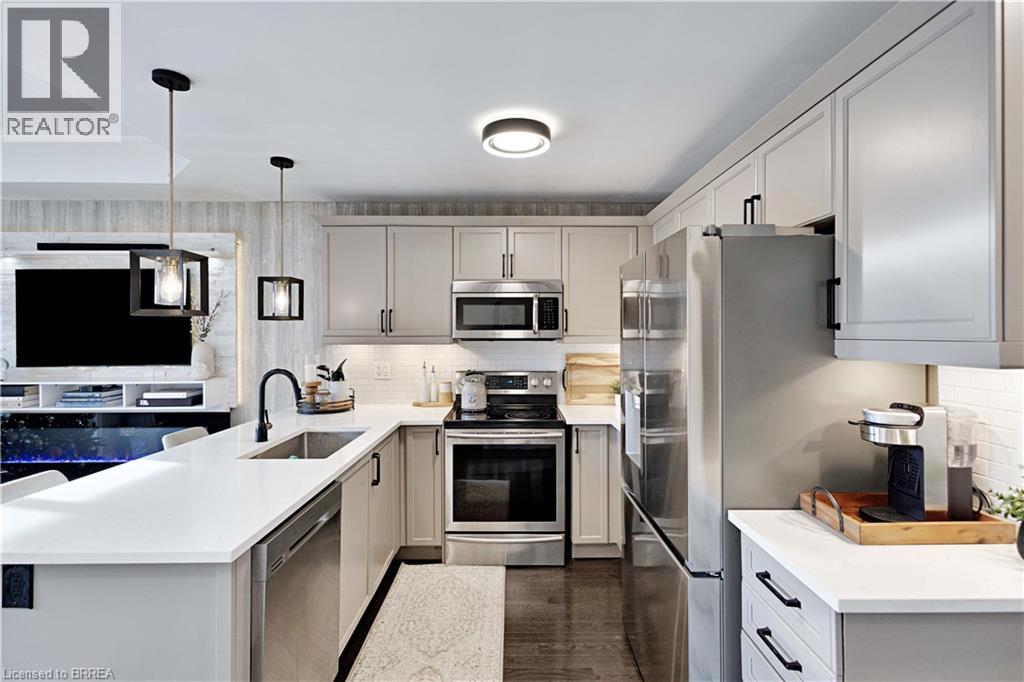 $134.34 MonthlyWelcome to this beautifully maintained freehold townhouse nestled in the highly desirable Hamilton Mountain neighbourhood. Offering the perfect blend of comfort, style, and functionality, this home is ideal for families, professionals, or anyone seeking low-maintenance living without compromise. The main living area has been thoughtfully designed to give you the best entertaining space for your friends and family. The heart of the home has been elevated with a recently stunning kitchen (2023), showcasing modern finishes, new appliances, quartz countertops and ample storage. Retreat to the serene primary bedroom, complete with a newly updated primary bathroom (2023) that adds a touch of luxury to your routine. Enjoy a movie or a good book beside the fireplace! Two other bedrooms and another full bathroom finish off the second level with tons of natural light beaming into all bedrooms. The finished basement provides valuable additional living space, ideal for a family room, home office, or guest area. Lovingly cared for by its owners, this home reflects pride of ownership throughout, with updates that enhance both style and peace of mind. This home has been taken from typical builder grade to a family home that is move in ready just for you! Located close to parks, schools, shopping, and transit, this townhome offers exceptional value in a sought-after location. (id:51158)
