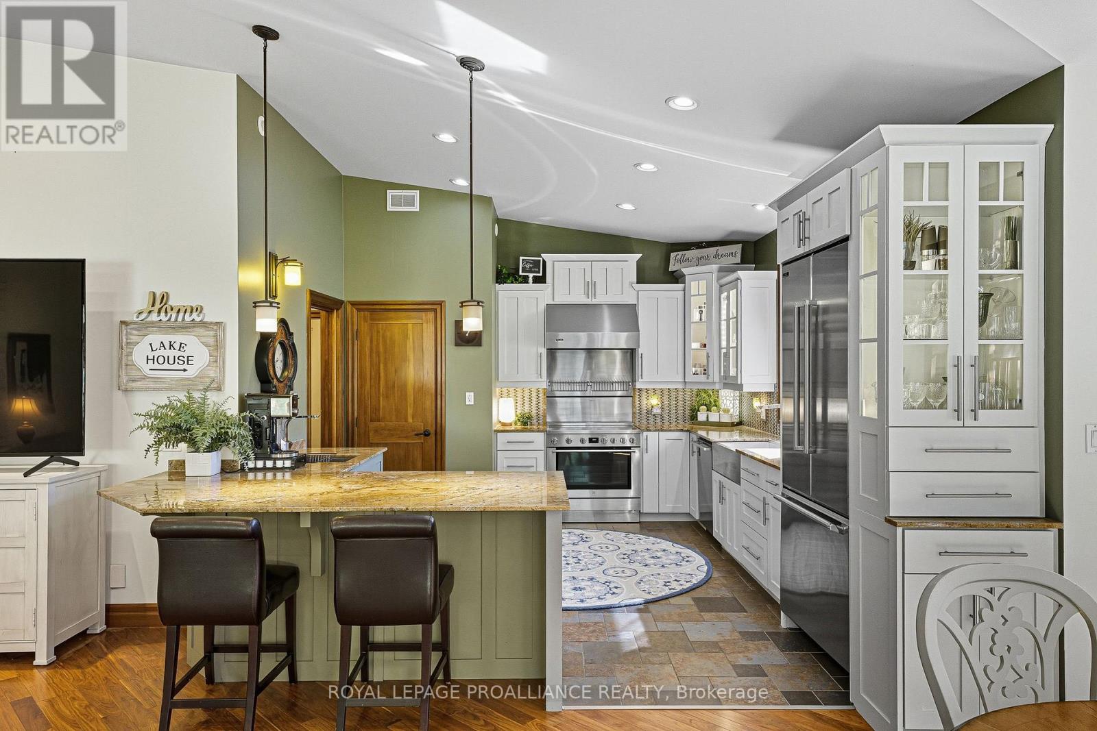 Perfectly situated and exquisitely landscaped, 6 Birch Court offers luxury living at its finest! This custom designed home, by award winning Tobey Developments, is ideally located in a highly sought-after neighbourhood of Brighton and is truly one of a kind! Experience a relaxed and easy lifestyle with the many fine features included in this home. You will surely be impressed as you step into the welcoming foyer which opens to the opulent living area. The living room showcases a beautiful stone fireplace and a soaring vaulted ceiling, with gorgeous oversized windows that look upon the private backyard. The stunning kitchen has been meticulously crafted to offer chef quality appliances, complete with granite counters, newly painted cabinetry, and a large pantry. The spacious dining area is adjacent to the kitchen & offers a seamless transition to the outdoor space. As an added bonus, you can enjoy your morning coffee in the 3 season sunroom while taking in the peaceful surroundings of your backyard oasis. Down the hall, the primary bedroom also enjoys the warmth of the two-sided fireplace and features access to the sunroom, as well as offering a spacious walk-in closet & an upgraded ensuite with a tiled shower & jacuzzi bath. Work from home in your cozy den that overlooks the beautiful gardens in the front yard. Another bedroom with a semi-ensuite, a mudroom w/laundry & a 2 piece bath round out this gracious main floor. Descend the curved staircase to the lower level & enjoy movie nights in your rec room that is outfitted with your own surround sound system, projector, & screen! Two more bedrooms, a 4 pc. bath, and storage complete this impressive lower level. The attached double car garage offers convenience with inside access to your mudroom. Just a short commute to the GTA & a scenic drive to Prince Edward County - the lakeside town of Brighton offers so many amenities. This is truly a special property. You will want to call this one "Home". (id:51158)