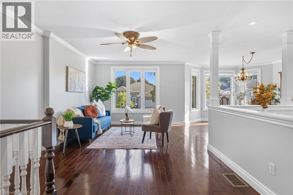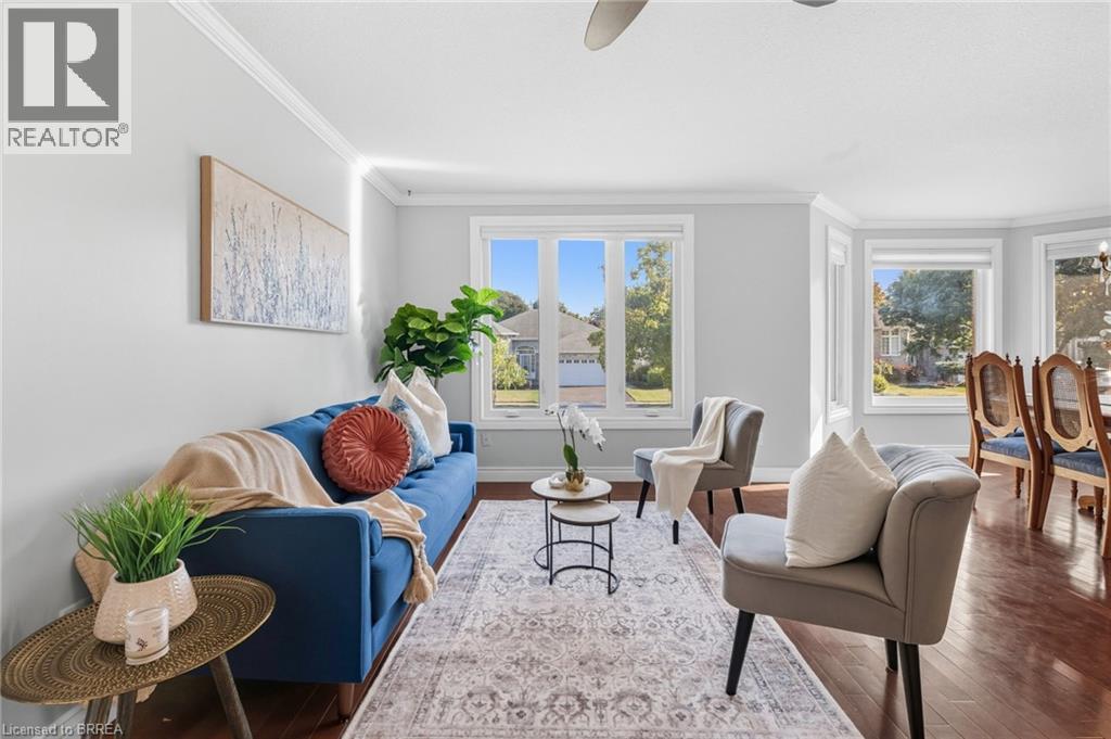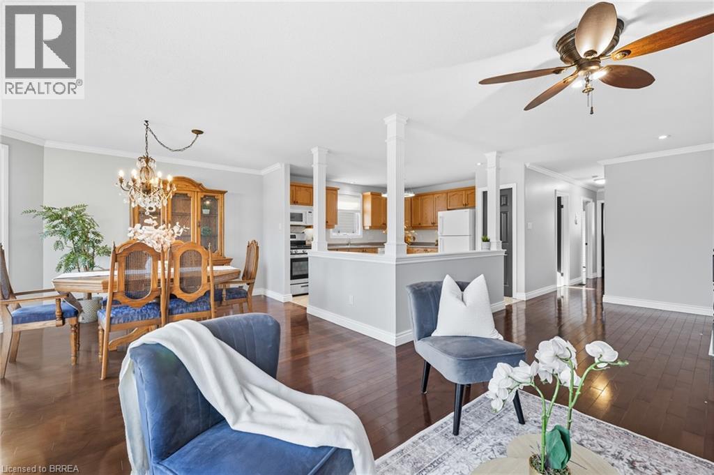 Welcome to 6 McCormick Way, nestled in the highly desirable Myrtleville neighborhood of Brantford. This well-maintained bungalow offers an exceptional living experience, with the added convenience of being located near a public golf course. As you step through the front door, you're greeted by a bright and spacious foyer that effortlessly flows into an upper level open-concept living room and dining area, both bathed in natural light thanks to large picturesque windows. The main level boasts hardwood floors throughout the living spaces and bedrooms, creating a warm and inviting atmosphere. The kitchen is thoughtfully designed featuring oak cabinetry, under-cabinet lighting, and a classic ceramic backsplash. Elegant white decorative pillars add a touch of sophistication to the space, making it both functional and visually appealing. On the main floor, you'll find three generously sized bedrooms, including the primary suite. This serene retreat boasts its own private walkout to a beautiful deck—an ideal spot to enjoy your morning coffee or unwind as the sun sets. A well-appointed 4-piece bathroom completes the main level, offering both convenience and comfort. The fully finished lower level offers a large family room perfect for relaxed gatherings. An additional room, currently being used as a home gym, is versatile and could easily serve as a playroom, home office, or whatever suits your family's needs. Another 4-piece bathroom on this level adds to the home’s functionality. Outside, the fully fenced yard offers both privacy and security, and the spacious deck and patio are perfect for outdoor meals and entertaining. The tastefully landscaped yard is complemented by an underground sprinkler system, ensuring the greenery remains lush and vibrant throughout the year. Don't miss the opportunity to own this impeccably maintained property. Schedule your showing today and begin your journey to luxurious living in North Brantford! (id:51158)