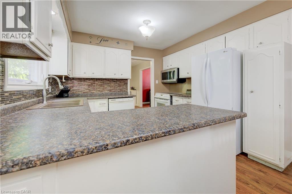 Spacious 4-Bedroom Home on a Quiet Elmira Court Welcome to this 4-bedroom, 3-bathroom home, perfectly located on a desirable court in Elmira. Set on nearly ¼ acre with mature trees, this property offers both privacy and plenty of room to enjoy the outdoors. Recent updates provide peace of mind, including new siding (2018), all new windows (2017), and a new furnace and A/C (2017). Inside, you’ll find a bright bay window in the living room, a separate dining room, and a welcoming family room featuring a cozy gas fireplace—all designed for everyday living and effortless entertaining. The home also features an unfinished walk-up basement, offering direct access to the backyard and endless potential for additional living space, an in-law suite, or rental income. A double car garage adds convenience and storage, while the expansive lot offers endless possibilities for family fun. Just a short walk to schools, the Woolwich Memorial Centre, and nearby parks, this location is ideal for growing families. Homes combining this level of space, updates, location, and lot size are a rare find in Elmira—don’t miss your chance to make it yours! (id:51158)