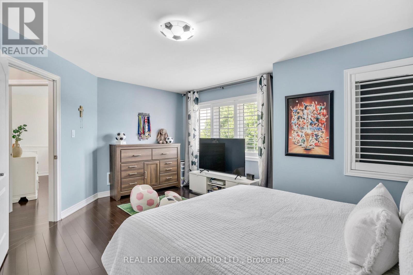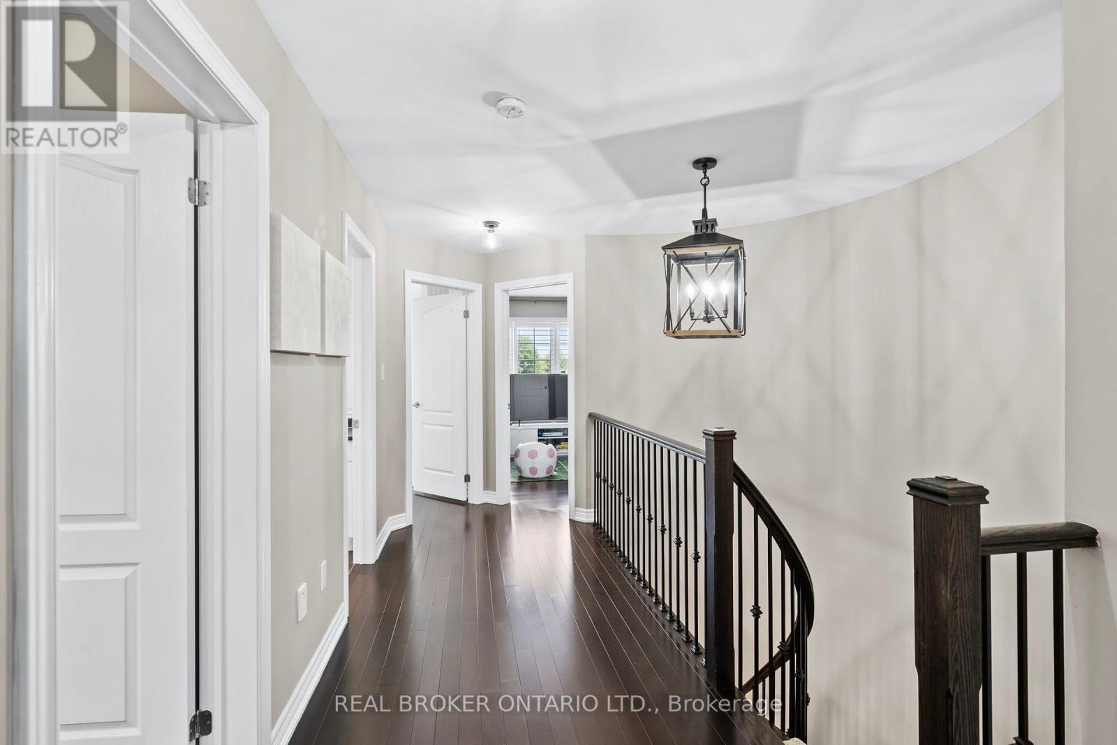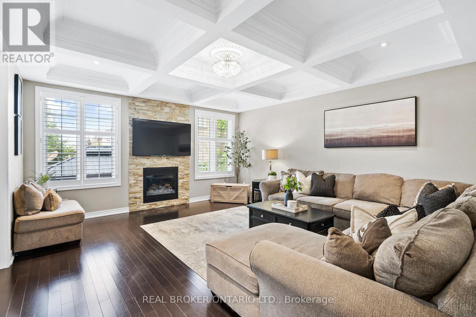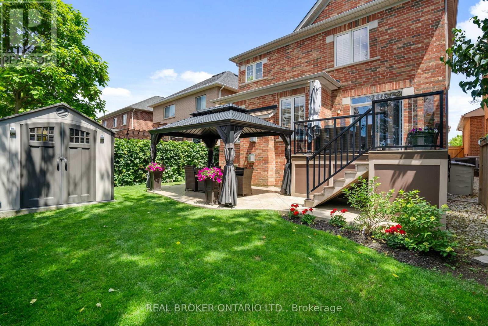 Welcome to this stunning Hampshire Model 4-bedroom home, nestled in a highly sought-after, family-friendly neighborhood. Offering exceptional curb appeal with exterior pot lights, patterned concrete, and a double-wide driveway accommodating up to 4 vehicles, this home truly has it all. Inside, you will find an inviting layout with smooth ceilings and rich hardwood flooring throughout. The main floor boasts elegant pot lights in the hallway, kitchen, and living room, where a coffered ceiling and cozy gas fireplace create the perfect space to relax. The gourmet kitchen features stainless steel appliances, granite countertops, and a bright breakfast area with sliding doors leading to a beautifully landscaped backyard complete with a composite deck, gazebo, shed, and a convenient gas line for your BBQ. Upstairs, you will discover four spacious bedrooms, including a luxurious primary suite with custom closet cabinetry and a fully renovated ensuite (2023) featuring heated floors. California shutters adorn the windows, adding both style and privacy. The finished basement extends the living space with engineered hardwood flooring, pot lights, and a stunning second kitchen that is perfect for entertaining. Additional features include central vacuum with a convenient vac pan in the kitchen and water softener(2025) . This is a home designed for comfort, style, and family living - offering the perfect blend of elegance and functionality with thoughtful upgrades throughout. From the beautifully finished basement to the backyard oasis, every detail has been crafted for entertaining, relaxing, and making lifelong memories. (id:51158)