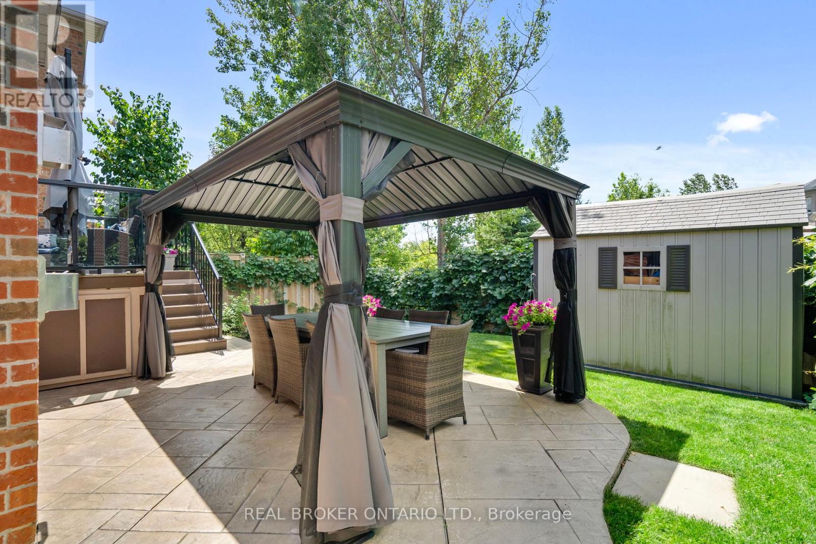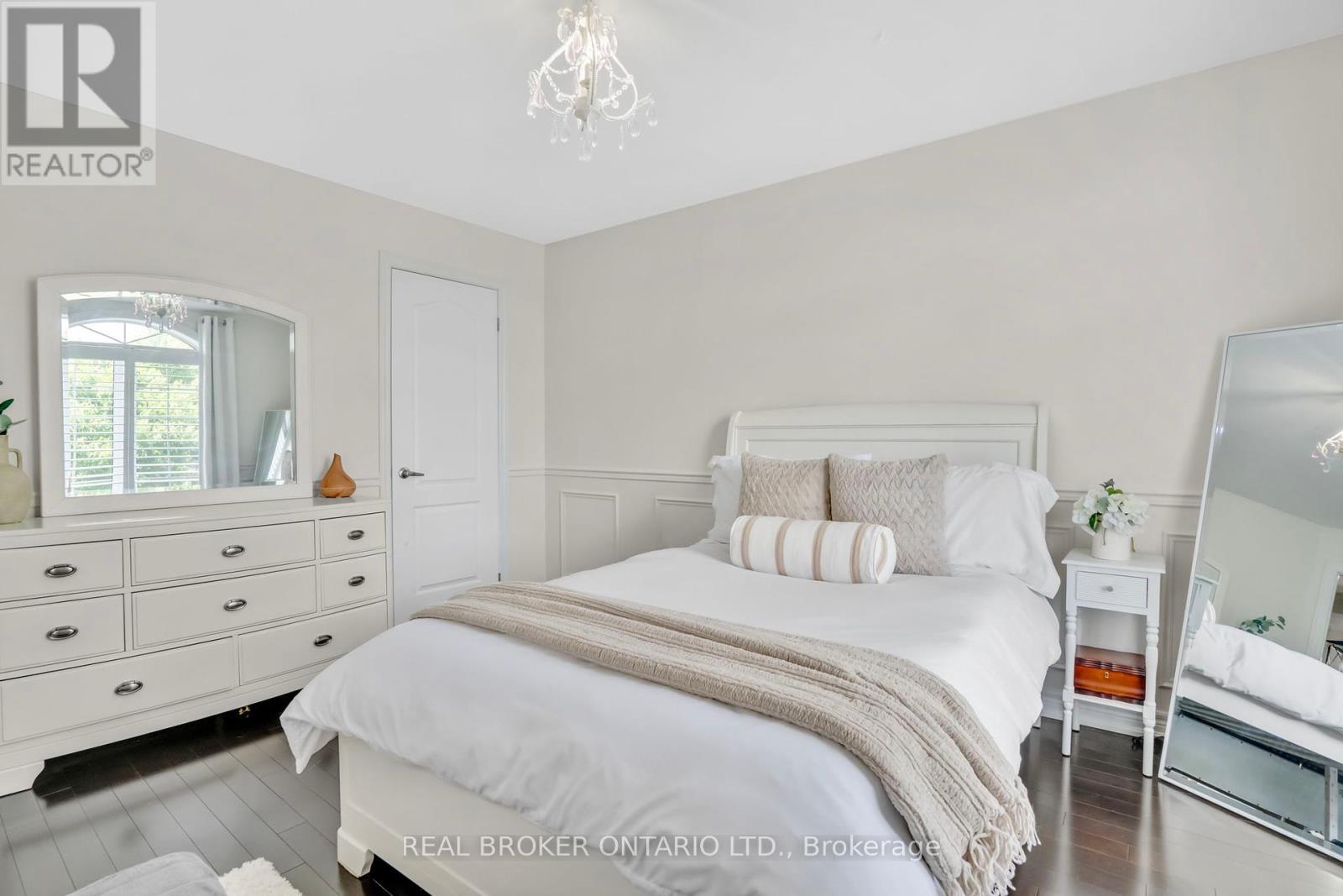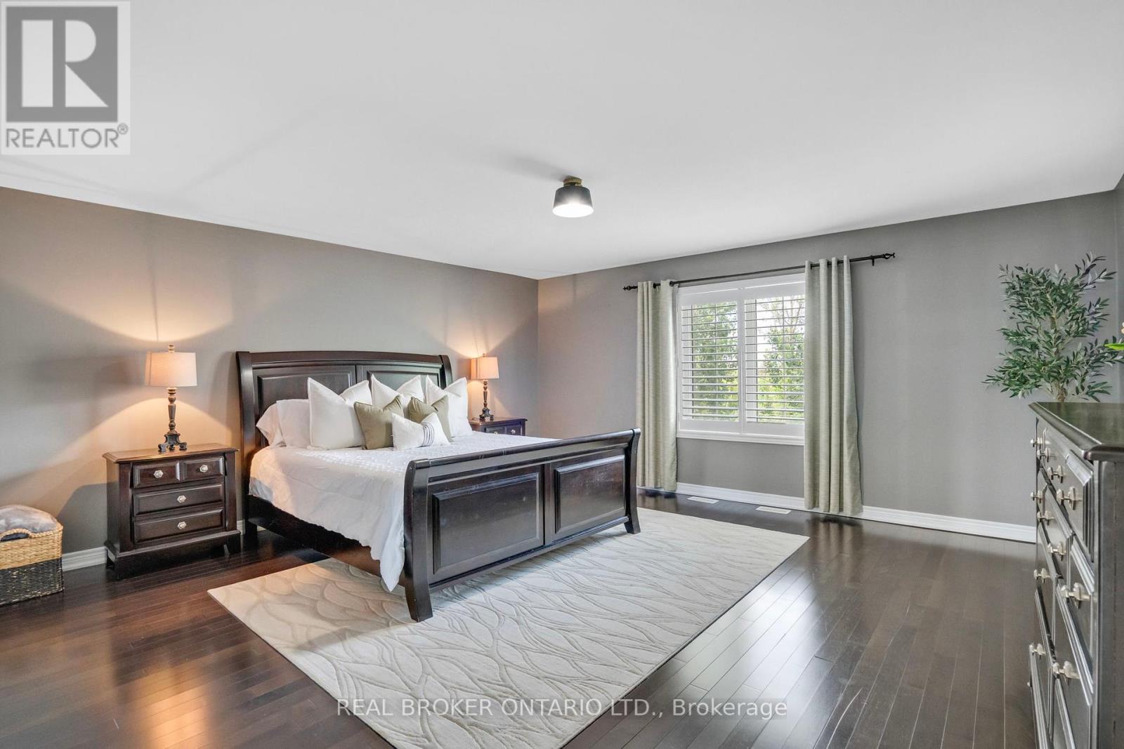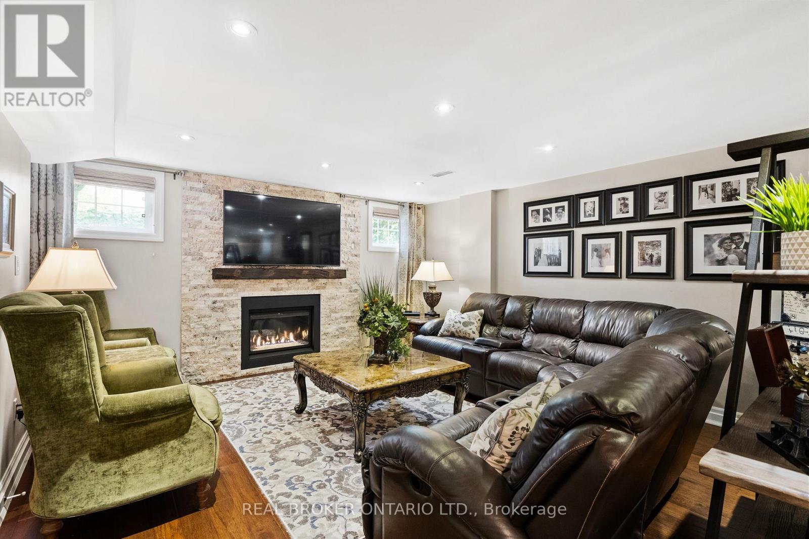 Welcome to this stunning Hampshire Model 4-bedroom home, nestled in a highly sought-after, family-friendly neighborhood. Offering exceptional curb appeal with exterior pot lights, patterned concrete, and a double-wide driveway accommodating up to 4 vehicles, this home truly has it all. Inside, you will find an inviting layout with smooth ceilings and rich hardwood flooring throughout. The main floor boasts elegant pot lights in the hallway, kitchen, and living room, where a coffered ceiling and cozy gas fireplace create the perfect space to relax. The gourmet kitchen features stainless steel appliances, granite countertops, and a bright breakfast area with sliding doors leading to a beautifully landscaped backyard complete with a composite deck, gazebo, shed, and a convenient gas line for your BBQ. Upstairs, you will discover four spacious bedrooms, including a luxurious primary suite with custom closet cabinetry and a fully renovated ensuite (2023) featuring heated floors. California shutters adorn the windows, adding both style and privacy. The finished basement extends the living space with engineered hardwood flooring, pot lights, and a stunning second kitchen that is perfect for entertaining. Additional features include central vacuum with a convenient vac pan in the kitchen and water softener(2025) . This is a home designed for comfort, style, and family living - offering the perfect blend of elegance and functionality with thoughtful upgrades throughout. From the beautifully finished basement to the backyard oasis, every detail has been crafted for entertaining, relaxing, and making lifelong memories. (id:51158)