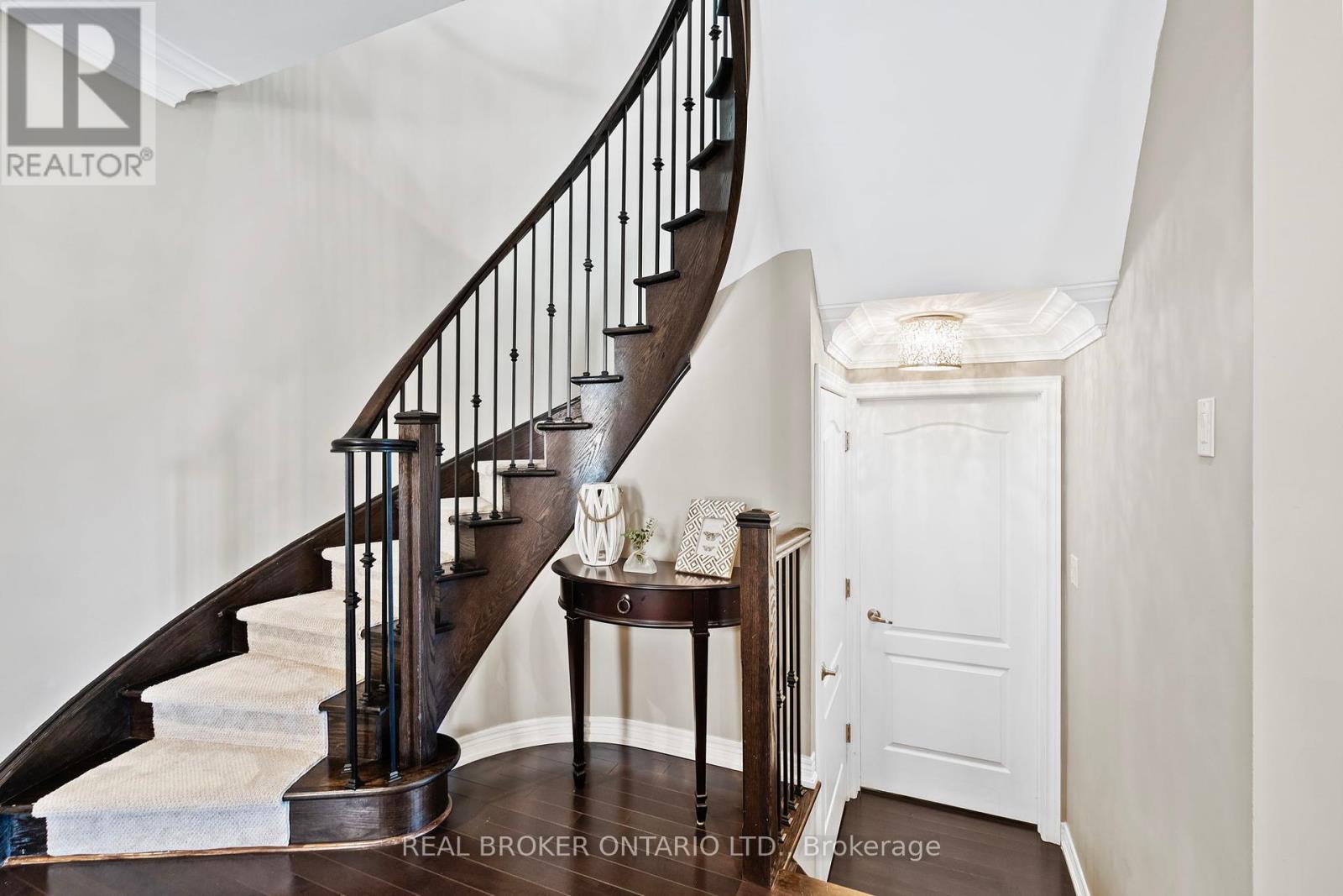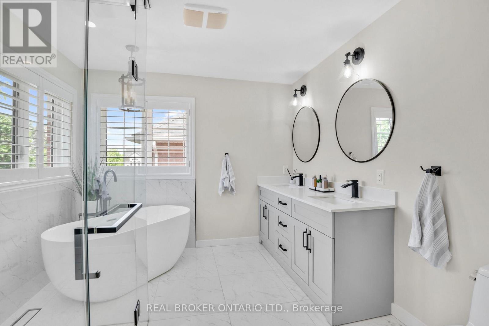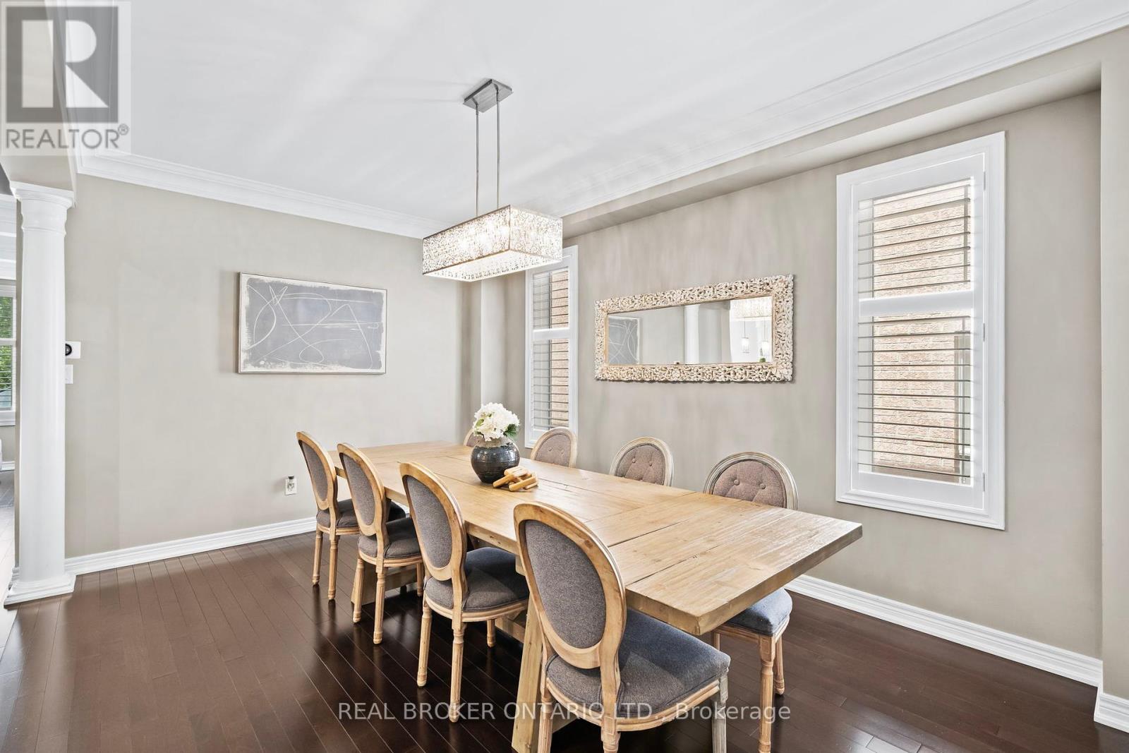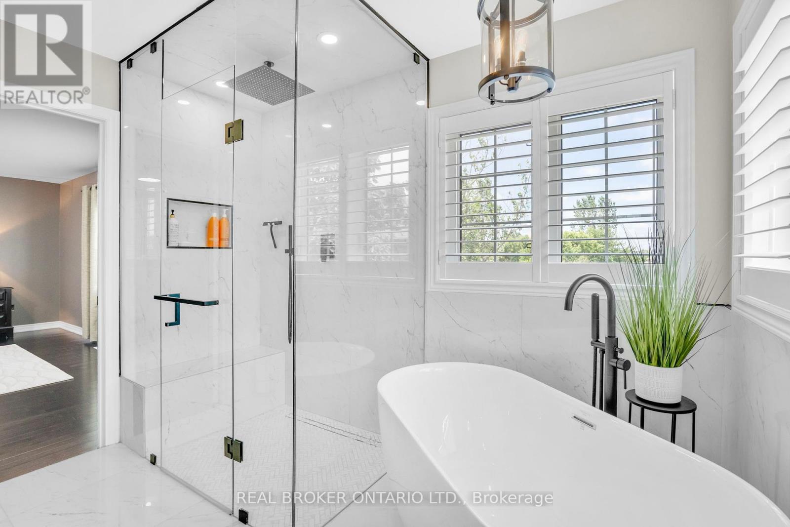 Welcome to this stunning Hampshire Model 4-bedroom home, nestled in a highly sought-after, family-friendly neighborhood. Offering exceptional curb appeal with exterior pot lights, patterned concrete, and a double-wide driveway accommodating up to 4 vehicles, this home truly has it all. Inside, you will find an inviting layout with smooth ceilings and rich hardwood flooring throughout. The main floor boasts elegant pot lights in the hallway, kitchen, and living room, where a coffered ceiling and cozy gas fireplace create the perfect space to relax. The gourmet kitchen features stainless steel appliances, granite countertops, and a bright breakfast area with sliding doors leading to a beautifully landscaped backyard complete with a composite deck, gazebo, shed, and a convenient gas line for your BBQ. Upstairs, you will discover four spacious bedrooms, including a luxurious primary suite with custom closet cabinetry and a fully renovated ensuite (2023) featuring heated floors. California shutters adorn the windows, adding both style and privacy. The finished basement extends the living space with engineered hardwood flooring, pot lights, and a stunning second kitchen that is perfect for entertaining. Additional features include central vacuum with a convenient vac pan in the kitchen and water softener(2025) . This is a home designed for comfort, style, and family living - offering the perfect blend of elegance and functionality with thoughtful upgrades throughout. From the beautifully finished basement to the backyard oasis, every detail has been crafted for entertaining, relaxing, and making lifelong memories. (id:51158)
