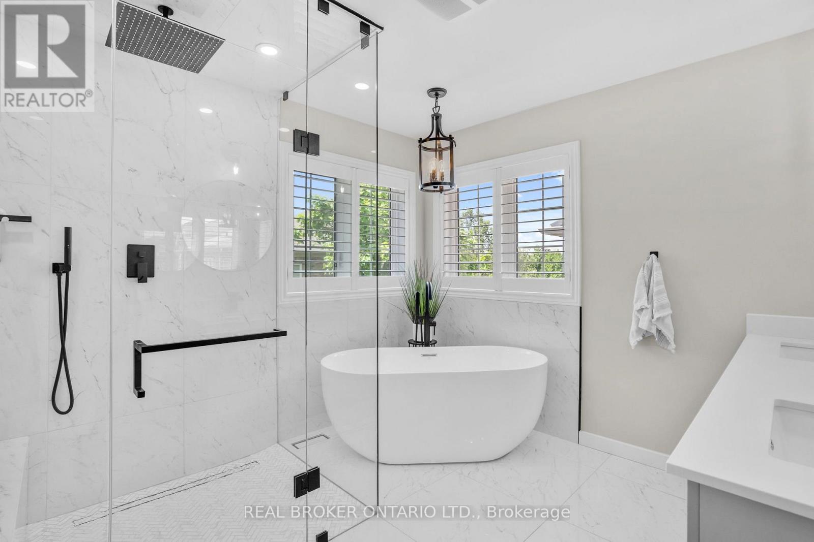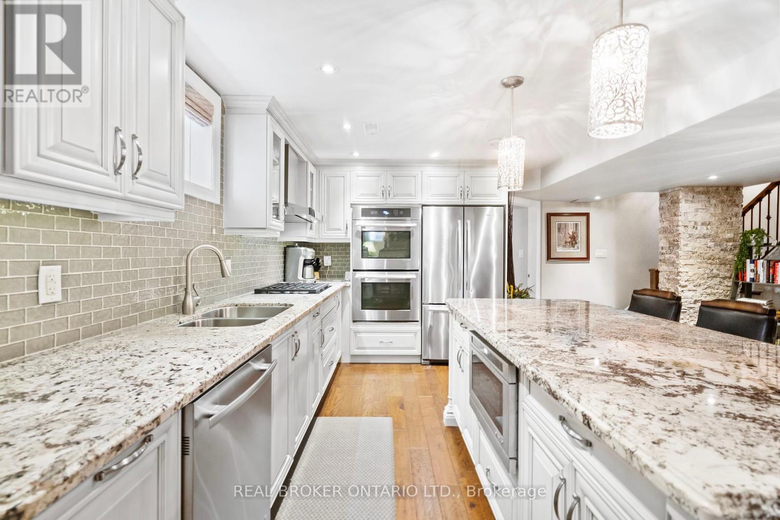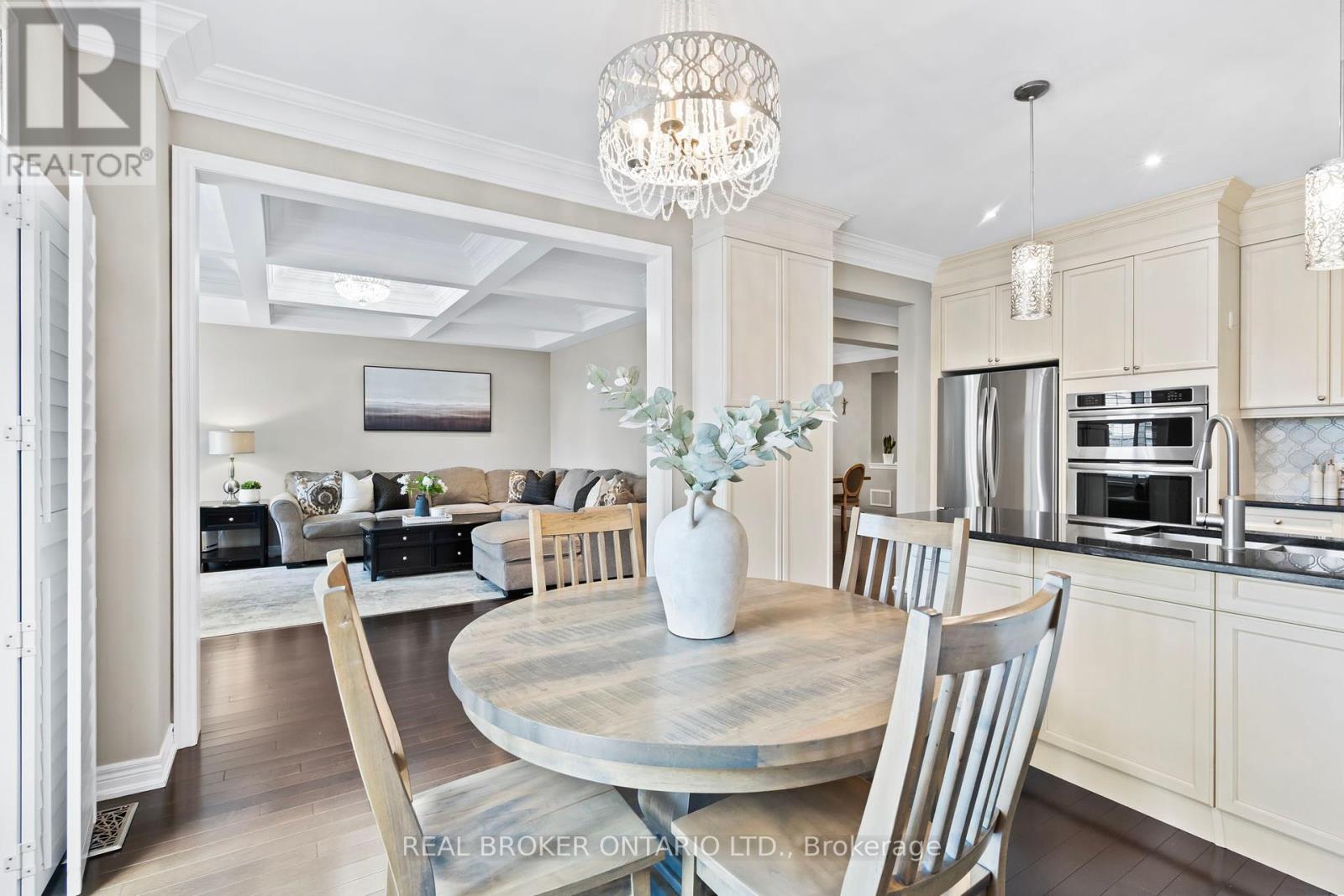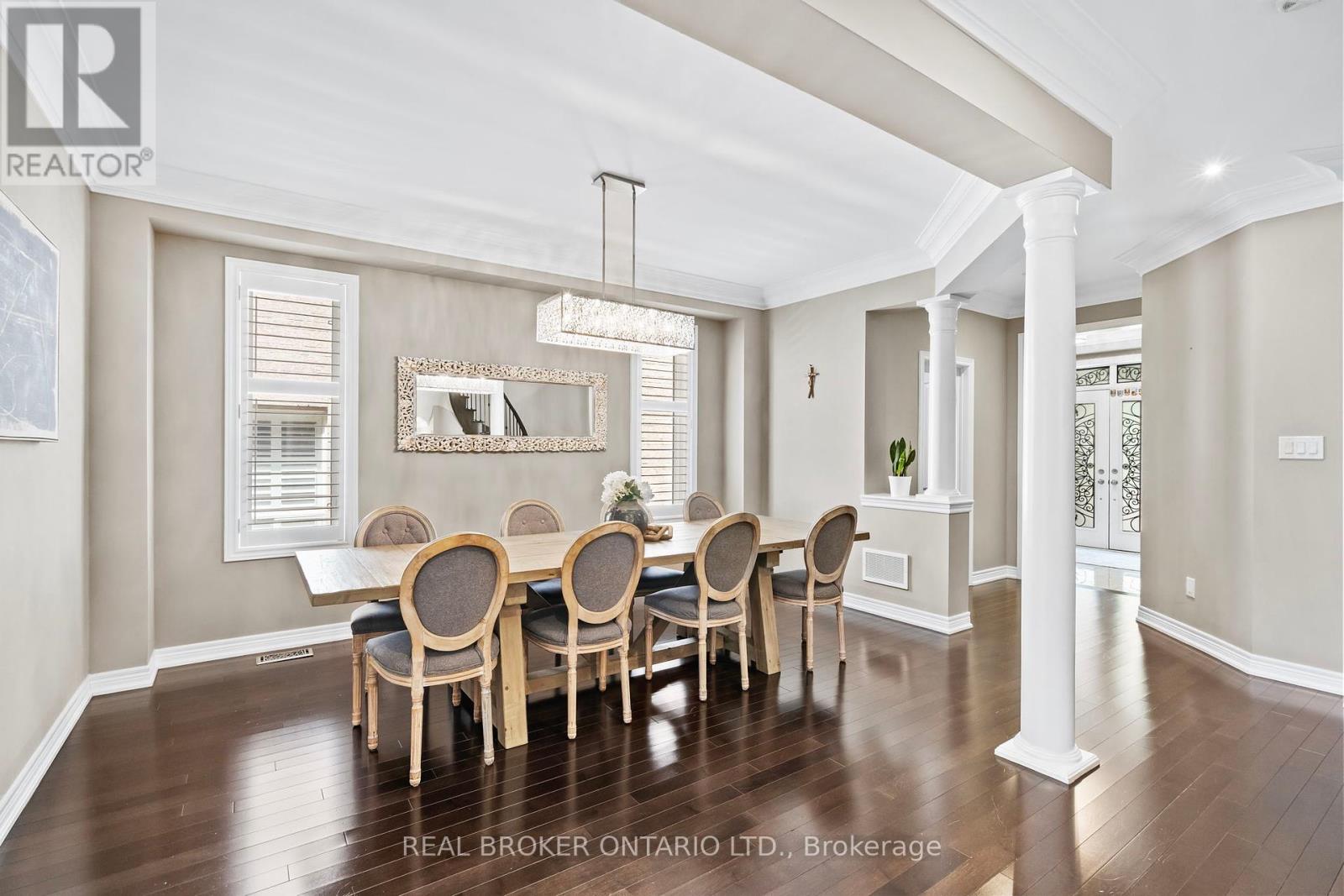 Welcome to this stunning Hampshire Model 4-bedroom home, nestled in a highly sought-after, family-friendly neighborhood. Offering exceptional curb appeal with exterior pot lights, patterned concrete, and a double-wide driveway accommodating up to 4 vehicles, this home truly has it all. Inside, you will find an inviting layout with smooth ceilings and rich hardwood flooring throughout. The main floor boasts elegant pot lights in the hallway, kitchen, and living room, where a coffered ceiling and cozy gas fireplace create the perfect space to relax. The gourmet kitchen features stainless steel appliances, granite countertops, and a bright breakfast area with sliding doors leading to a beautifully landscaped backyard complete with a composite deck, gazebo, shed, and a convenient gas line for your BBQ. Upstairs, you will discover four spacious bedrooms, including a luxurious primary suite with custom closet cabinetry and a fully renovated ensuite (2023) featuring heated floors. California shutters adorn the windows, adding both style and privacy. The finished basement extends the living space with engineered hardwood flooring, pot lights, and a stunning second kitchen that is perfect for entertaining. Additional features include central vacuum with a convenient vac pan in the kitchen and water softener(2025) . This is a home designed for comfort, style, and family living - offering the perfect blend of elegance and functionality with thoughtful upgrades throughout. From the beautifully finished basement to the backyard oasis, every detail has been crafted for entertaining, relaxing, and making lifelong memories. (id:51158)