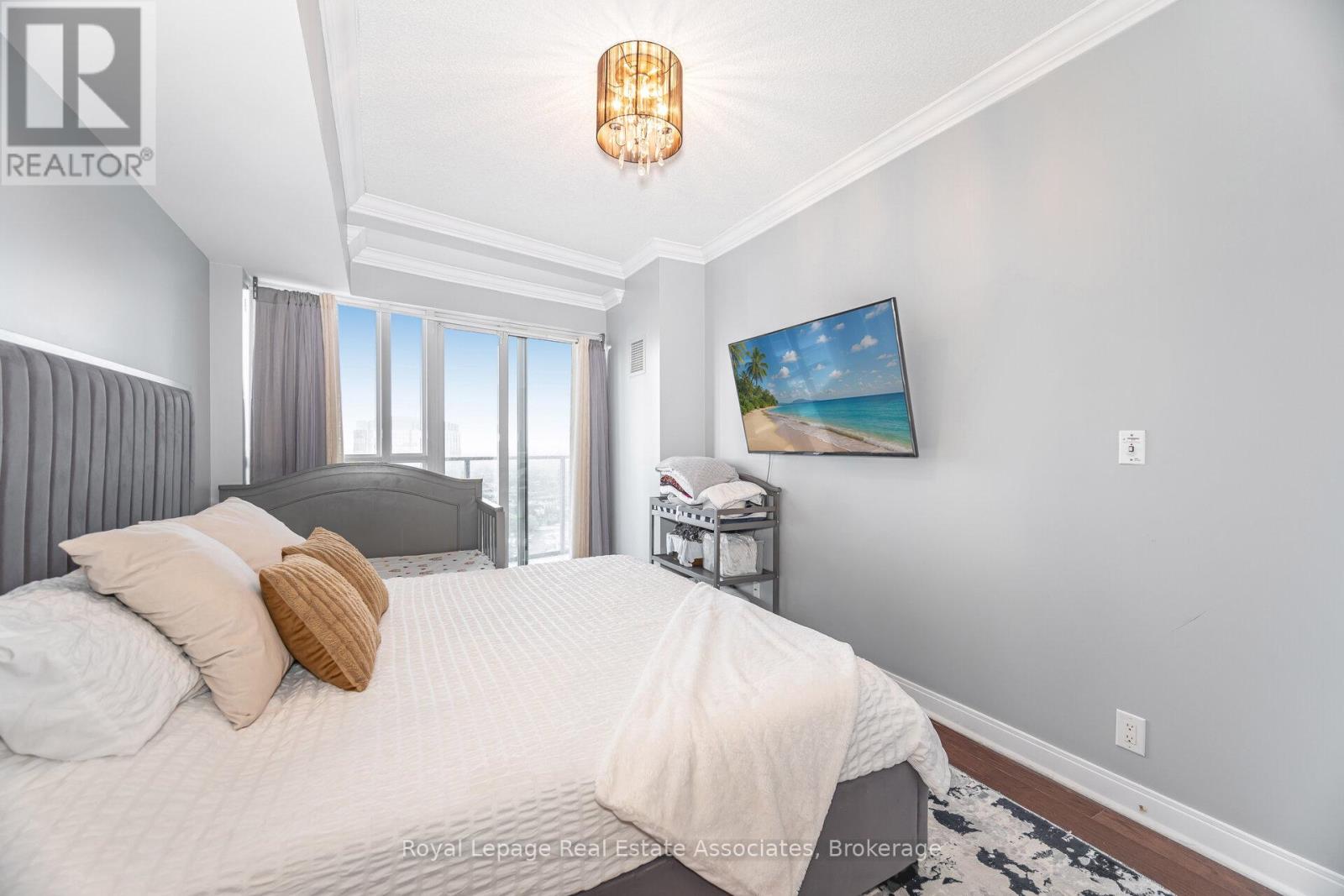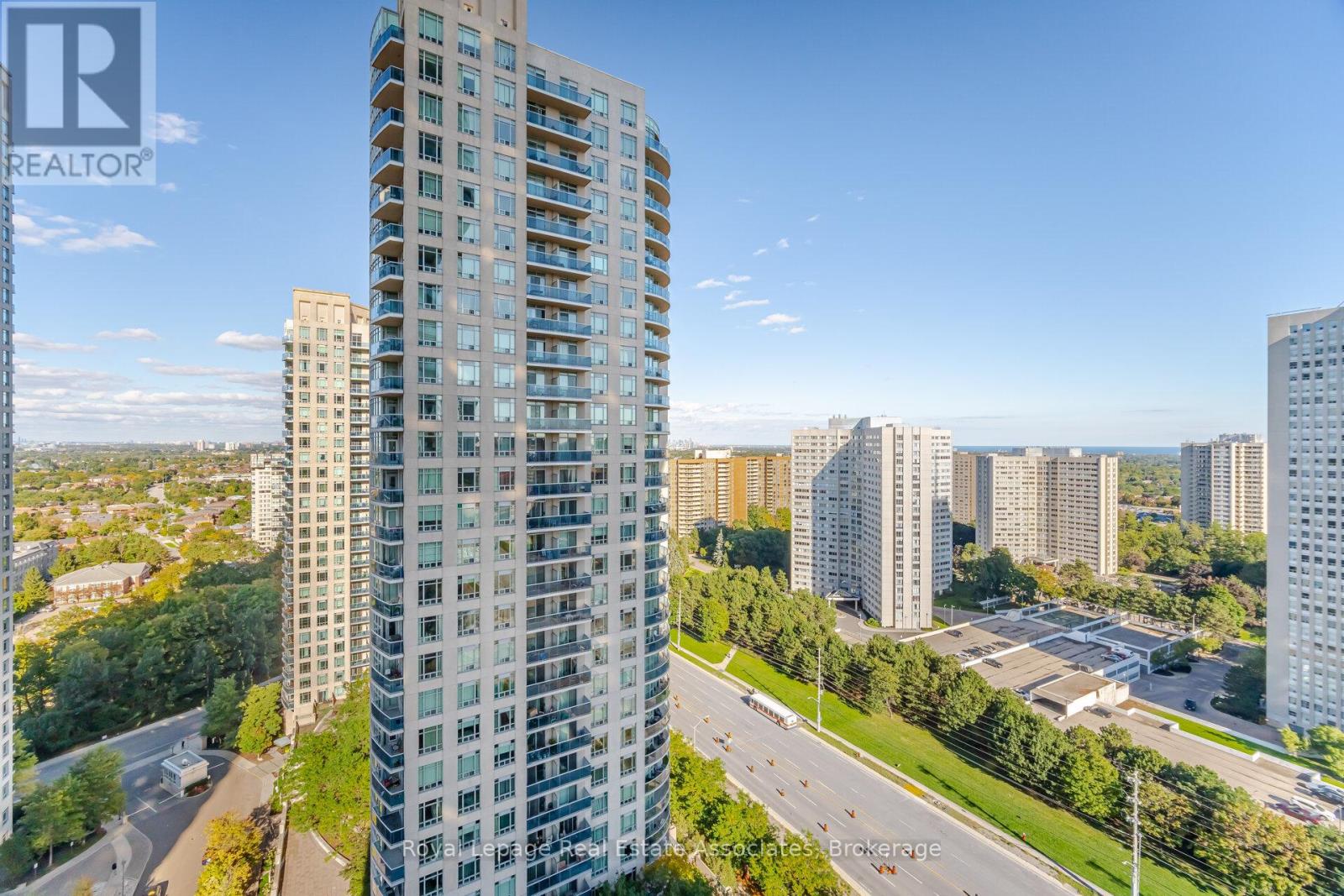 Experience luxury living in the heart of Mississauga at 60 Absolute Ave. This beautifully updated 3-bedroom, 2-bathroom condo offers stunning, unobstructed panoramic views through floor-to-ceiling windows that flood the home with natural light.The thoughtfully designed open-concept layout seamlessly connects the kitchen, dining, and living areas, creating an inviting space for both everyday living and entertaining. The modern kitchen features sleek cabinetry, stone countertops, and a breakfast bar, while the living area extends to a covered balcony accessible from all three bedrooms perfect for enjoying morning coffee or evening sunsets.The spacious primary suite includes a 4-piece ensuite bathroom and a large closet for ample storage. Two additional bedrooms provide flexibility for family, guests, or a home office all with direct balcony access.Residents enjoy a modern lobby and premium building amenities, including a fitness centre, indoor pool, party room, 24-hour concierge, and secure underground parking.Situated in a prime Mississauga location, this property places you at the centre of it all: Square One Shopping Centre right across the street, easy access to dining, entertainment, and parks, and the future Hurontario LRT at your doorstep. Major highways (403, 401, QEW) are just minutes away, making commuting seamless. (id:51158)