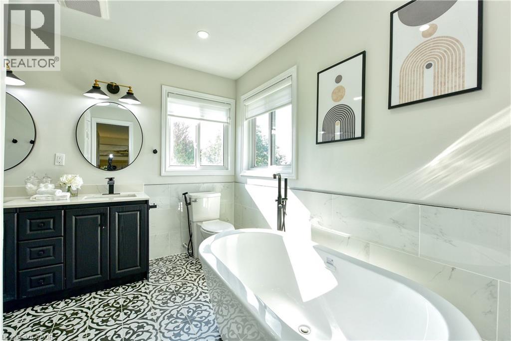 Welcome to this beautifully updated detached home located in the highly sought-after Bay Shore community, just one minute from the lake. This spacious 3+1 bedroom, 4-bathroom residence offers the perfect blend of modern upgrades and serene lakeside living. Ideally situated close schools, nature trails, and shopping malls, this home is perfect for families and outdoor enthusiasts alike. Inside, the home has been freshly painted in 2025 and features smooth ceilings and lots of natural light that brighten up the living spaces. Recent updates include a new refrigerator (2024), hot water tank (rental), furnace and air conditioning (2023), as well as attic insulation for improved energy efficiency. The primary bedroom boasts a fully renovated en-suite, while the guest bathroom has also been stylishly updated for modern comfort. Additional upgrades include a new washer and dryer, custom blinds throughout, and convenient gas lines for both the kitchen and BBQ ideal for entertaining. The versatile layout includes a finished basement with an extra bedroom or recreation space, making it perfect for guests, a home office, or a growing family. Located in a peaceful and prestigious neighborhood, this home offers quick access to the waterfront, parks, and all essential amenities. (id:51158)