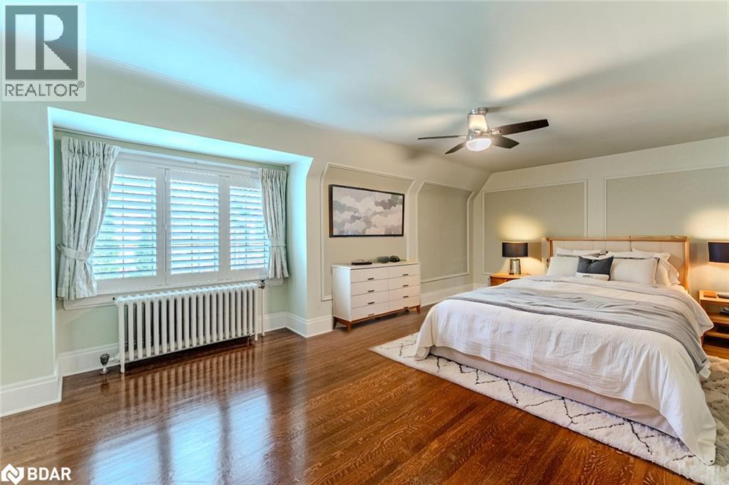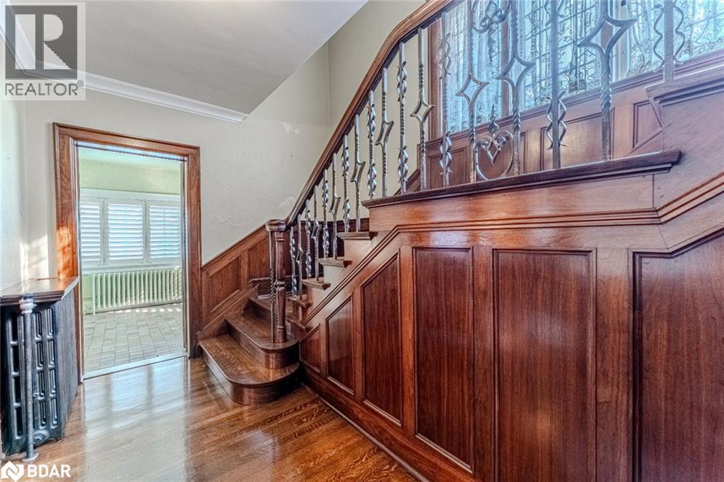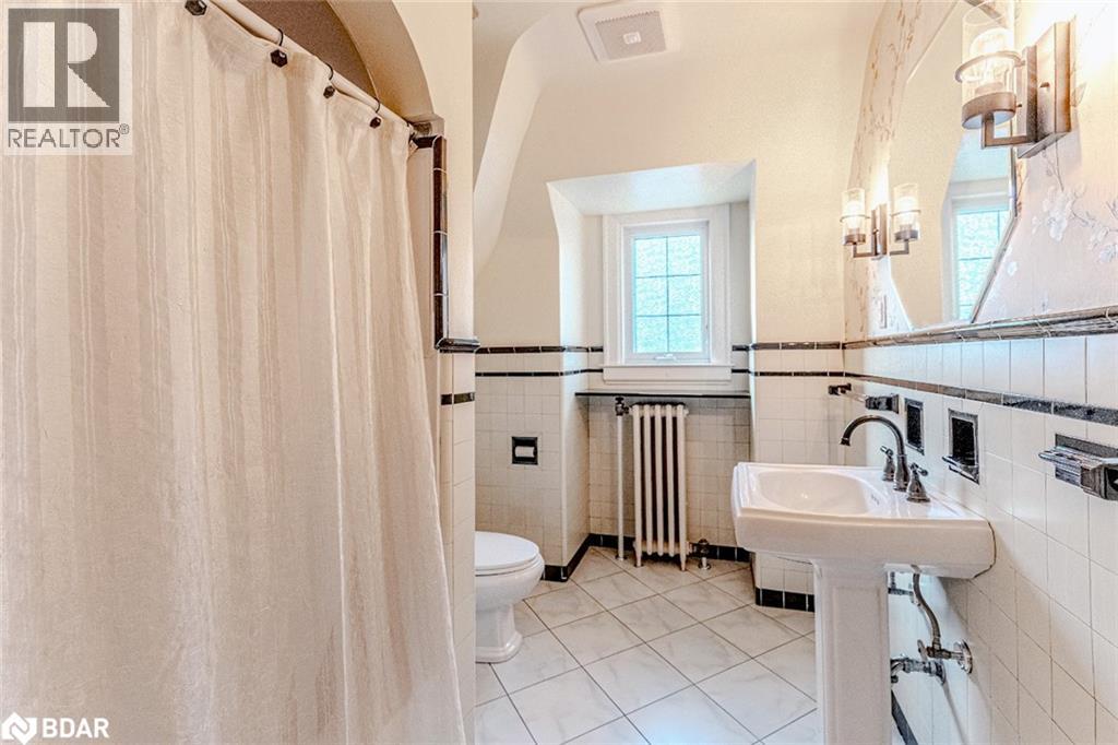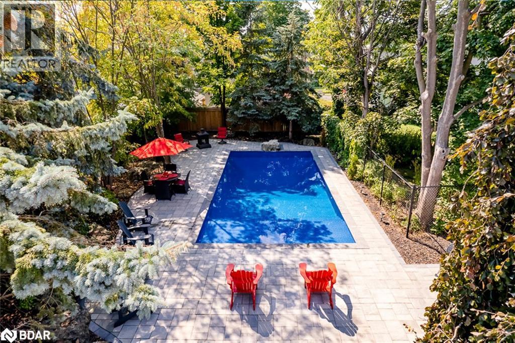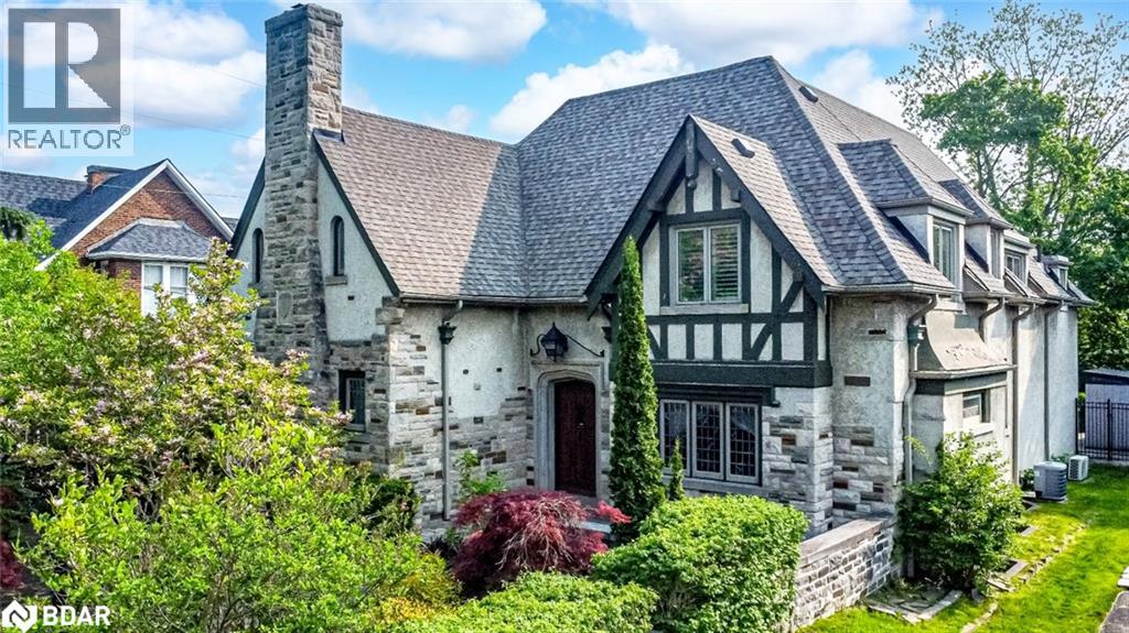 LEGENDARY ARCHITECTURE, LUXURIOUS LIVING & UNRIVALED CRAFTSMANSHIP! With unapologetic presence, this stately Tudor landmark commands attention through rich character, architectural detail, and a backyard that feels pulled from the pages of a European estate portfolio. A new heated saltwater pool, servant's quarters transformed into a private suite, Wolf range, butler's pantry, Dolby theatre, and craftsmanship that's nearly impossible to replicate - this is 60 High St, one of Barrie's most iconic homes! Built in 1929 by Shoe Factory owner Ross Underhill and now heritage-designated, it sits near the waterfront, trails, restaurants, shops, GO Transit and more. The 16' x 34' inground saltwater pool features an 8.5 ft deep end, tanning ledge, yoga zone, and OmniLogic control and is surrounded by stone walkways, an irrigation system, mature trees, and a pool shed. The Tudor-arched front door opens to quarter-cut oak flooring, walnut wainscoting, leaded glass doors, plaster crown mouldings, and a grand staircase. The kitchen stuns with quartz counters, glass backsplash, extended cabinets, under-cabinet lighting, and stainless steel appliances, including a Wolf dual fuel gas/electric range and a Sub-Zero side-by-side fridge/freezer. A butler's pantry connects to the formal dining room with a picture window and crest-detailed glass doors. The front parlour includes a decorative fireplace with built-ins and hidden HDMI/data wiring, while the sunroom brings in plenty of light. The primary offers a walk-in closet with automatic lighting and a 4-pc ensuite with original tile, while two additional bedrooms share a well-appointed bathroom. Transformed servant's quarters offer its own staircase, separate bedroom, and 3-pc bath. A partially finished basement includes a Dolby-equipped theatre, storage, and access to the oversized garage. A home of this calibre doesn't just make an impression; it makes history, and it's ready for its next discerning owner to continue the story. (id:51158)