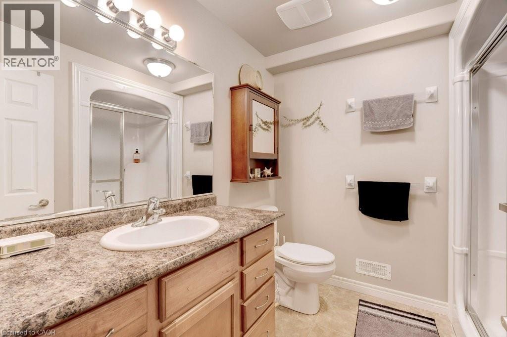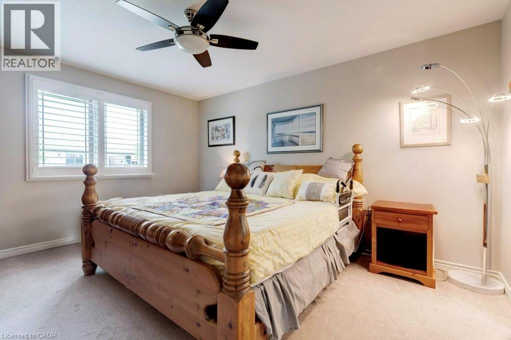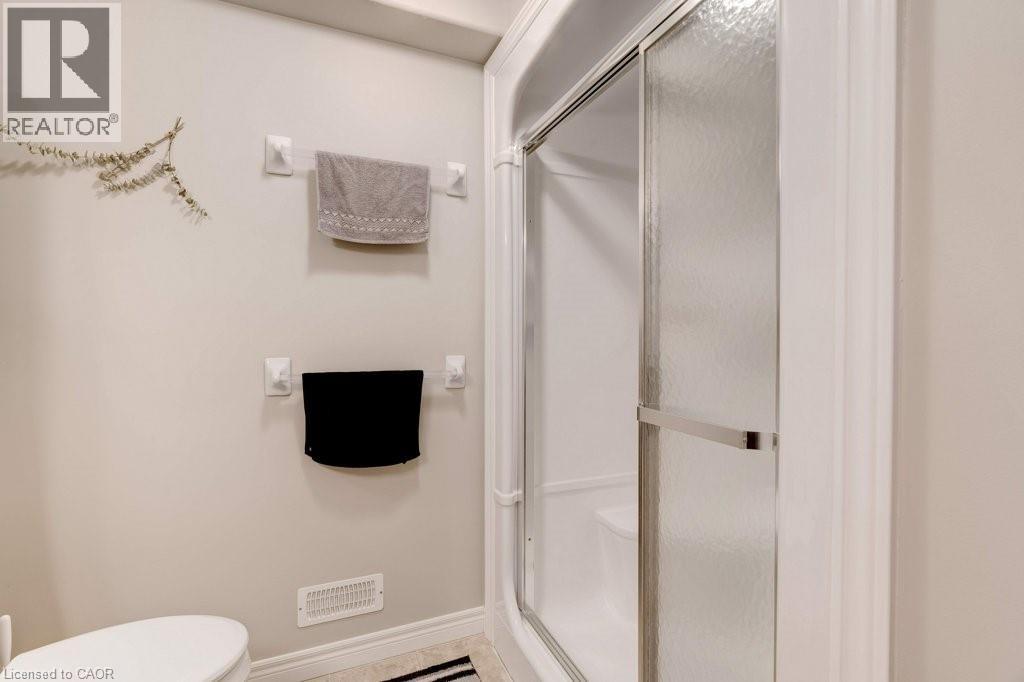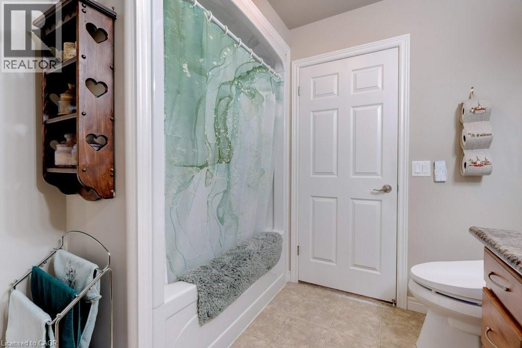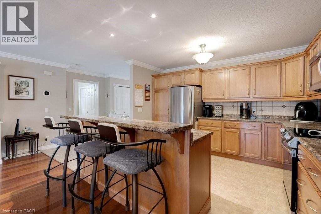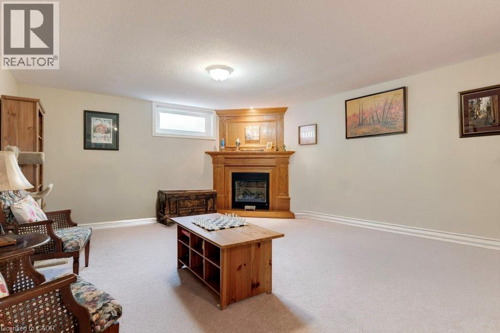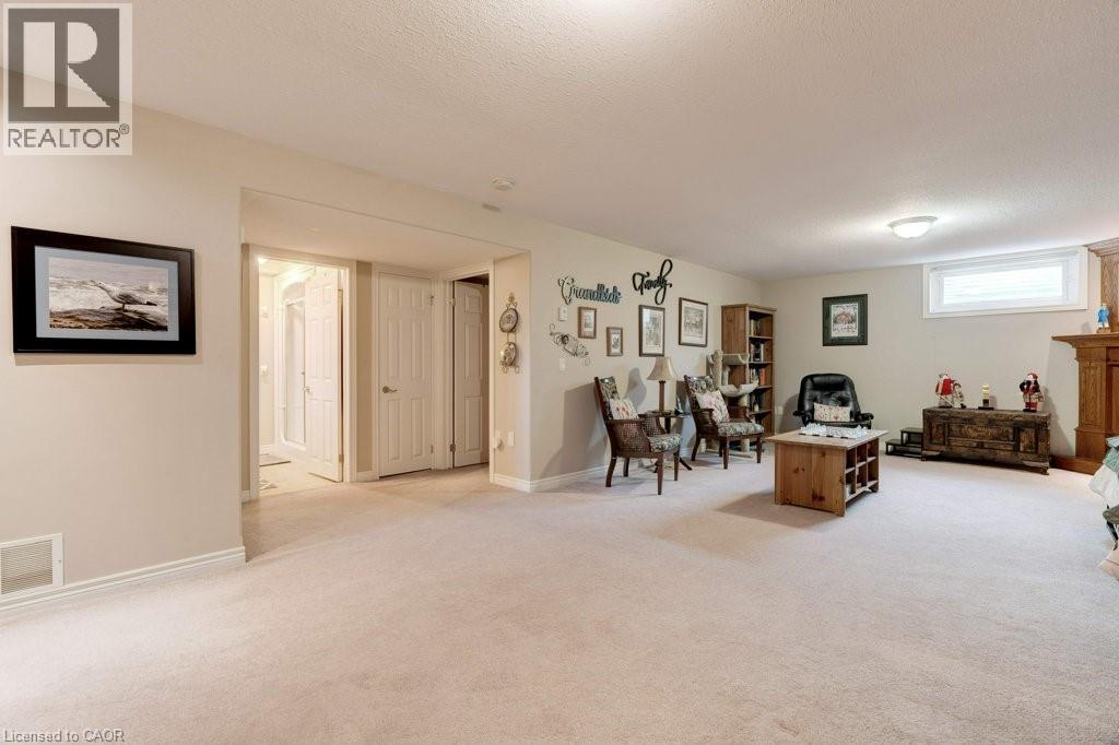 PRICED TO SELL! A Tranquil Bungalow Townhome Backing Onto Greenspace. This lovingly maintained 2+1 bedroom townhome with a den offers effortless, low-maintenance living in a desirable, well-managed condo community. Set within beautifully landscaped grounds, this home invites you to relax and unwind without the hassle of outdoor upkeep. Step inside to a bright, open-concept main floor featuring hardwood floors and California shutters throughout. The open living room leads to a private deck through sliding glass doors complete with a remote-controlled awning, overlooking a peaceful greenbelt and mature trees. It’s the perfect setting for your morning coffee or an evening glass of wine. The stylish kitchen is equipped with stainless steel appliances, including a newer stove and a fridge with built-in ice maker, pot lights with dimmers, a raised breakfast bar with seating, and a handy pantry. Just off the kitchen, the generous dining area easily accommodates a full-size table and hutch for all your entertaining needs. The main floor primary bedroom is impressively sized, with room for a California King bed, two wardrobes, and nightstands. It features dual closets, a ceiling fan, and direct access to a 4-piece semi-ensuite bath. The second bedroom also enjoys great natural light, a ceiling fan and california shutters. A convenient laundry closet on the main floor, houses a brand-new washer. Downstairs, you’ll find a finished basement with an additional bedroom (featuring egress windows), a gas fireplace, and a private den/office with French doors, ideal for guests or working from home. The 3-piece bathroom includes a glass shower enclosure. Additional highlights include ample basement storage, a water softener, reverse osmosis system, and a recently updated furnace and AC. If you're looking for easy living in a quiet, friendly community close to everything Brantford has to offer, this is the one. (id:51158)