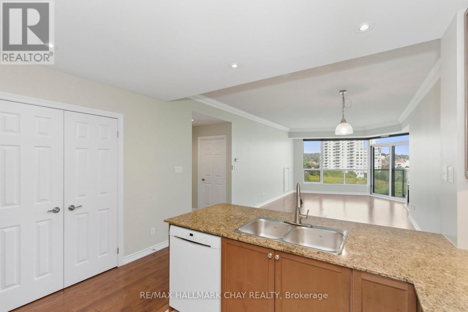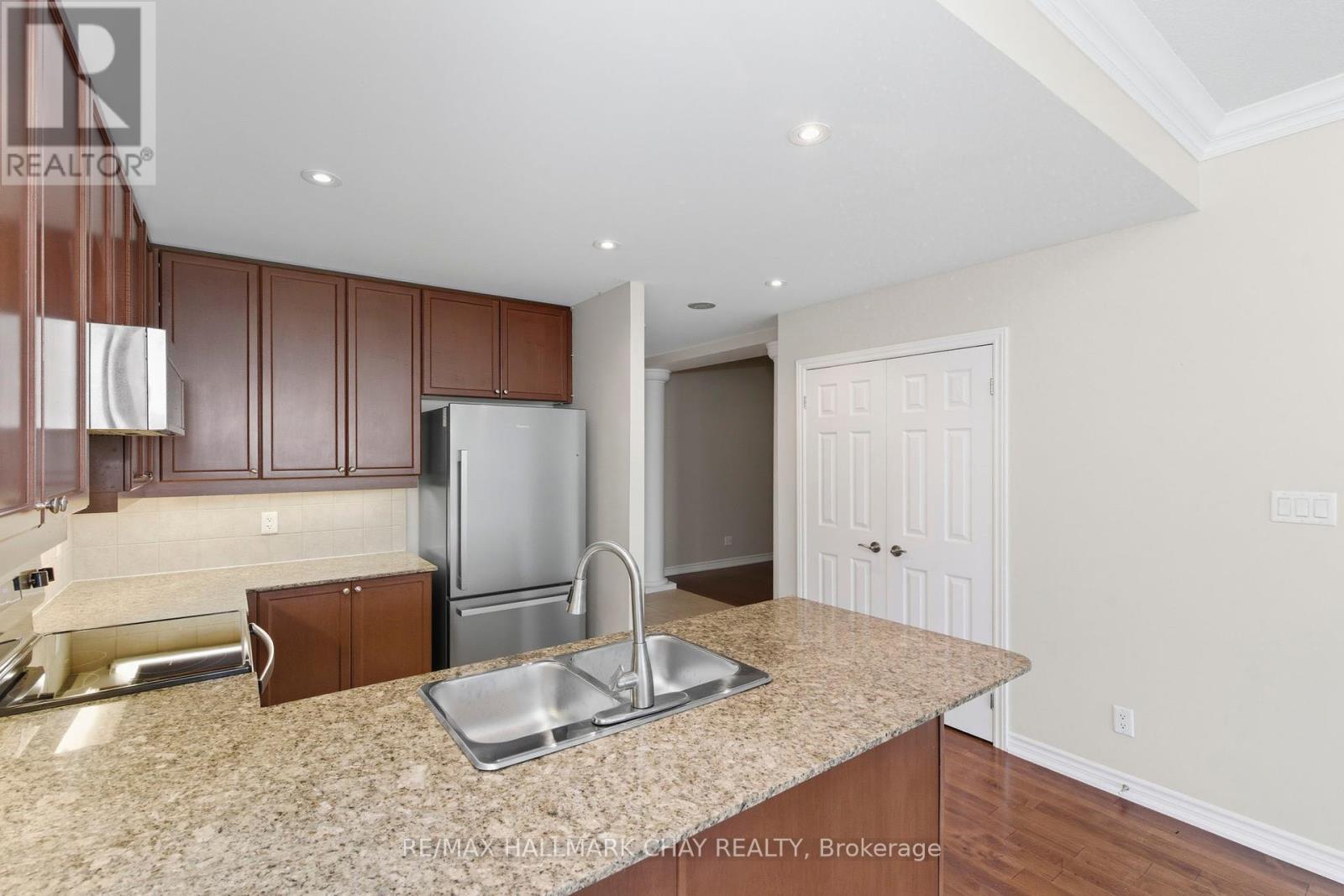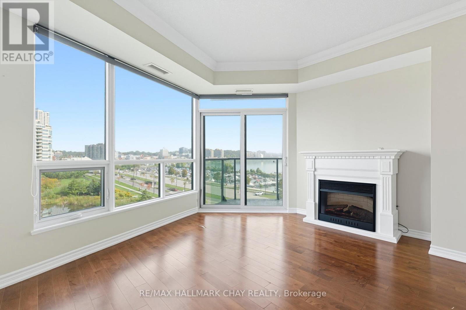You wont want to miss this opportunity to own this beautiful, spacious, and bright 2 bedroom, 2 bathroom + den Bermuda model in the highly sought-after Nautica Condos. This 1,381 sq. ft. unit includes two underground parking spaces, a locker, in-suite laundry, and stunning views of Kempenfelt Bay. The open concept floor plan is ideal for entertaining, while the versatile den can serve as a dining room, home office, or second living space. The kitchen is equipped with a brand new stove (Sept 2025), new sink and faucet (Sept 2025), granite countertops, stainless steel fridge and microwave (July 2024) and loads of cupboard space. Both the living room and primary bedroom offer walk-outs to a private balcony, perfect for enjoying the view. The primary suite boasts a walk-in closet, two additional closets, and an ensuite with a large jacuzzi tub and a separate shower. The unit has also been professionally cleaned (Sept 2025), move-in ready! Building amenities include a pool, sauna, gym, concierge, on-site management, visitor parking, party rooms, and a games room. Located just steps from the beach, downtown, walking trails, the marina, and the Allandale GO Station, this condo combines lifestyle and convenience. (id:51158)