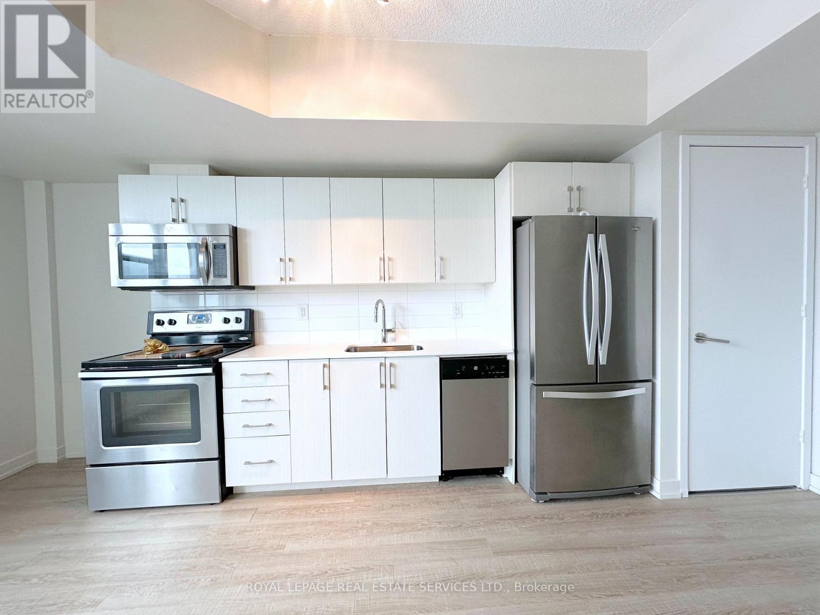 Bright and inviting 1-bedroom suite with a sunny west-facing view. This home features an open-concept layout with light-toned flooring throughout, a modern kitchen with stainless steel appliances and crisp white cabinetry, plus the convenience of ensuite laundry. A leisurely walk to Woodbine Park or Woodbine Beach with easy access to the TTC streetcar right outside your doorstep. Great building amenities including a fully equipped fitness centre and a beautiful 3rd-floor terrace complete with barbecues. Parking available to rent. Tenant to pay hydro and water (id:51158)