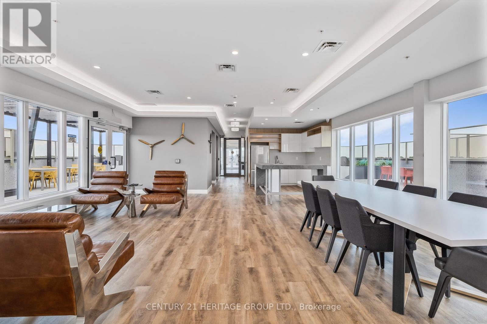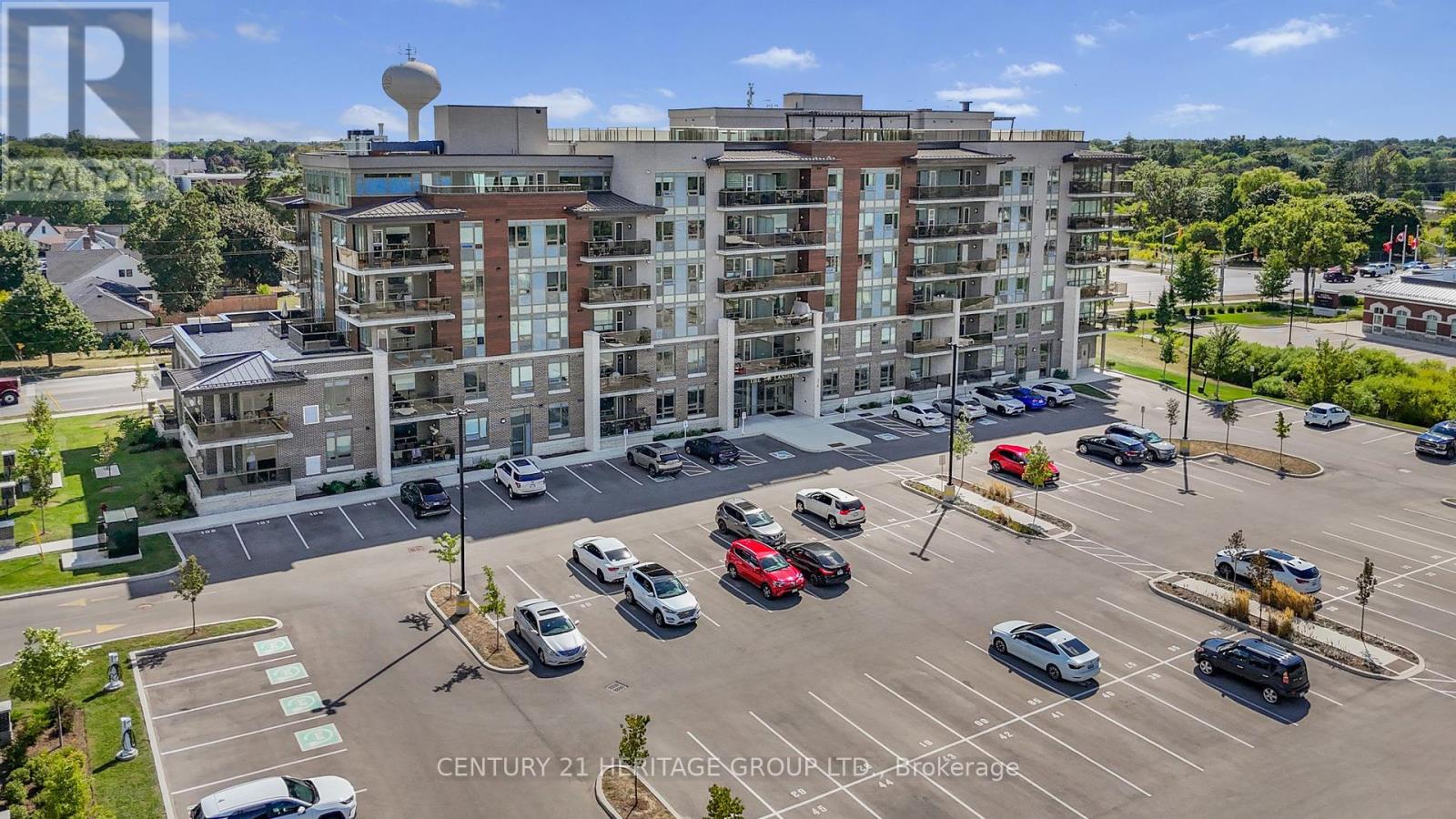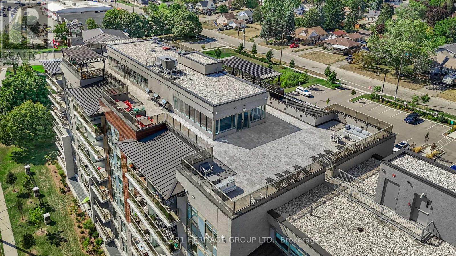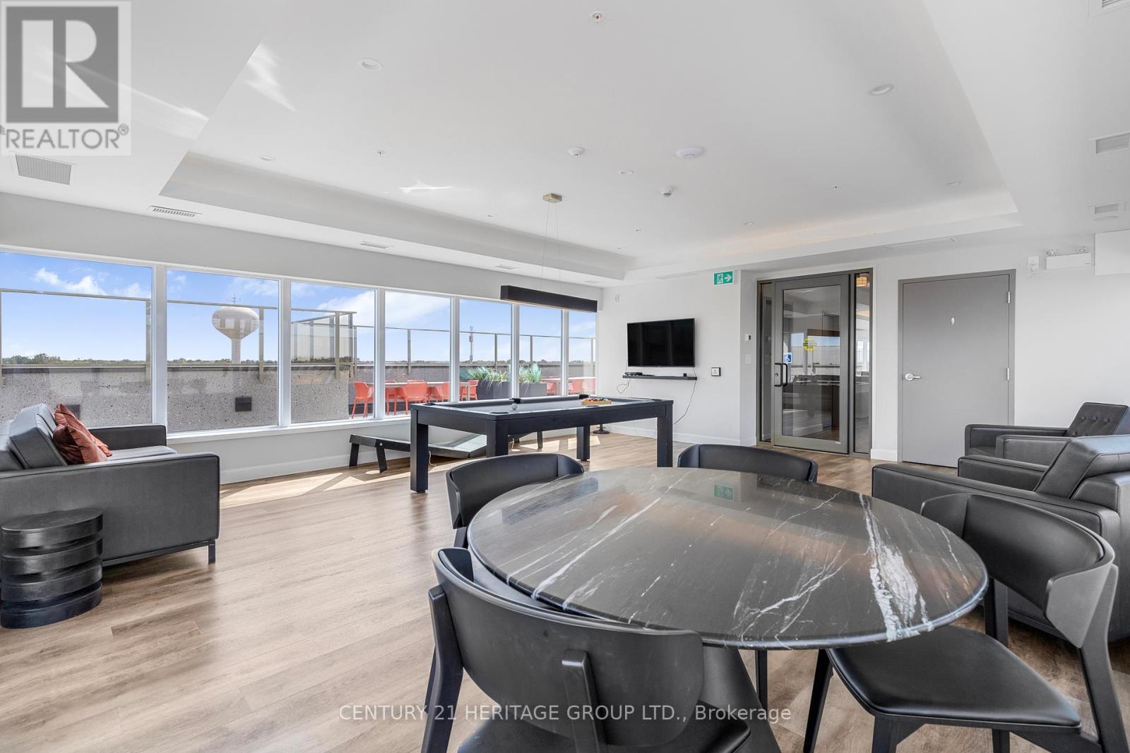 $364.78 MonthlyWelcome to this beautiful one-bedroom unit located on the sixth and top floor of the sought-after condo community The Landing in Brantford. This bright, modern suite combines style, comfort, and accessibility in a thoughtfully designed open-concept space. Featuring the upgraded 'Globe Trotter' package; this unit's kitchen has sleek shaker-style cabinetry, quality upgraded appliances, and tasteful finishes throughout. The spacious bathroom has an accessible layout, perfect for those using walkers or wheelchairs. Wide doorways throughout the unit further enhance ease of movement and add to the overall sense of space and luxury. Enjoy quiet mornings or relaxing evenings on your private balcony, with no upstairs neighbours and peaceful views from the top floor. Natural light radiates in, creating a warm and inviting atmosphere throughout. The Landing Condominiums offers a full range of amenities, including a rooftop terrace with panoramic views and BBQs, a cozy library for quiet afternoons, a hidden speakeasy-style lounge for entertaining, a kid's play area, and a modern fitness centre with premium equipment. Ideally located close to shops, restaurants, and essential services, with convenient access to major highways for easy commuting. Whether you're just starting out, downsizing, or investing, this is low-maintenance living in a welcoming community offering the perfect blend of luxury and practicality. Schedule your private showing today and experience life at The Landing. 1 Owned Parking & Locker (id:51158)