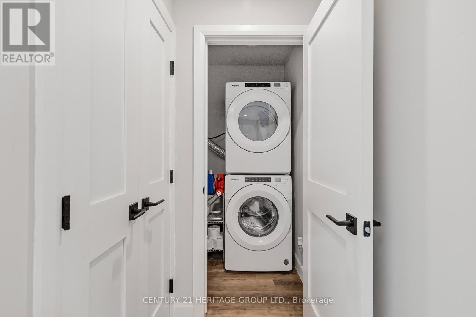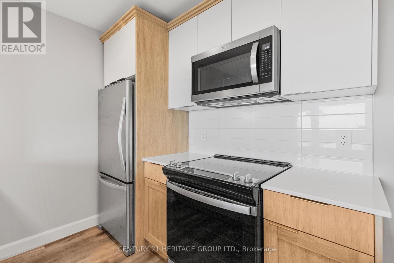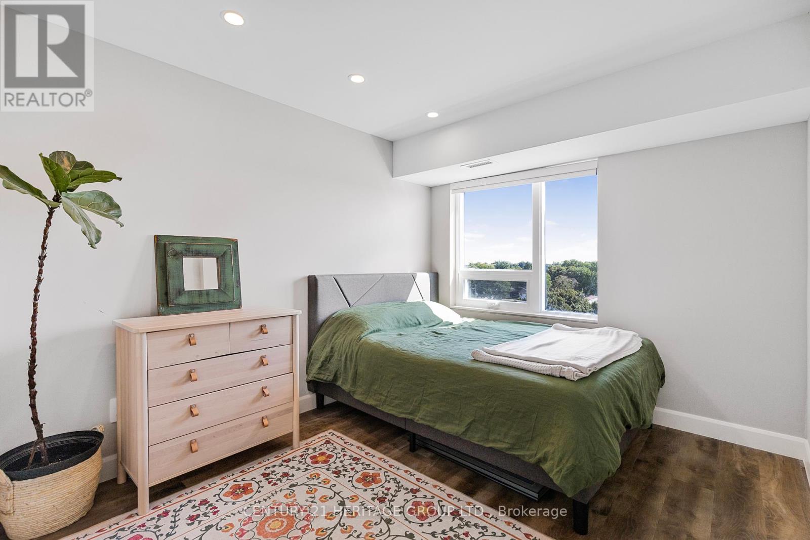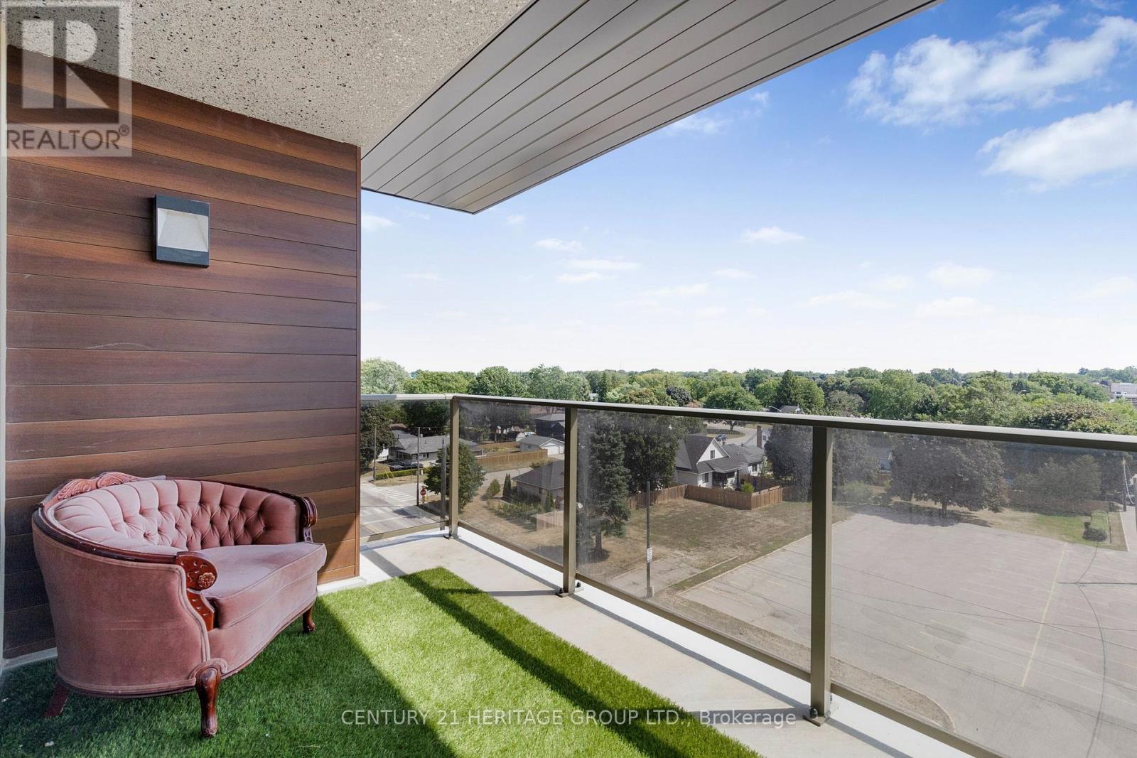 $364.78 MonthlyWelcome to this beautiful one-bedroom unit located on the sixth and top floor of the sought-after condo community The Landing in Brantford. This bright, modern suite combines style, comfort, and accessibility in a thoughtfully designed open-concept space. Featuring the upgraded 'Globe Trotter' package; this unit's kitchen has sleek shaker-style cabinetry, quality upgraded appliances, and tasteful finishes throughout. The spacious bathroom has an accessible layout, perfect for those using walkers or wheelchairs. Wide doorways throughout the unit further enhance ease of movement and add to the overall sense of space and luxury. Enjoy quiet mornings or relaxing evenings on your private balcony, with no upstairs neighbours and peaceful views from the top floor. Natural light radiates in, creating a warm and inviting atmosphere throughout. The Landing Condominiums offers a full range of amenities, including a rooftop terrace with panoramic views and BBQs, a cozy library for quiet afternoons, a hidden speakeasy-style lounge for entertaining, a kid's play area, and a modern fitness centre with premium equipment. Ideally located close to shops, restaurants, and essential services, with convenient access to major highways for easy commuting. Whether you're just starting out, downsizing, or investing, this is low-maintenance living in a welcoming community offering the perfect blend of luxury and practicality. Schedule your private showing today and experience life at The Landing. 1 Owned Parking & Locker (id:51158)