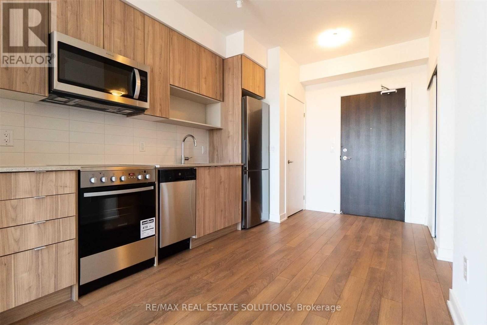 Enjoy unobstructed views with an open concept floorplan in this contemporary 1-bed + den, 1-bath suite at Platform Condos near Greenwood Station, available for November 1. The well-appointed interior includes a modern kitchen with stainless steel appliances and a separate den, ideal for a home office. The suite also features a walk-out balcony with unobstructed views. Building amenities include a games room, gym, party/meeting room, and a spectacular rooftop deck/garden. You are steps to the TTC (Greenwood Station), National Grocers, local banks, and an abundance of popular restaurants, offering excellent transit and walkability. (id:51158)