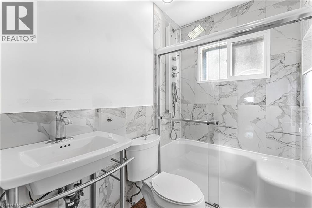 Welcome to 6122 Mayfair Drive, a beautifully updated home in a desirable Niagara Falls neighbourhood. The main floor features a lovely kitchen with rich cabinetry, granite countertops, a skylight for natural light, and included appliances. The open-concept dining and living areas showcase warm, rich-colour flooring, creating an inviting space for everyday living and entertaining. Three generous bedrooms and a completely redone 3-piece main bath complete this level. Freshly painted and thoughtfully updated, this home is truly move-in ready. The fully finished basement features a beautifully finished bath with a walk-in shower and a large, bright room with plenty of windows—ideal as a recreation room or an oversized bedroom with a walk-in closet. Excellent potential for an in-law suite or multigenerational living. Modern mechanicals include forced air natural gas, air exchanger with HEPA filter, on-demand tankless water heater, and water softener. Outside, enjoy the extended drive-through garage with front and rear doors, a double-wide paved/interlock driveway, and a lovely yard. The backyard also features a 10x20 shed with garage door, man door, and built-in shelving—perfect for storage or hobbies. Centrally located between the QEW and Highway 405, just minutes to Niagara Falls, Clifton Hill, schools, shopping, and parks. Book your showing today! Please note: some photos have been virtually staged. (id:51158)