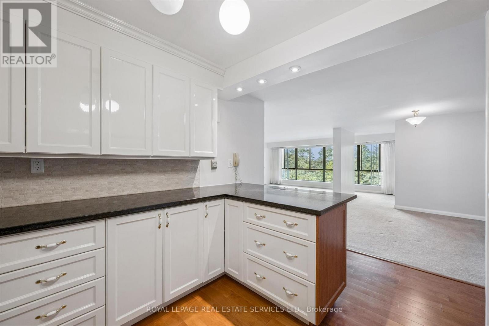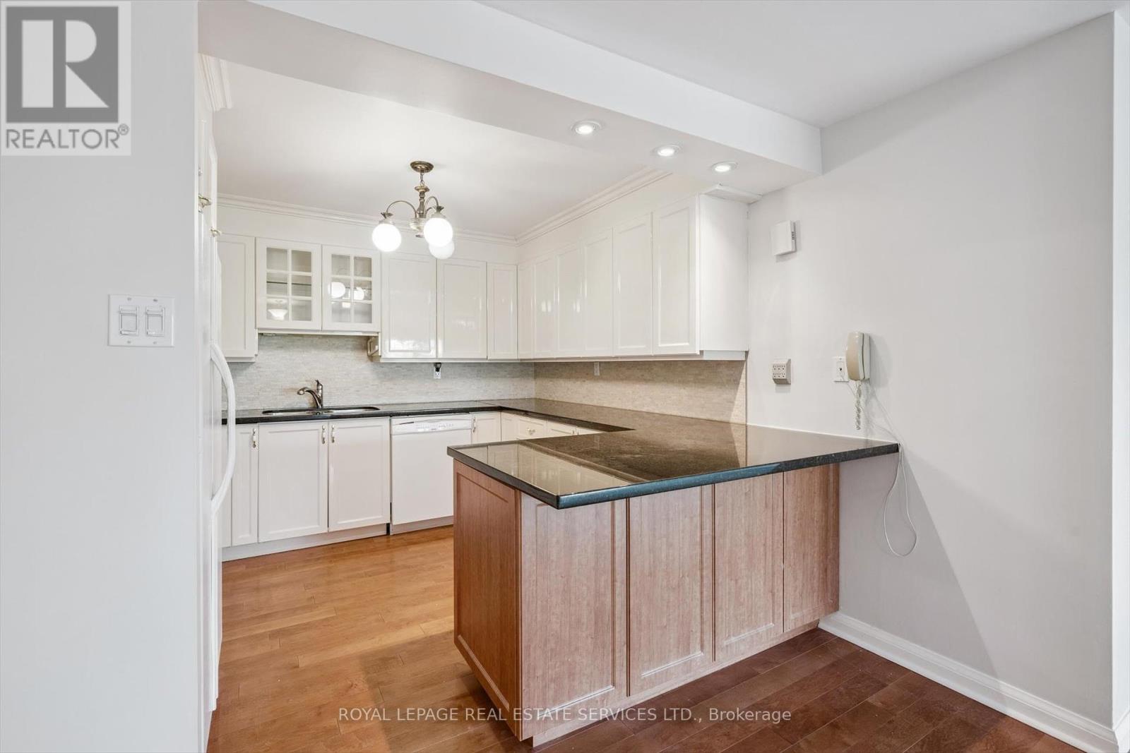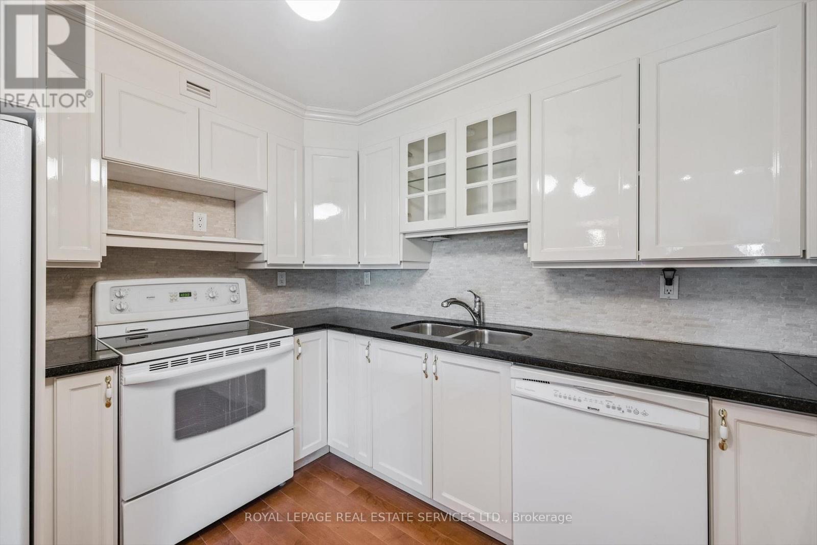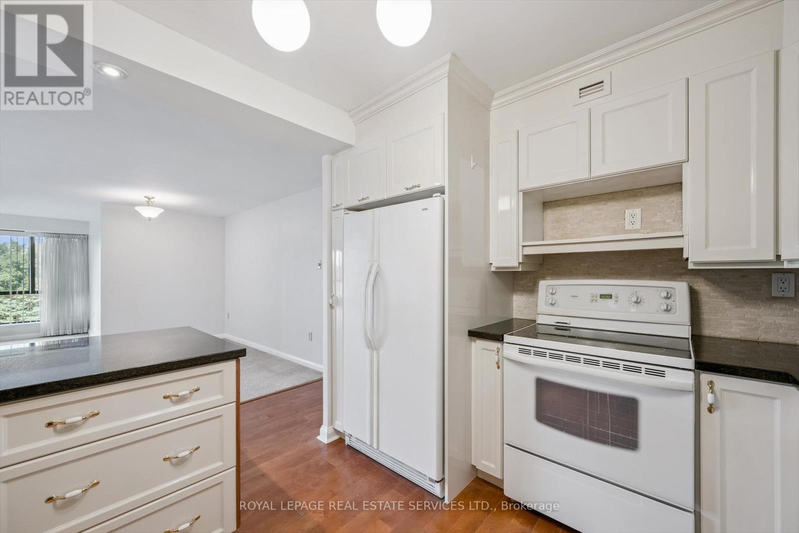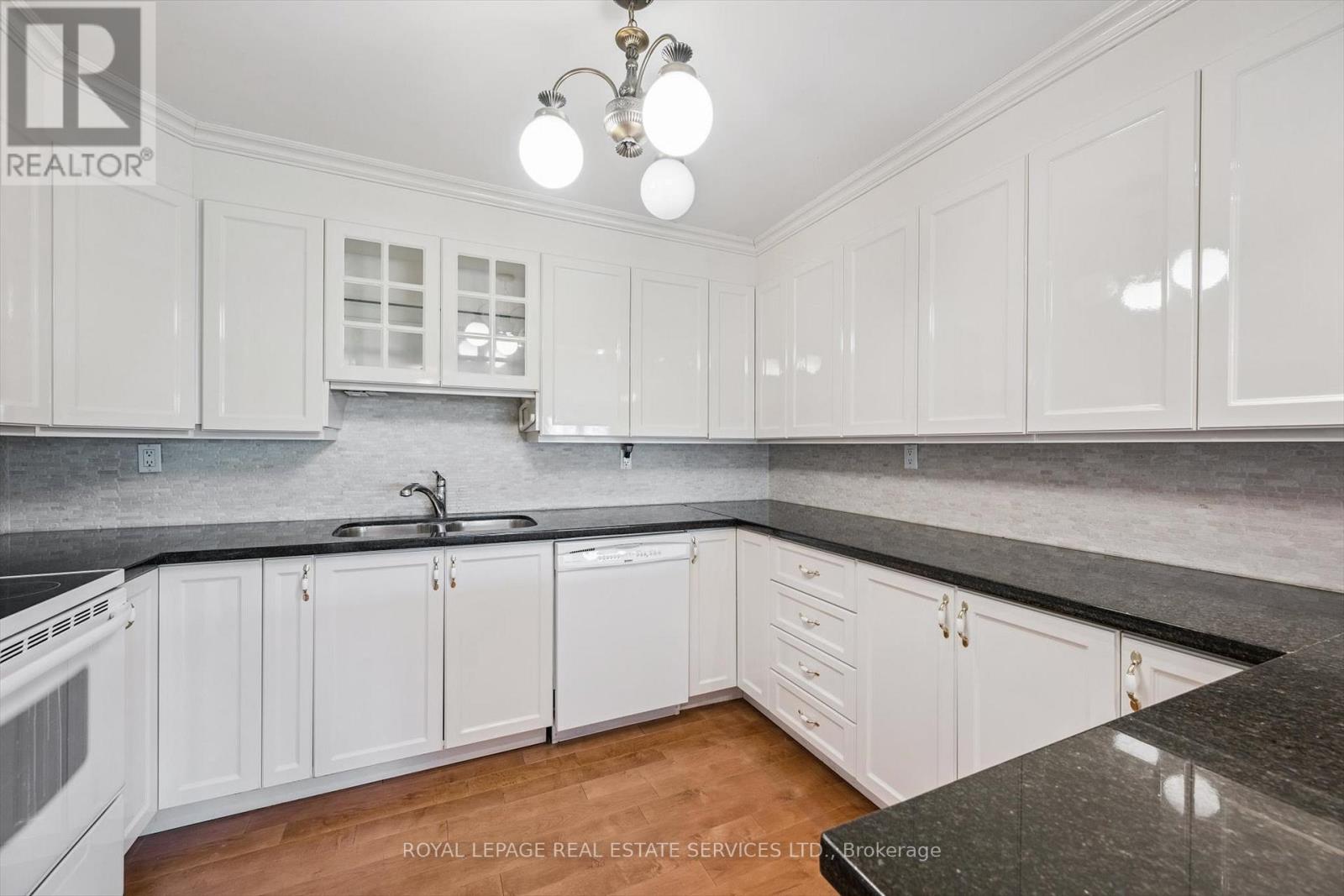 THE FAIRWAYS - WHERE LIFESTYLE MEETS LOCATION! Discover resort-style living in the sought-after Lakeview community. Set on over five acres bordered by Lakeview Golf Course and the prestigious Toronto Golf Club, this gated condominium community offers unmatched amenities and convenience. Fairways residents enjoy concierge service, party and meeting rooms, garden and music lounges, card and gallery rooms, a fully equipped gym with cardio and weight areas, change rooms with saunas, billiards and dart rooms, a library, woodshop, and car wash. Outdoors, indulge in the heated pool with expansive patio, BBQ area, tennis/pickleball courts, putting green, shuffleboard courts, pond, fountain, and beautifully landscaped grounds. McMaster House provides private function space, while ample visitor parking ensures guest convenience. This spacious two bedroom, two bathroom suite has been freshly painted throughout and offers nearly 1,500 square feet of exceptionally well-maintained living space. Designed for both everyday comfort and entertaining, the open concept living and dining areas are filled with natural light from oversized windows. The updated kitchen features white cabinetry with display cupboards, granite countertops, designer backsplash, breakfast bar, and engineered hardwood flooring. The large primary bedroom includes a four-piece ensuite, while the second bedroom is ideally positioned across from a three-piece bathroom with in-suite laundry. For peace of mind, the monthly condominium fee of $1,232.18 covers building insurance, common elements, heat, hydro, central air conditioning, water, cable TV, and parking. Ideally located close to major highways, GO Transit, Pearson Airport, Sherway Gardens, Dixie Outlet Mall, Lake Ontario, and everyday conveniences, Fairways offers more than just a home - it delivers a lifestyle defined by leisure, comfort, and connection. (id:51158)