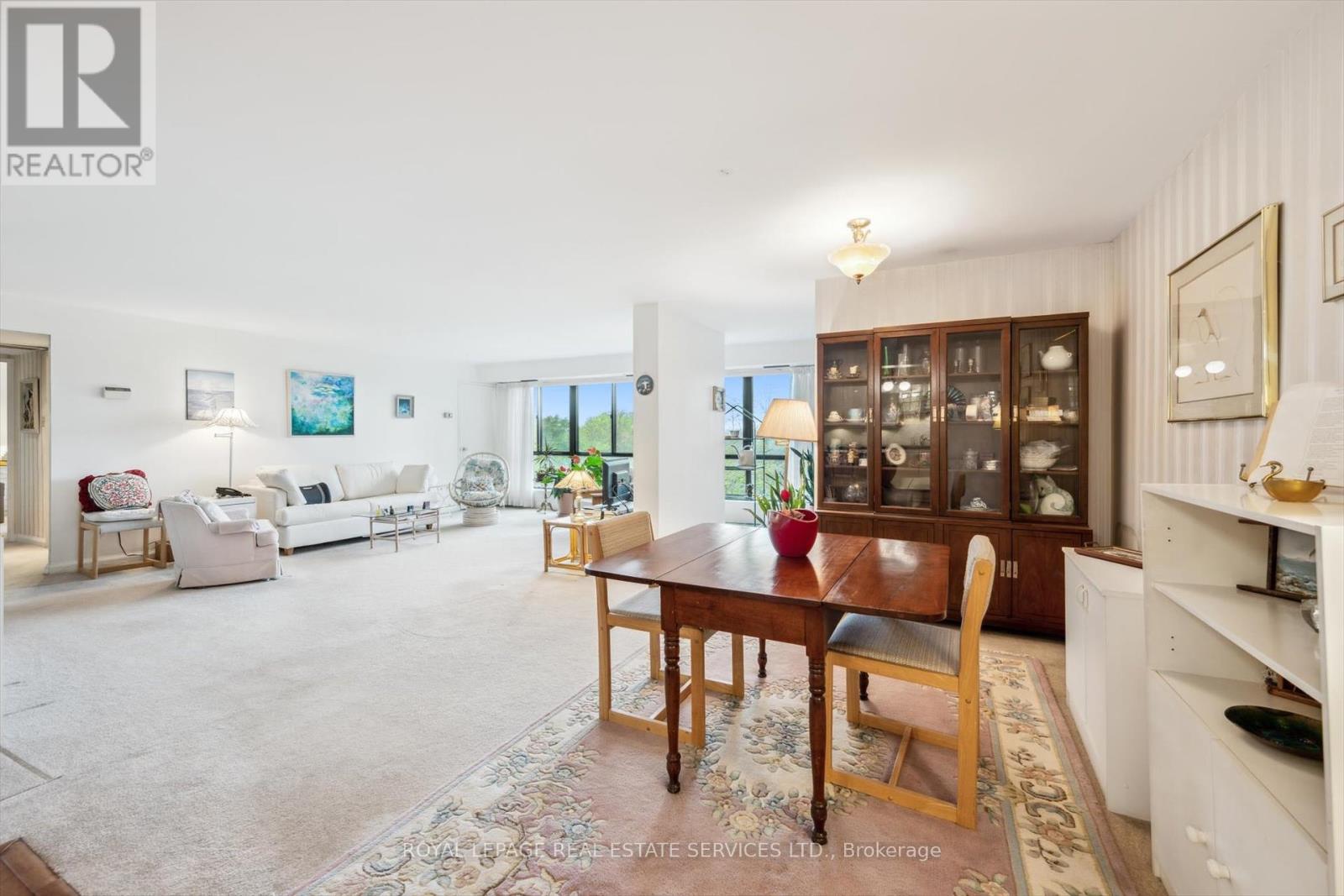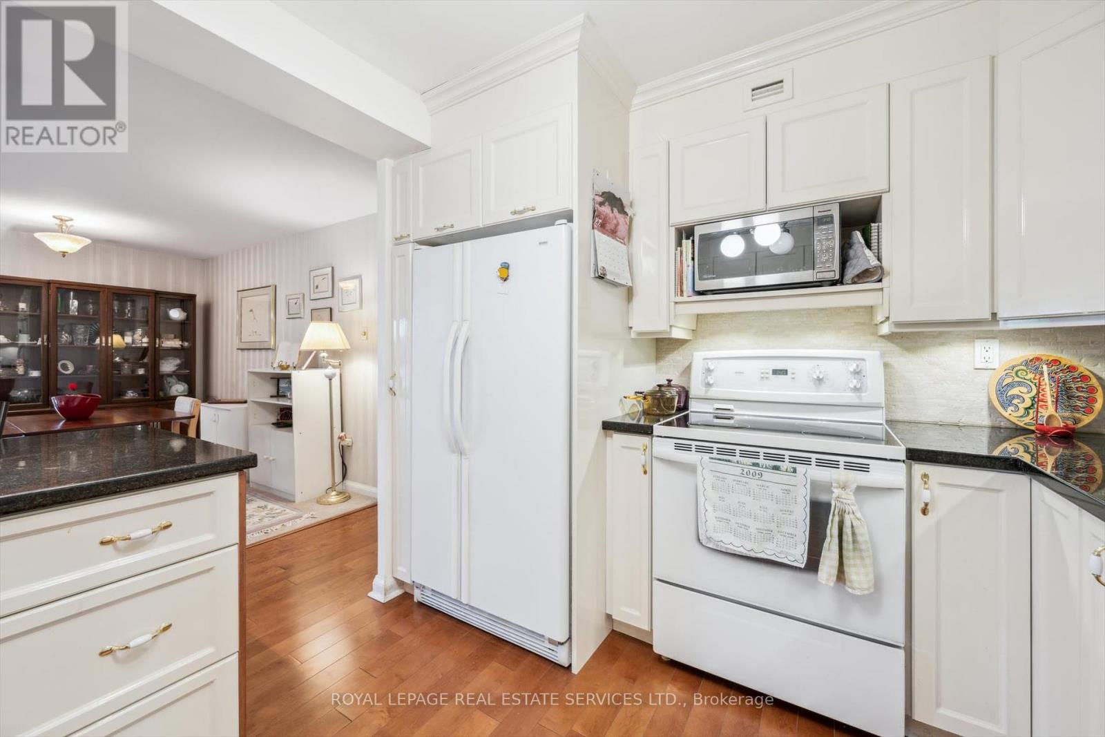 THE FAIRWAYS - WHERE LIFESTYLE MEETS LOCATION! Discover resort-style living in the sought-after Lakeview community. Set on over five acres bordered by Lakeview Golf Course and the prestigious Toronto Golf Club, this gated condominium community offers unmatched amenities and convenience. Fairways residents enjoy concierge service, party and meeting rooms, garden and music lounges, card and gallery rooms, a fully equipped gym with cardio and weight areas, change rooms with saunas, billiards and dart rooms, a library, woodshop, and car wash. Outdoors, indulge in the heated pool with expansive patio, BBQ area, tennis/pickleball courts, putting green, shuffleboard courts, pond, fountain, and beautifully landscaped grounds. McMaster House provides private function space, while ample visitor parking ensures guest convenience. This spacious two bedroom, two bathroom suite has been freshly painted throughout and offers nearly 1,500 square feet of exceptionally well-maintained living space. Designed for both everyday comfort and entertaining, the open concept living and dining areas are filled with natural light from oversized windows. The updated kitchen features white cabinetry with display cupboards, granite countertops, designer backsplash, breakfast bar, and engineered hardwood flooring. The large primary bedroom includes a four-piece ensuite, while the second bedroom is ideally positioned across from a three-piece bathroom with in-suite laundry. For peace of mind, the monthly condominium fee of $1,232.18 covers building insurance, common elements, heat, hydro, central air conditioning, water, cable TV, and parking. Ideally located close to major highways, GO Transit, Pearson Airport, Sherway Gardens, Dixie Outlet Mall, Lake Ontario, and everyday conveniences, Fairways offers more than just a home - it delivers a lifestyle defined by leisure, comfort, and connection. (id:51158)