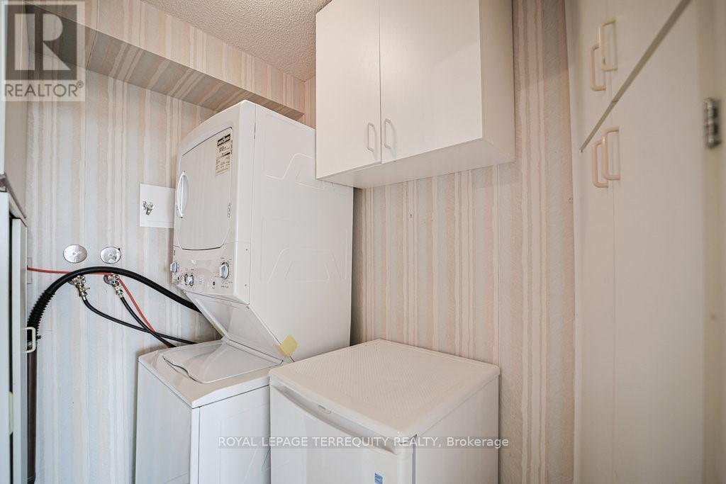 Large north-east facing corner unit with an abundance of natural light. 2 oversized bedrooms and 2 full washrooms. Prime bedroom has an ensuite and walk-in-closet. Two parking spaces and one locker. Full size laundry room. All appliances sold 'as-is where is'. Amenities include 24hr security at entrance to the property, outdoor pool, hot tub, sauna, tennis court, table tennis, squash and party room. Windows recently replaced. Special window assessment paid in full. Ample visitor parking. Heat, hydro, water and building insurance ALL included the maintenance fee. Close to the Promenade Mall, theatre, Smart Centre, Walmart, Restaurants, LCBO and public transit. (id:51158)