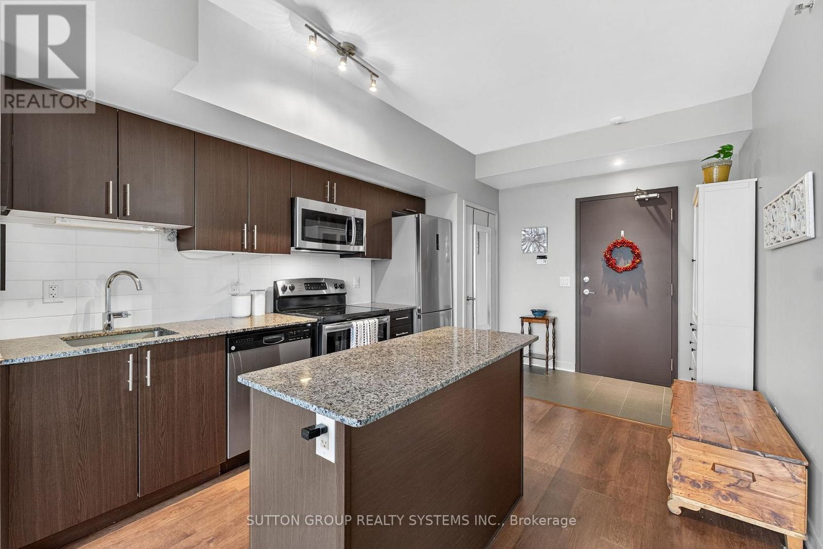 $626.16 MonthlyStunning 1-bedroom suite in a highly desirable, luxurious boutique building in Mimico's most sought-after waterfront pocket. Steps to Lake Ontario, marina, parks, and miles of waterfront trails. Bright, spacious layout with soaring ceilings, large windows, and an open-concept kitchen with center island, granite counters, S/S appliances, and ample storage. Private balcony with over 600 sq. ft. total living space (incl. balcony). Includes 1 parking, 1 locker, and 1 dedicated bike storage. Premium amenities include a lake-view rooftop patio with BBQs, gym, lounge, and games room. TTC & streetcar at your doorstep; short walk to Mimico GO, Blue Line Transit, cafés, shops, and restaurants. Steps to President's Choice grocery store. Minutes to the Gardiner, QEW, downtown, and Pearson Airport. (id:51158)