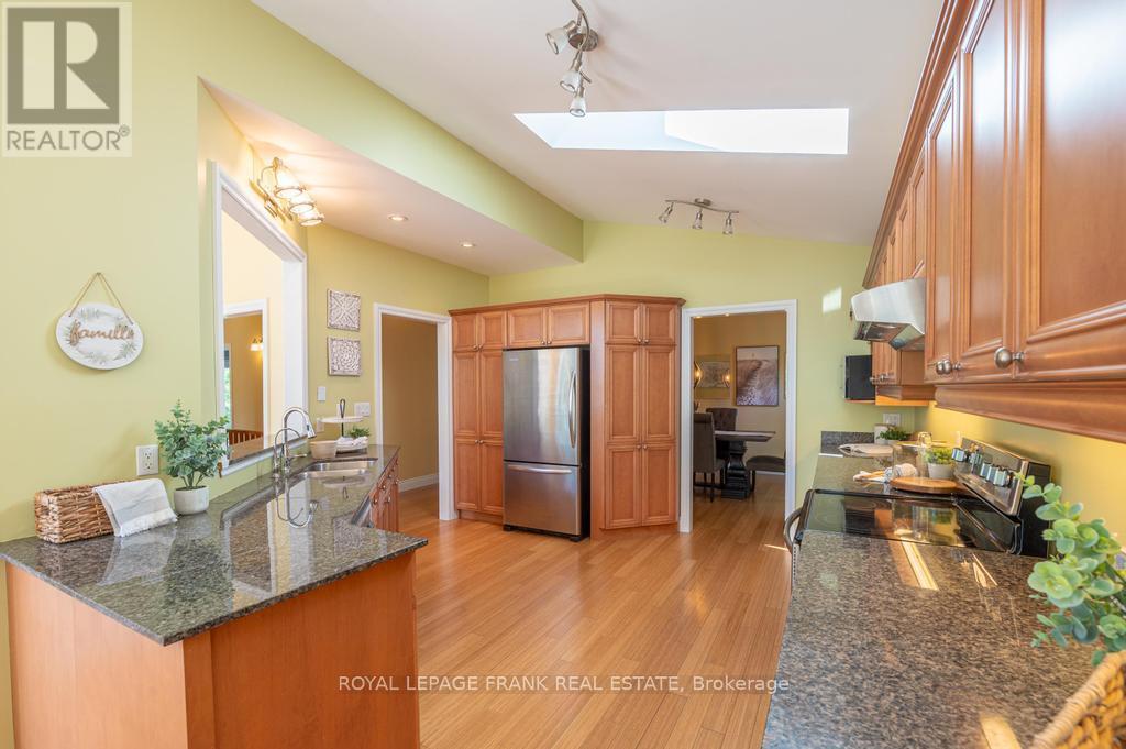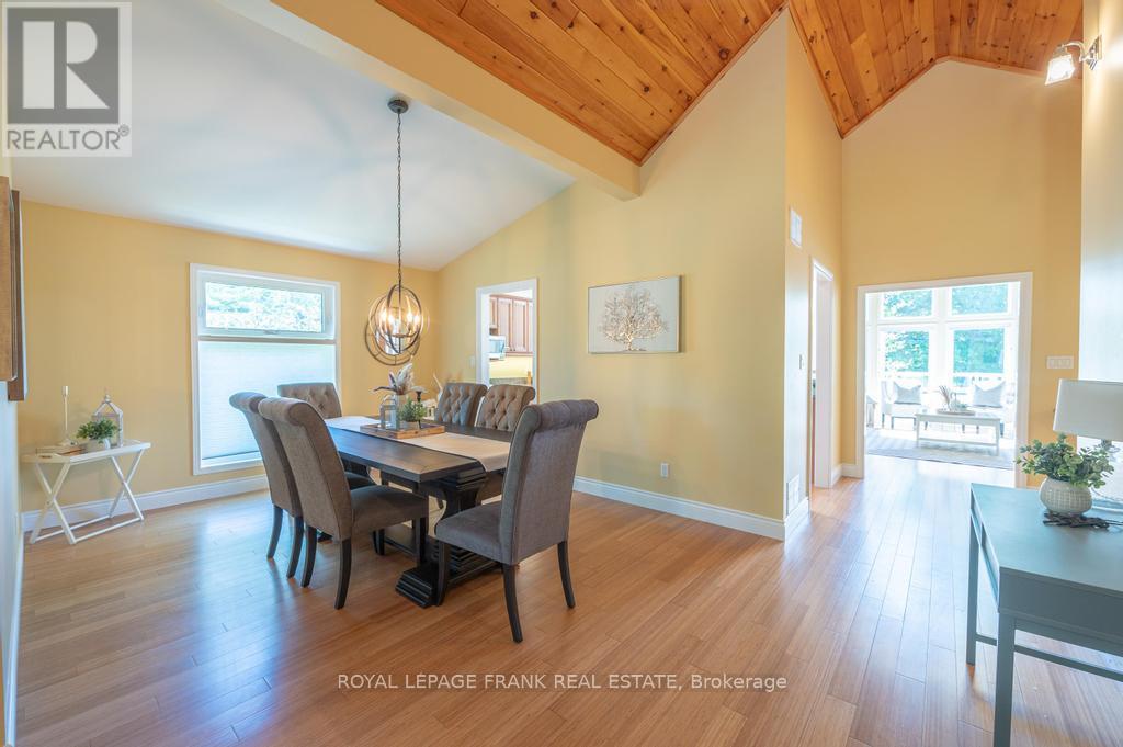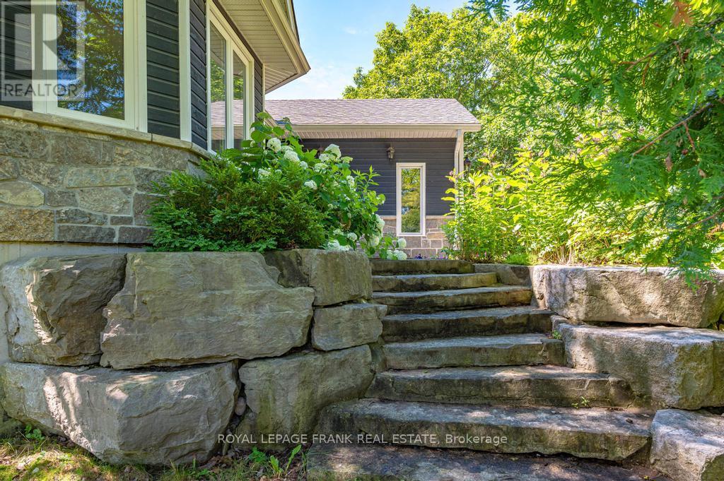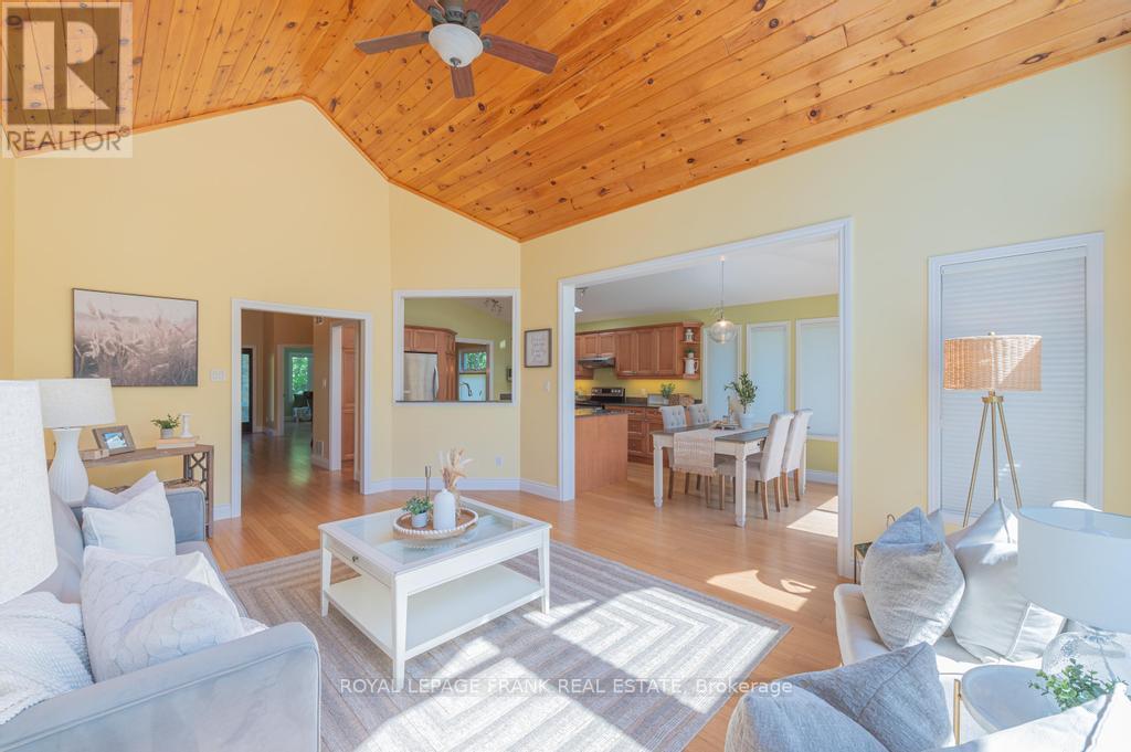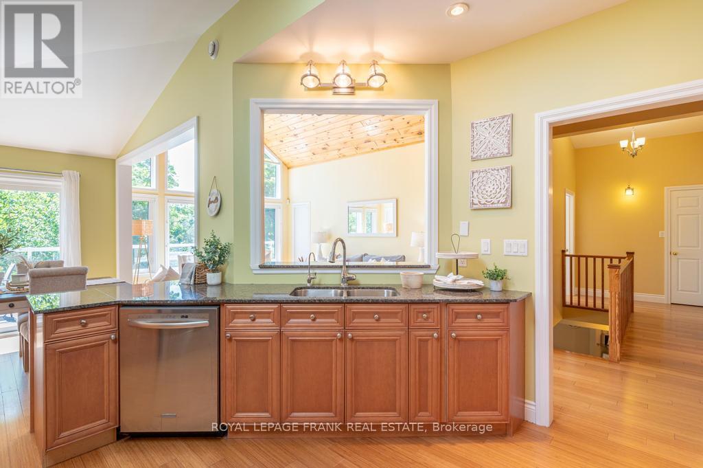 Located on beautiful Pigeon Lake between the towns of Bobcaygeon and Buckhorn. This lovely bungalow features high ceilings, large bright rooms, custom kitchen, a formal dining area and approximately 3,000 square feet of finished space. The 5 large bedrooms and 3 full baths are perfect for visiting family and friends. The primary suite features a large ensuite, and a walkout to a lakeside deck. The lower level is bright with a big family room including a walkout to the lake and it has in-law suite potential. The property is private and gently sloping to the waters edge and the dock area. The oversized double car garage has room for a workshop and lots of room to store the boat for the winter. Located in a quiet area just minutes from the main road. Pigeon is part of a 5-lake chain of lock free boating. Enjoy endless boating, swimming and great fishing on the Historic Trent Severn Waterway. (id:51158)
