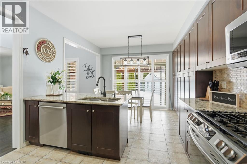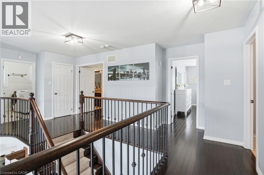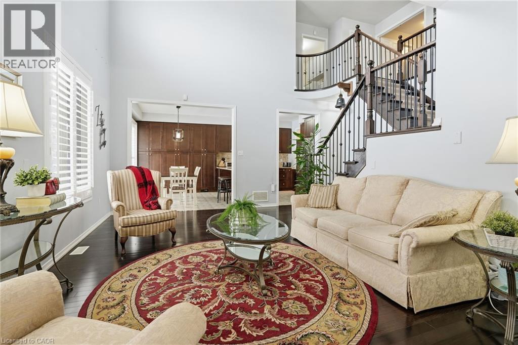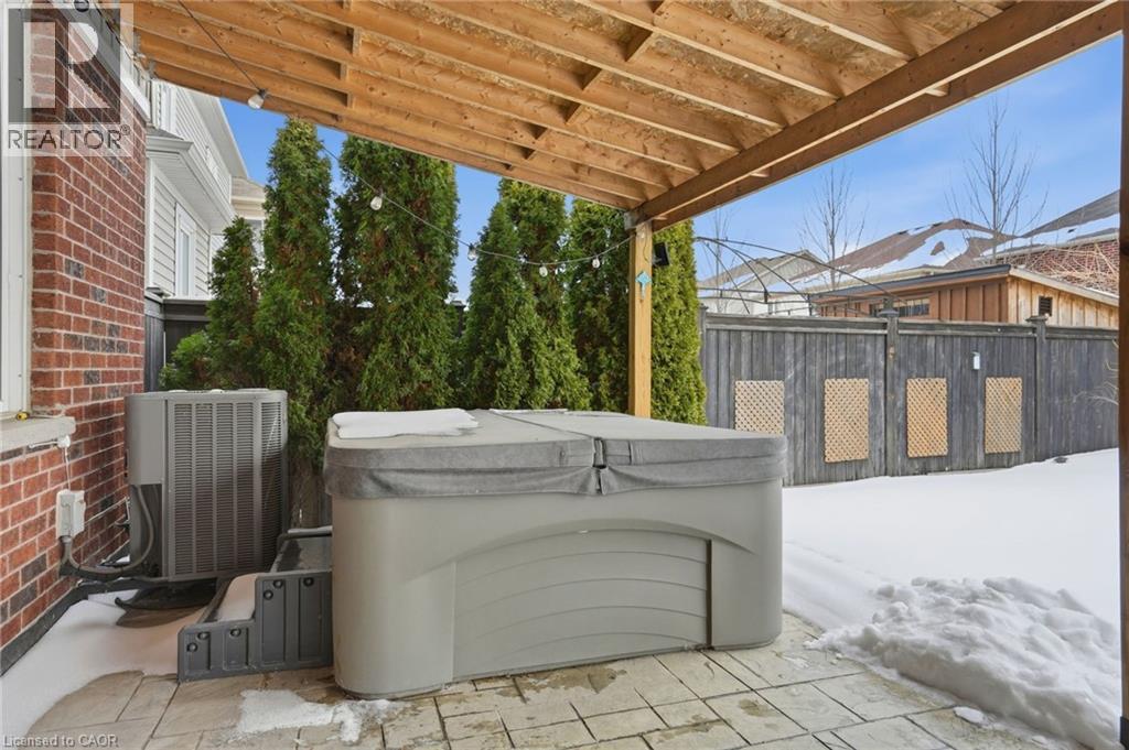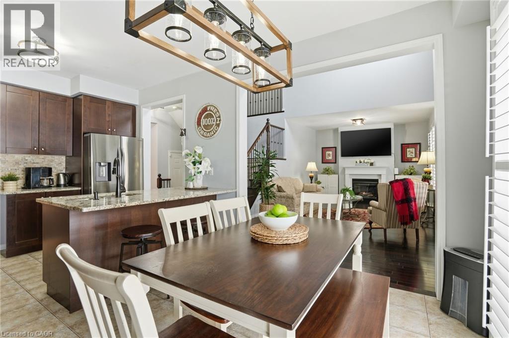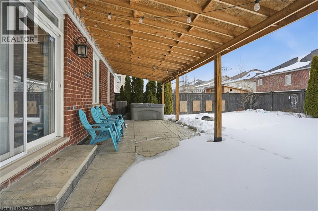 Step into luxury at 63 Fowler Drive, a stunning 2-storey executive home offering a true 2,881 square feet of refined living space above grade. Set on a premium lot in a family-first community, this home impresses immediately with a stone-accented façade and stamped concrete porch. Inside, the layout is breathtaking, featuring soaring ceilings open to the upper level in the living room, gleaming hardwood floors, and a main-floor private office perfect for working from home. The heart of the home is the upgraded, oversized chef's kitchen featuring granite counters, a gas stove, and an extended pantry. It flows seamlessly to your private backyard oasis-an entertainer's dream featuring a hot tub, built-in fire pit, and a custom stamped concrete patio with an extended awning for all-weather enjoyment. Upstairs offers bedroom-level laundry and four spacious bedrooms, including a primary retreat with a walk-in closet and spa-like 5-piece ensuite. Newly finished (2023) basement, currently set up with a cozy rec room, electric fireplace, and games area, it also features a large, unfinished storage wing designed to hide clutter. Located minutes from top-rated schools, the Binbrook Fairgrounds, and conservation trails. (id:51158)