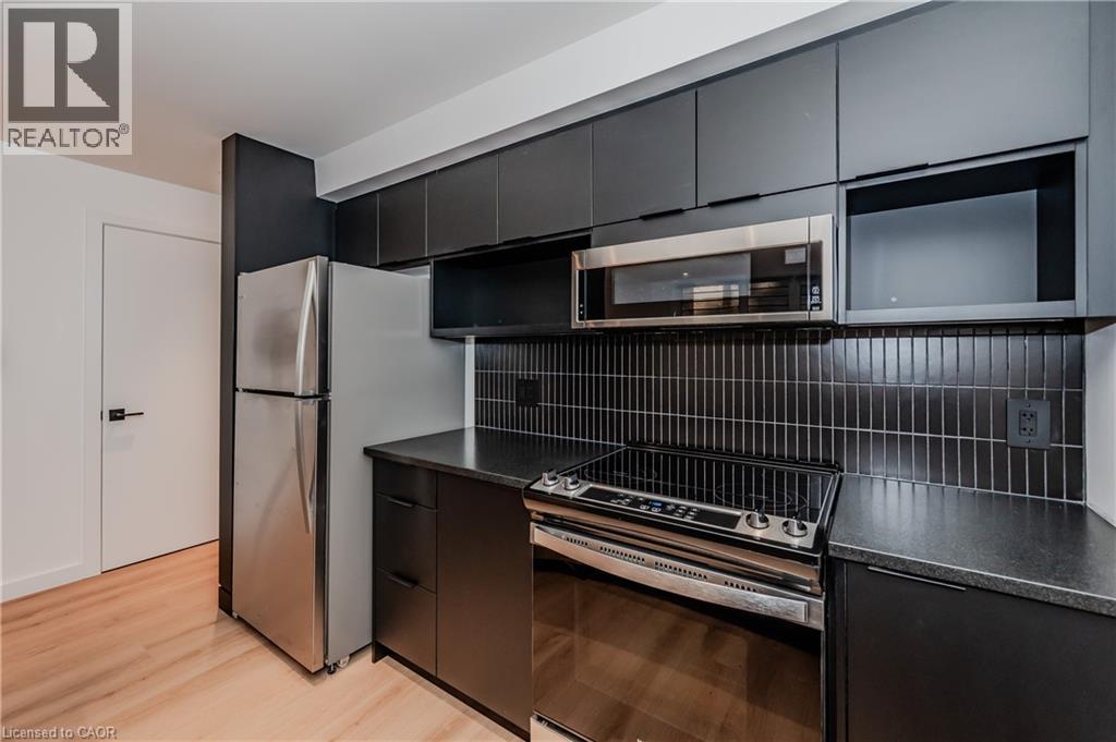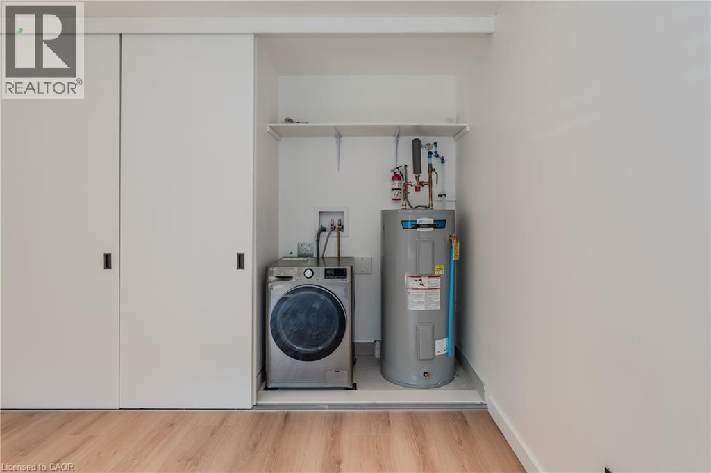 THE ONE that stands out from the rest! Welcome to The Spurline Unit at 63 Union St E, Waterloo — a bright, beautifully designed 1-bedroom, 1-bathroom unit offering the perfect blend of urban sophistication and boutique living. Not into condo life but looking for an upscale rental in Uptown Waterloo? This premium unit delivers with high-end finishes, including wide-plank luxury vinyl flooring, quartz countertops, and a modern, cohesive aesthetic throughout. Built with commercial-grade materials, this property redefines boutique-style living with unmatched character and quality. Enjoy two levels of living space: the lower level features an open-concept layout with a sleek, black-on-black kitchen, stainless steel appliances (including a dishwasher), and a spacious island with seating — the perfect place to cook, dine, and entertain. The inviting living area is filled with natural light and exudes warmth and comfort. The main level offers a studio-style bedroom with an oversized closet, in-suite washer/dryer combo, and a 3-piece bathroom. The bathroom boasts a large vanity with ample storage and a glass-enclosed tiled shower. Additional highlights include a private entrance, individual hydro meter, dedicated heating and cooling, custom roller shades, and your own mailbox — all designed for independent, carefree living. Need parking? Off-site surface parking is available at a nearby lot for an additional fee. Without or without a vehicle you’ll thrive in a highly walkable neighbourhood steps from public transit, the Iron Horse Trail, Midtown Hospital, and Uptown Waterloo’s vibrant amenities — from dining and shopping to boutique gyms and wellness services. Live in the heart of it all — 63 Union St E is where modern design meets the ultimate urban lifestyle. (id:51158)