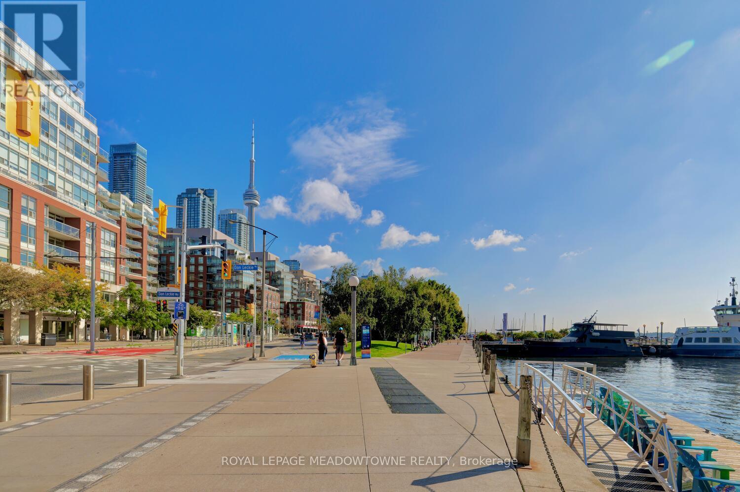 $654.20 MonthlyWelcome to this beautifully renovated 1 + Den, 1 Bath unit located on the highly sought-after Queens Quay. This thoughtfully updated home boasts a modern kitchen, sleek bathroom, brand new flooring and fresh paint - all completed within the last 5 years. The kitchen is a chef's dream, featuring stainless steel appliances, quartz countertops, and an under-mount-sink. The luxurious bathroom offers a spa-like experience with a glass rainfall shower head and wall-mounted spray jets for ultimate relaxation. This 652 sq ft unit has been designed to maximize space and functionality, with two walk-outs leading to a spacious deck where you can enjoy stunning harbour views. Whether it's sipping your morning coffee or winding down after a long day, the deck is the perfect spot to take in the beauty of the waterfront. Building amenities: 24 hour concierge service for your convenience. Recently renovated equipped gym, Yoga room, Sauna and shower rooms for relaxation. This condo is ideally situated across from City School (Grades 9-12) and is just a 5 minute walk from Billy Bishop International Airport - making it an ideal spot for frequent travelers. Take a leisurely stroll along Queens Quay, or hop on the nearby TC and immerse yourself in the lively atmosphere, with countless events hosted by the City of Toronto and local vendors. Shopping, dining and entertainment options are all within walking distance, making this an unbeatable location for those who want t experience the best of urban living. Don't miss out on the opportunity to live in this beautifully renovated unit with all the amenities and a location that can't be. (id:51158)