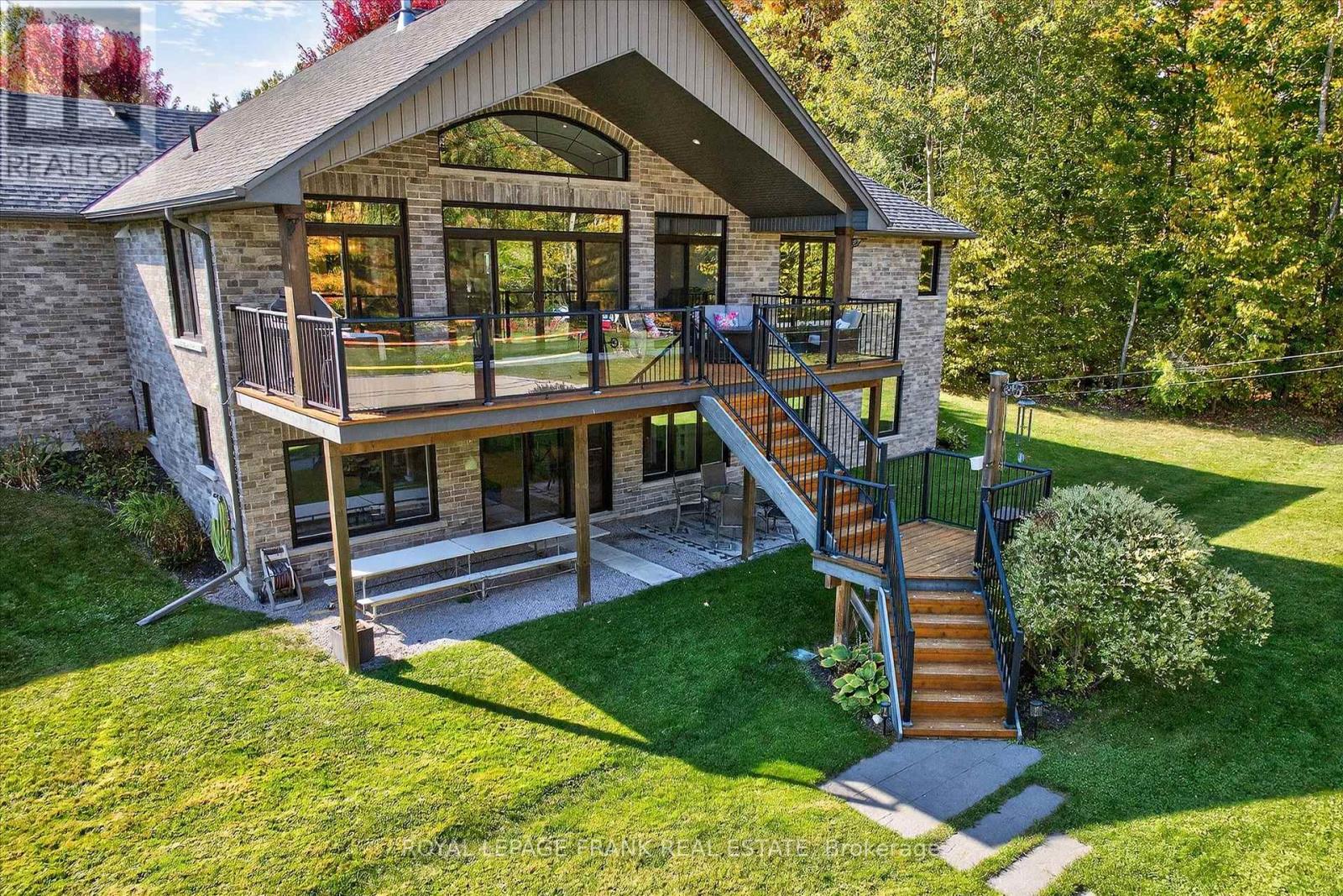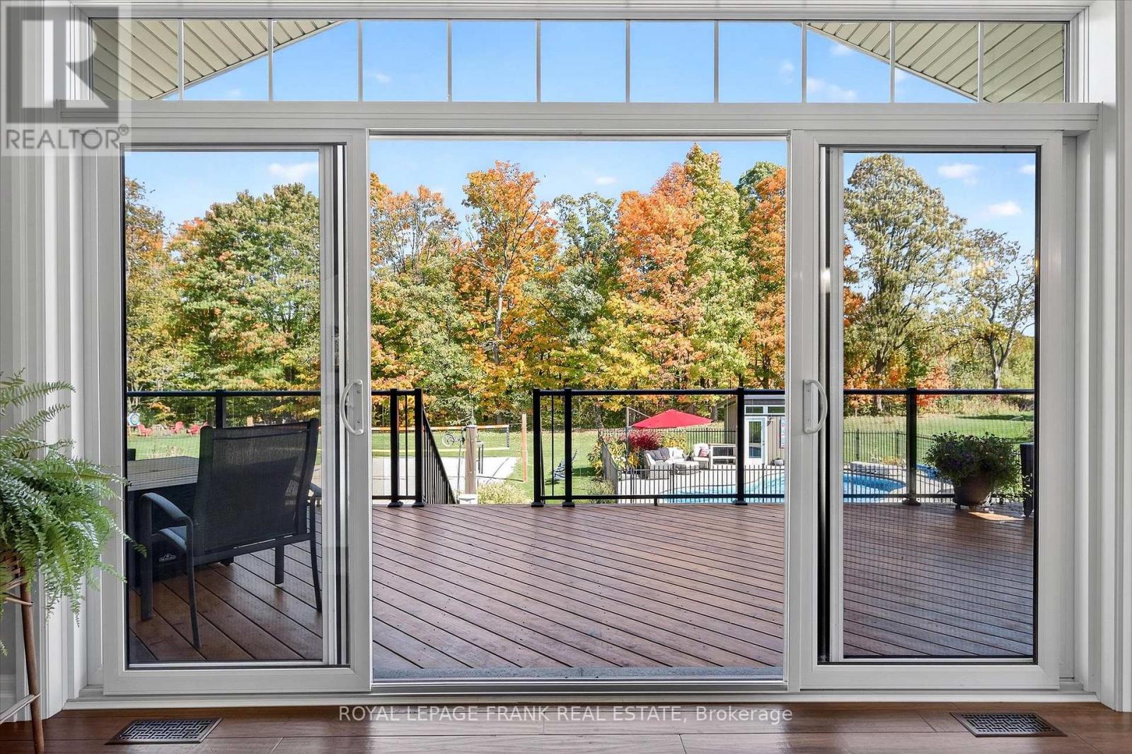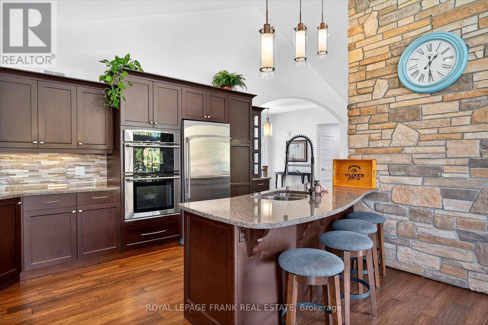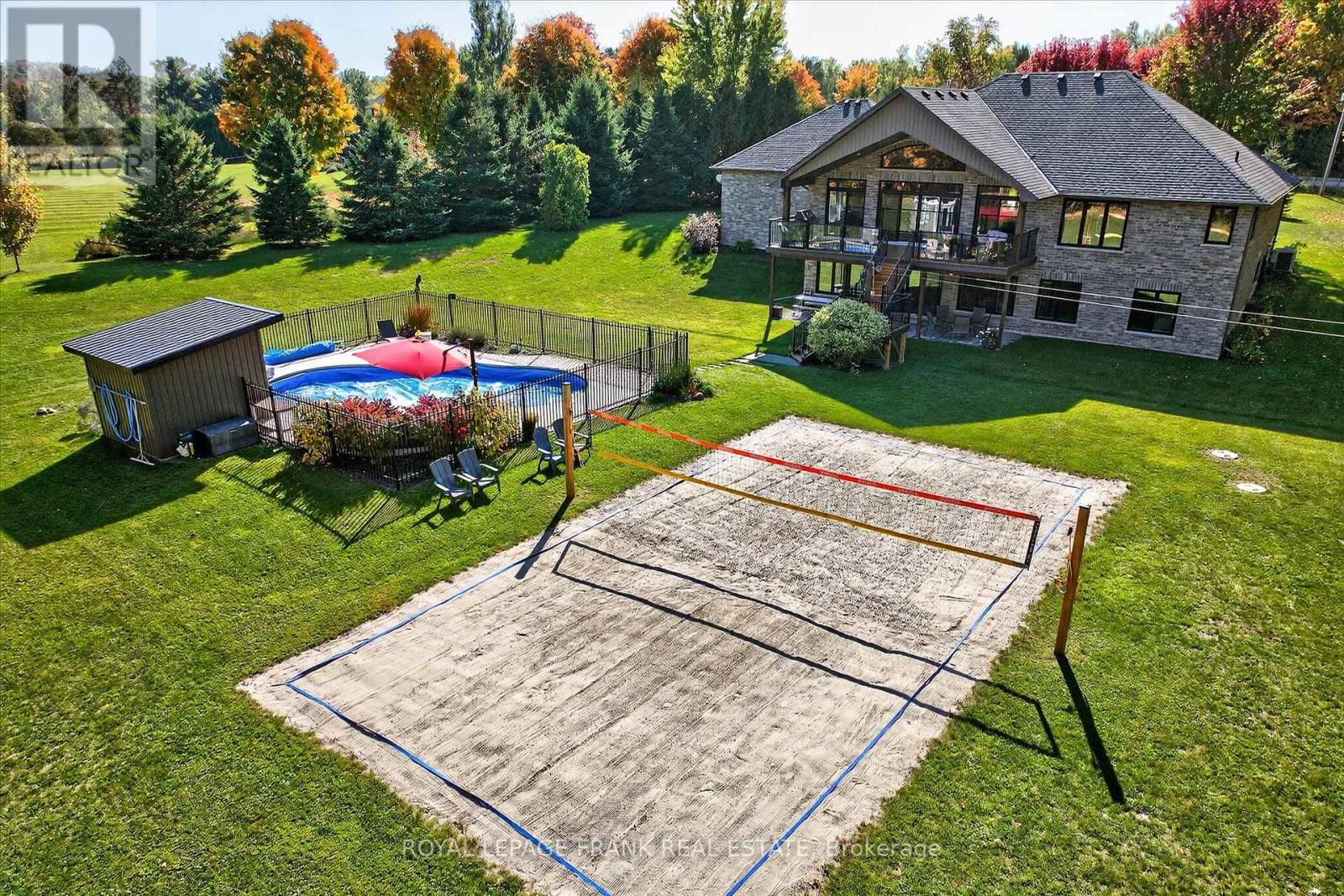 A beautiful custom-built 5-bedroom, 3-bath home with pool, 3-car garage, and private setting. Built in 2013 by Prinston Homes, this stunning residence blends quality craftsmanship with modern comfort. The kitchen showcases custom Cherry cabinetry by Cabinetree, quartz counter tops, and a bright, functional layout. The great room impresses with a 14 ft. vaulted ceiling, floor-to-ceiling stone gas fireplace, and large windows overlooking the landscaped property. The primary suite features a spa-like en-suite with heated floors, soaker tub, large glass shower, and double sinks. The walkout basement offers 9 ft. ceilings, two large bedrooms, a dedicated office, spacious rec room, and heated floors in the lower bath. Enjoy outdoor living on the covered cedar deck overlooking the 16x 34 heated saltwater pool (installed 2019 by Waterworld Pools) and beach volleyball court surrounded by perennial gardens. Additional highlights: oversized 3-car garage with 50 amp circuit (EV ready), owned tankless water heater, buried propane tank (rented from Avenir Energy, ~$100/year), forced air propane furnace, heat pump/AC, HRV, dug well with full water treatment, PEX plumbing, sump pump, 200 amp panel with 30 amp Generlink, fibre internet (Nexicom), invisible dog fence, propane hookup for future BBQ or fireplace, and a stream feeding into Baxter Creek. Septic pumped July 2025.Fantastic location1 min to Millbrook Valley Trails & MNR ponds, 4 min to downtown Millbrook, 5 min to Millbrook PS (JK6), 8 min to Ganaraska Forest, 6 min to Hwy 115, 18 min to Hwy 407, and 19 min to Peterborough. A rare combination of custom quality, privacy, and recreation in a beautiful natural setting. (id:51158)