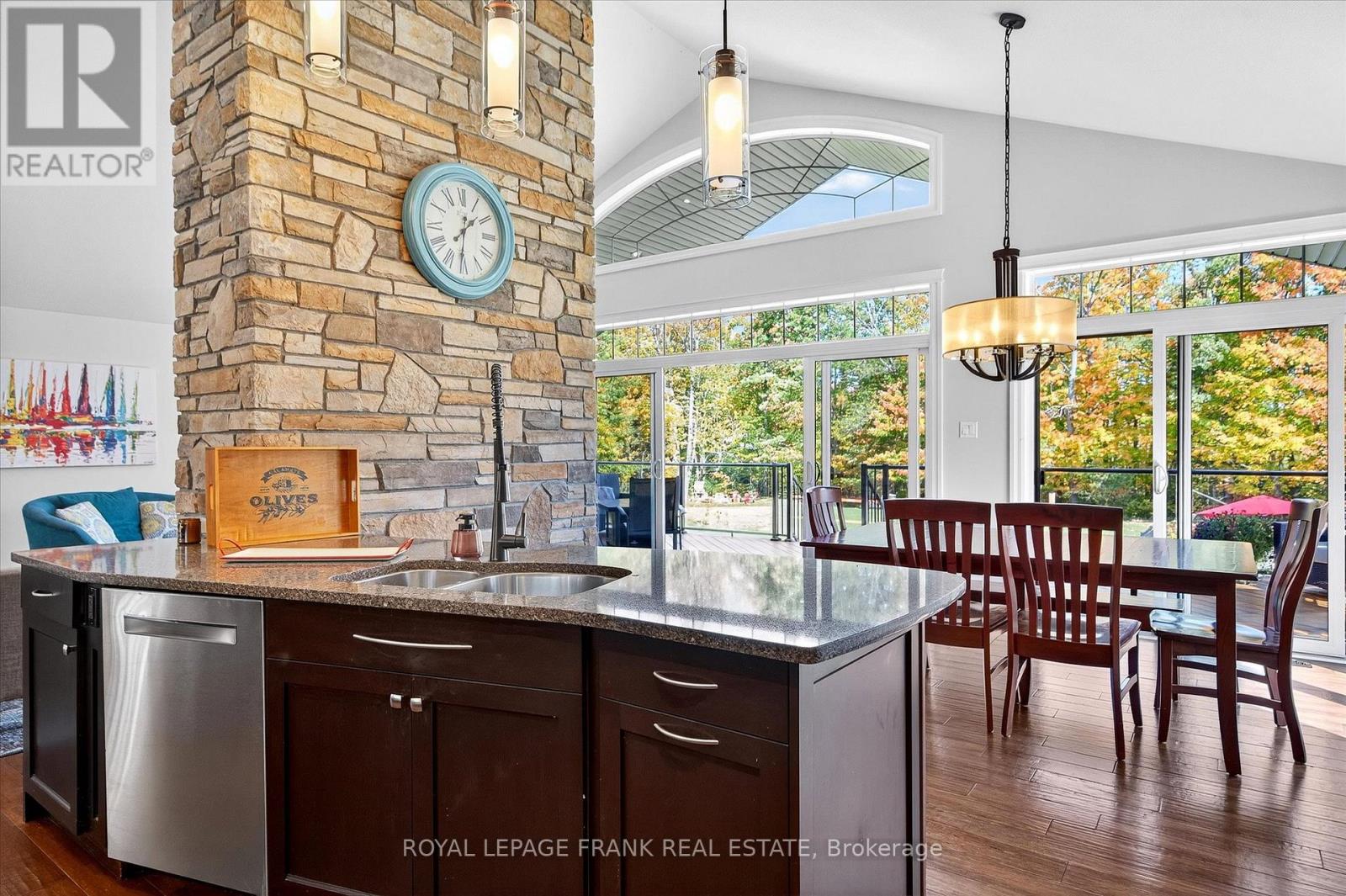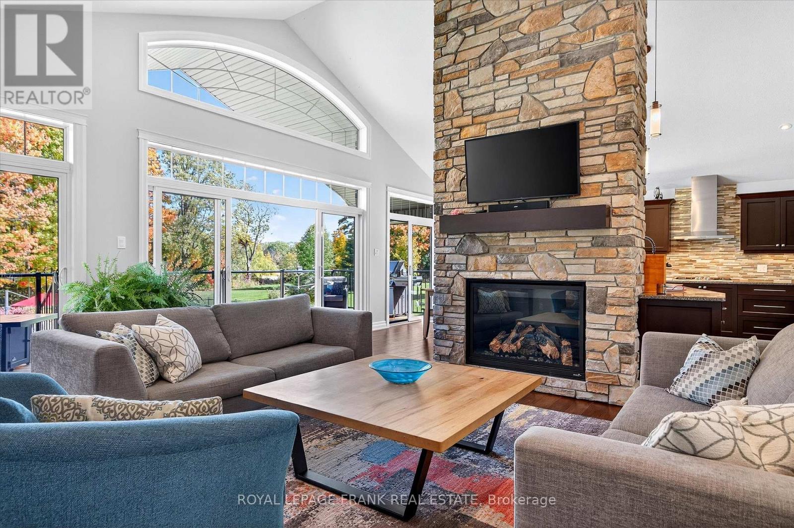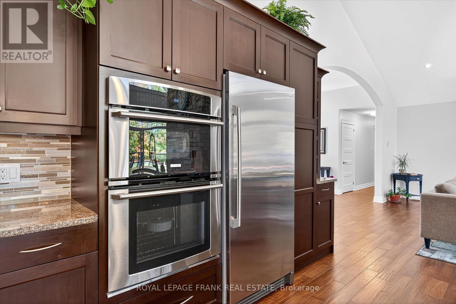 A beautiful custom-built 5-bedroom, 3-bath home with pool, 3-car garage, and private setting. Built in 2013 by Prinston Homes, this stunning residence blends quality craftsmanship with modern comfort. The kitchen showcases custom Cherry cabinetry by Cabinetree, quartz counter tops, and a bright, functional layout. The great room impresses with a 14 ft. vaulted ceiling, floor-to-ceiling stone gas fireplace, and large windows overlooking the landscaped property. The primary suite features a spa-like en-suite with heated floors, soaker tub, large glass shower, and double sinks. The walkout basement offers 9 ft. ceilings, two large bedrooms, a dedicated office, spacious rec room, and heated floors in the lower bath. Enjoy outdoor living on the covered cedar deck overlooking the 16x 34 heated saltwater pool (installed 2019 by Waterworld Pools) and beach volleyball court surrounded by perennial gardens. Additional highlights: oversized 3-car garage with 50 amp circuit (EV ready), owned tankless water heater, buried propane tank (rented from Avenir Energy, ~$100/year), forced air propane furnace, heat pump/AC, HRV, dug well with full water treatment, PEX plumbing, sump pump, 200 amp panel with 30 amp Generlink, fibre internet (Nexicom), invisible dog fence, propane hookup for future BBQ or fireplace, and a stream feeding into Baxter Creek. Septic pumped July 2025.Fantastic location1 min to Millbrook Valley Trails & MNR ponds, 4 min to downtown Millbrook, 5 min to Millbrook PS (JK6), 8 min to Ganaraska Forest, 6 min to Hwy 115, 18 min to Hwy 407, and 19 min to Peterborough. A rare combination of custom quality, privacy, and recreation in a beautiful natural setting. (id:51158)