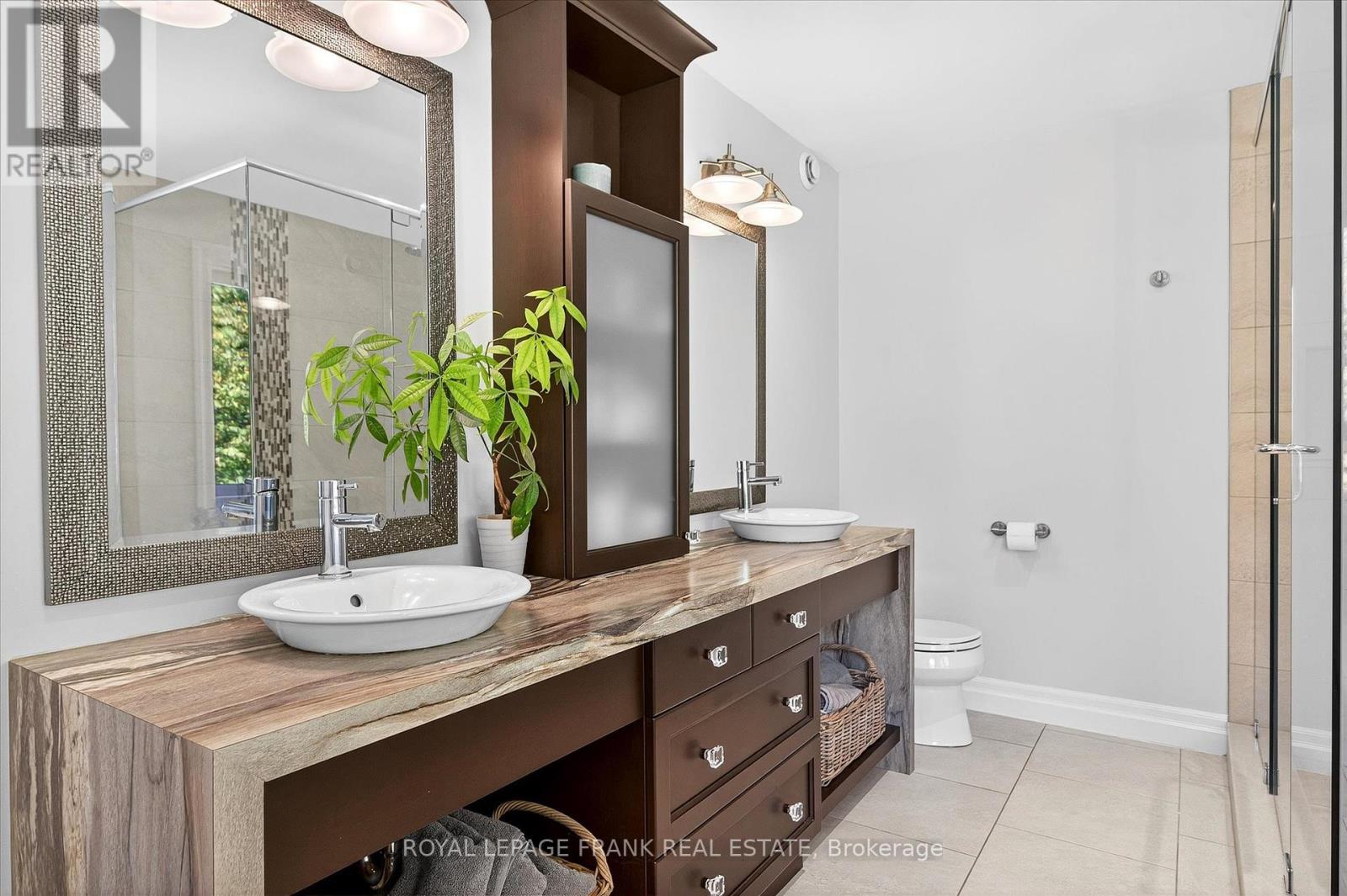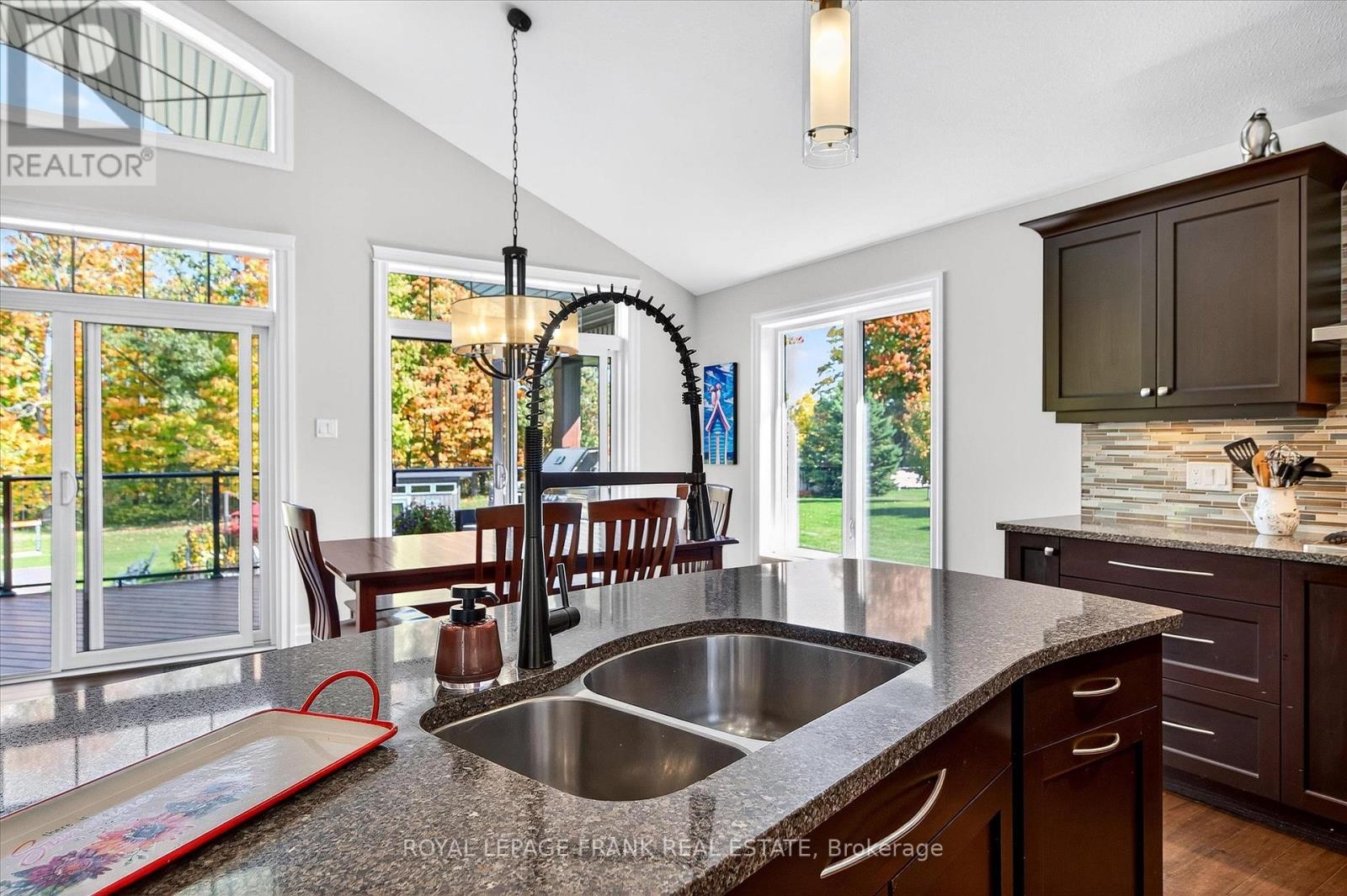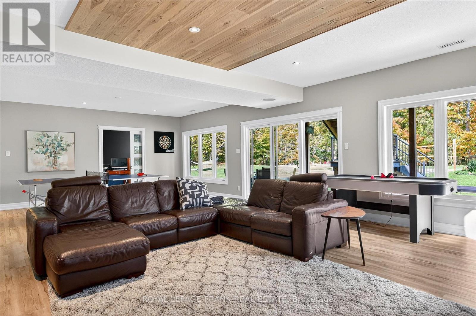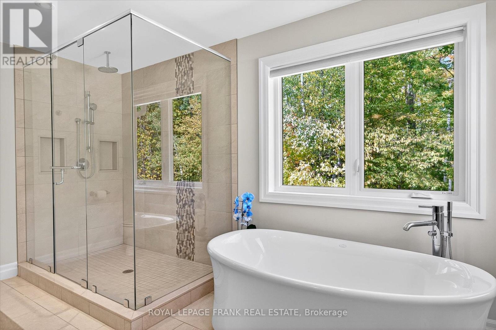 A beautiful custom-built 5-bedroom, 3-bath home with pool, 3-car garage, and private setting. Built in 2013 by Prinston Homes, this stunning residence blends quality craftsmanship with modern comfort. The kitchen showcases custom Cherry cabinetry by Cabinetree, quartz counter tops, and a bright, functional layout. The great room impresses with a 14 ft. vaulted ceiling, floor-to-ceiling stone gas fireplace, and large windows overlooking the landscaped property. The primary suite features a spa-like en-suite with heated floors, soaker tub, large glass shower, and double sinks. The walkout basement offers 9 ft. ceilings, two large bedrooms, a dedicated office, spacious rec room, and heated floors in the lower bath. Enjoy outdoor living on the covered cedar deck overlooking the 16x 34 heated saltwater pool (installed 2019 by Waterworld Pools) and beach volleyball court surrounded by perennial gardens. Additional highlights: oversized 3-car garage with 50 amp circuit (EV ready), owned tankless water heater, buried propane tank (rented from Avenir Energy, ~$100/year), forced air propane furnace, heat pump/AC, HRV, dug well with full water treatment, PEX plumbing, sump pump, 200 amp panel with 30 amp Generlink, fibre internet (Nexicom), invisible dog fence, propane hookup for future BBQ or fireplace, and a stream feeding into Baxter Creek. Septic pumped July 2025.Fantastic location1 min to Millbrook Valley Trails & MNR ponds, 4 min to downtown Millbrook, 5 min to Millbrook PS (JK6), 8 min to Ganaraska Forest, 6 min to Hwy 115, 18 min to Hwy 407, and 19 min to Peterborough. A rare combination of custom quality, privacy, and recreation in a beautiful natural setting. (id:51158)