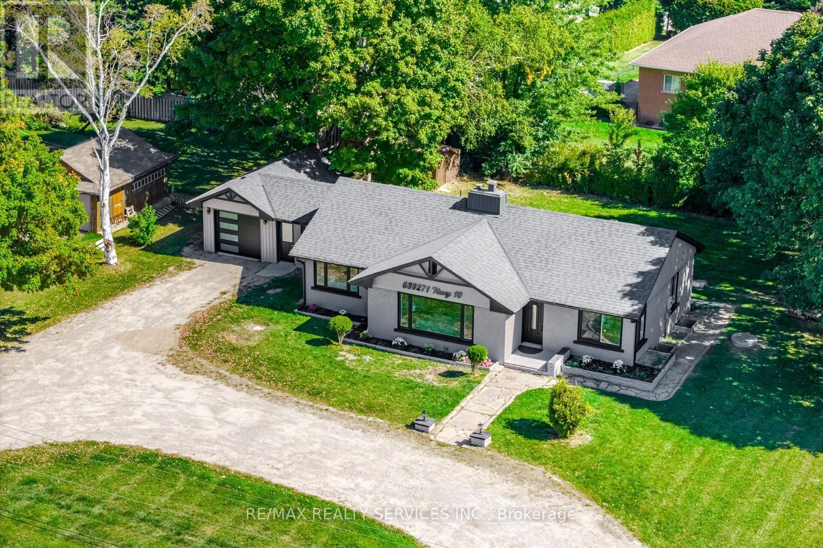 633271 Hwy 10, Mono Fully Renovated Brick Bungalow! Welcome to this beautifully updated Bungalow on a mature lot with great curb appeal and easy access. $$$ spent on top-to-bottom renovations including upgraded windows, roof, flooring, kitchen (2020), new two-stage high-efficiency furnace, rough-in for A/C, new sewage pump, new garage door & opener, new hot water tank (2024), and brand-new appliances. Enjoy the freshly painted full house, new main bath, main floor laundry plus an additional laundry room in the basement, new basement flooring and two seperate basements with baths and kitchens offering excellent rental potential, ideal for extended families or investors. Circular driveway with ample parking adds to the convenience. Bonus feature: dedicated office space with it's own private entrance, perfect for professionals or a home-based business. (id:51158)