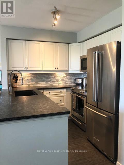 SEASONAL SKI RENTAL -- Available December 1, 2025 to April 15, 2026 (Dates Flexible). Welcome to this bright and beautifully maintained top-floor condo in the highly desirable waterfront community of Lighthouse Point. This fully furnished, two-bedroom, two-bathroom unit offers a warm and inviting space to enjoy the winter season in Collingwood. Freshly painted and thoughtfully updated, the condo features an open-concept kitchen, dining, and living area with walk-out to a oversized balcony equipped with a gas BBQ. From this elevated vantage point, enjoy unobstructed views of Georgian Bay, ski hills, and the areas famous sunsets, all overlooking a peaceful conservation area.The modern kitchen has been renovated with granite countertops, a glass tile backsplash, and stainless steel appliances, offering both style and functionality. The primary bedroom features a queen bed and a renovated private ensuite, while the second bedroom and full guest bath provide comfort and flexibility for family or guests. Lighthouse Point offers a true resort lifestyle with outstanding amenities, including an indoor saltwater pool, hot tubs, fitness centre, sauna, gym, games room, holiday parties/events and more. Take advantage of the scenic waterfront walking trails that wind through this quiet, well-maintained community. Located just a minutes away from Blue Mountain, Private ski clubs, downtown Collingwood, and local hiking and snowshoeing trails, this property is ideally situated for anyone looking to enjoy a full winter experience in Southern Georgian Bay. No smoking or vaping. No parties. A family pet may be considered. Secure your ski season rental now and spend the winter in one of Collingwood's most sought-after waterfront communities! (id:51158)