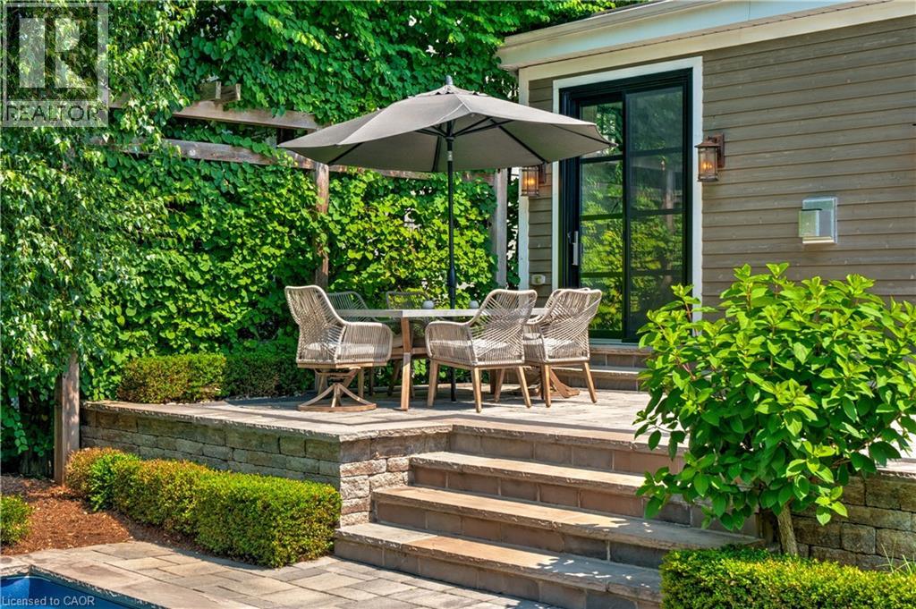 Curb appeal that captivates, & a backyard sanctuary you'll never want to leave! Welcome to one of Burlington's most sought-after neighborhoods, where this stunning 4+1 bedroom, 3.5 bathroom residence offers exceptional living space & an extraordinary outdoor retreat. Step inside to discover hand-scraped hardwood floors flowing through light-filled rooms, beginning w/ an elegant formal dining room ideal for memorable gatherings. The beautifully appointed kitchen showcases premium cabinetry, granite countertops, & an oversized island that serves as the heart of the home. It seamlessly connects to an expansive great room adorned w/ a coffered ceiling & striking stone fireplace, w/ dual walk-outs to your private oasis beyond. The thoughtfully designed main level includes a versatile bedroom/office, a convenient mudroom w/ laundry & garage access, & a sophisticated powder room. Ascend to the second floor where the luxurious primary suite awaits, complete w/ a generous walk-in closet & spa-inspired ensuite featuring a soaking tub w/ garden views & frameless glass shower. Two additional well-proportioned bedrooms & a full bathroom complete the upper level. The professionally finished lower level expands your living options w/ a spacious recreation room, cozy sitting area, fifth bedroom, & full bathroom, perfect for guests or multi-generational living. The backyard is where this home truly shines. Step into your own private paradise: a meticulously landscaped haven featuring mature specimen trees, vibrant perennial gardens, & dozens of flourishing hydrangeas. Elegant stonework winds through the space, while low-maintenance premium turf ensures year-round beauty. Entertain in style on the oversized porch w/ built-in BBQ station, take a dip in the sparkling in-ground pool (featuring newer liner, pump, & cartridge filter), relax by the soothing waterfall feature, or gather around the gas fireplace in the covered outdoor lounge. This is more than a home, it's a lifestyle. (id:51158)
