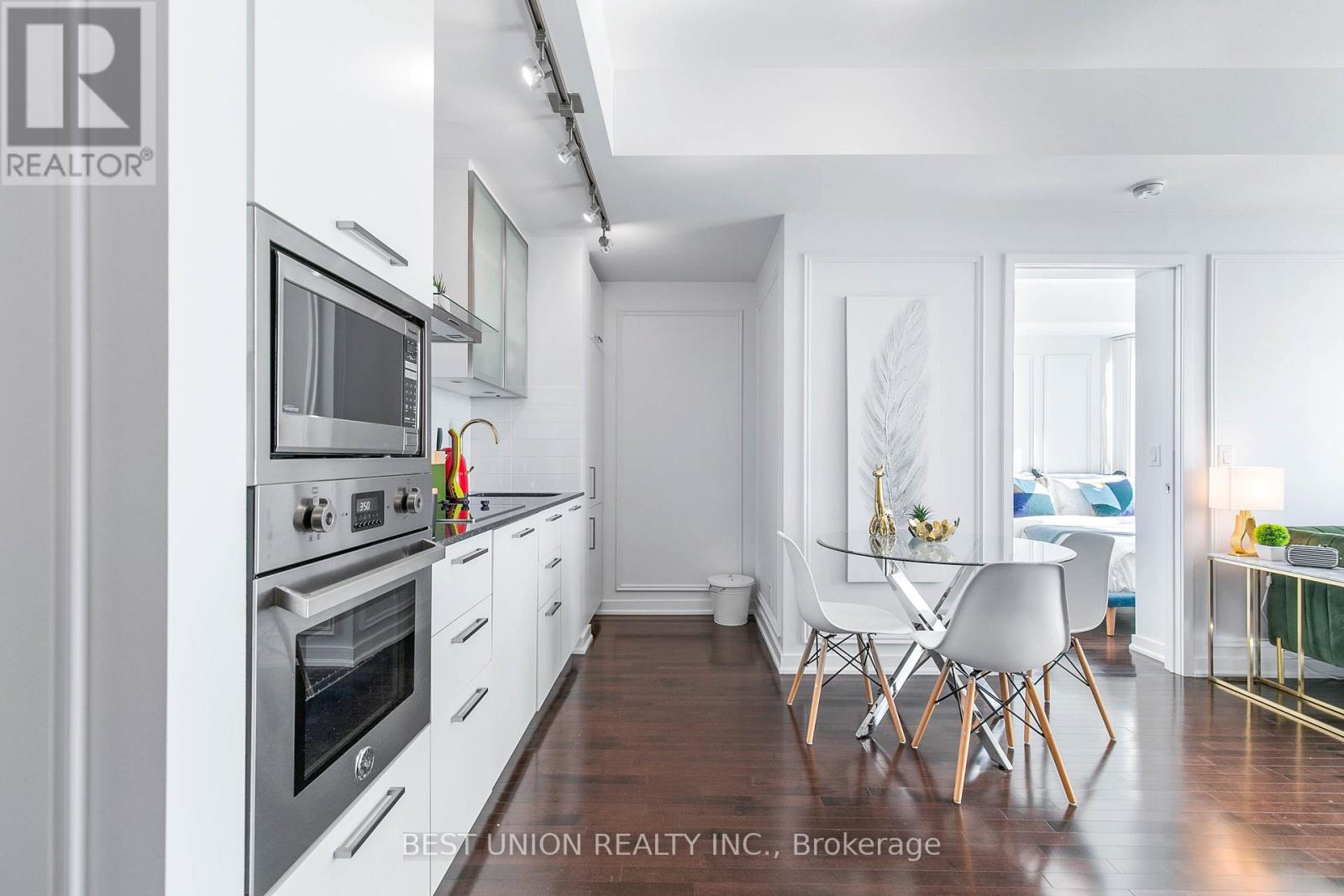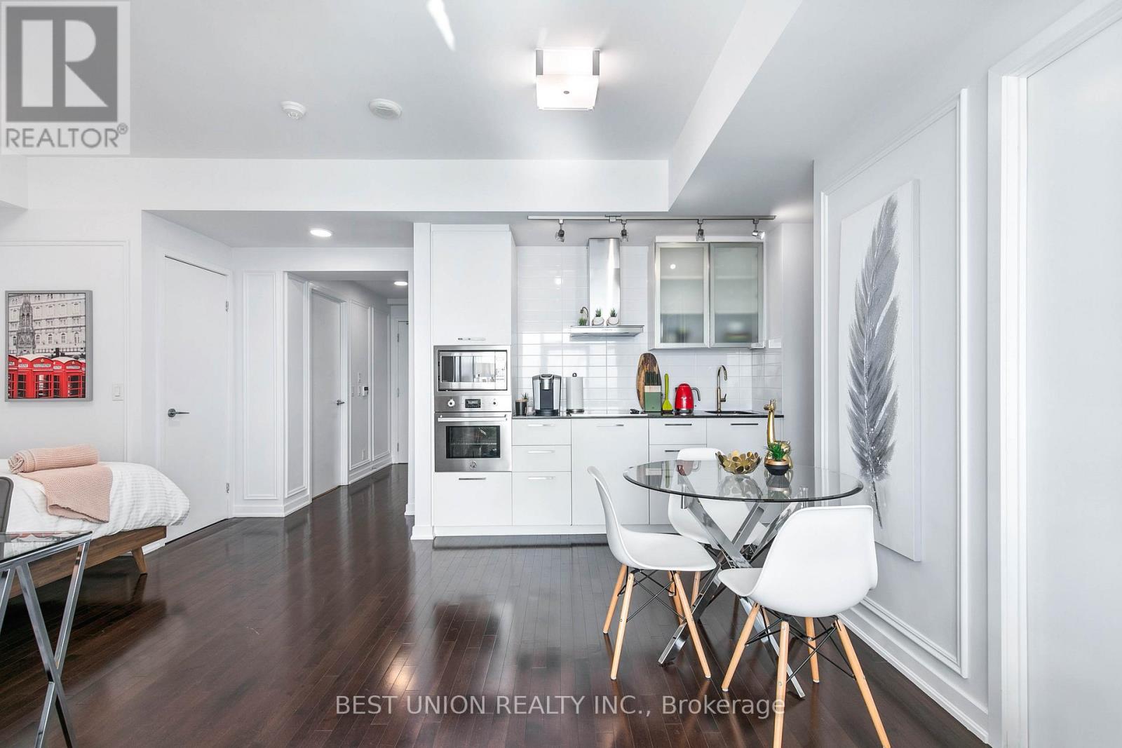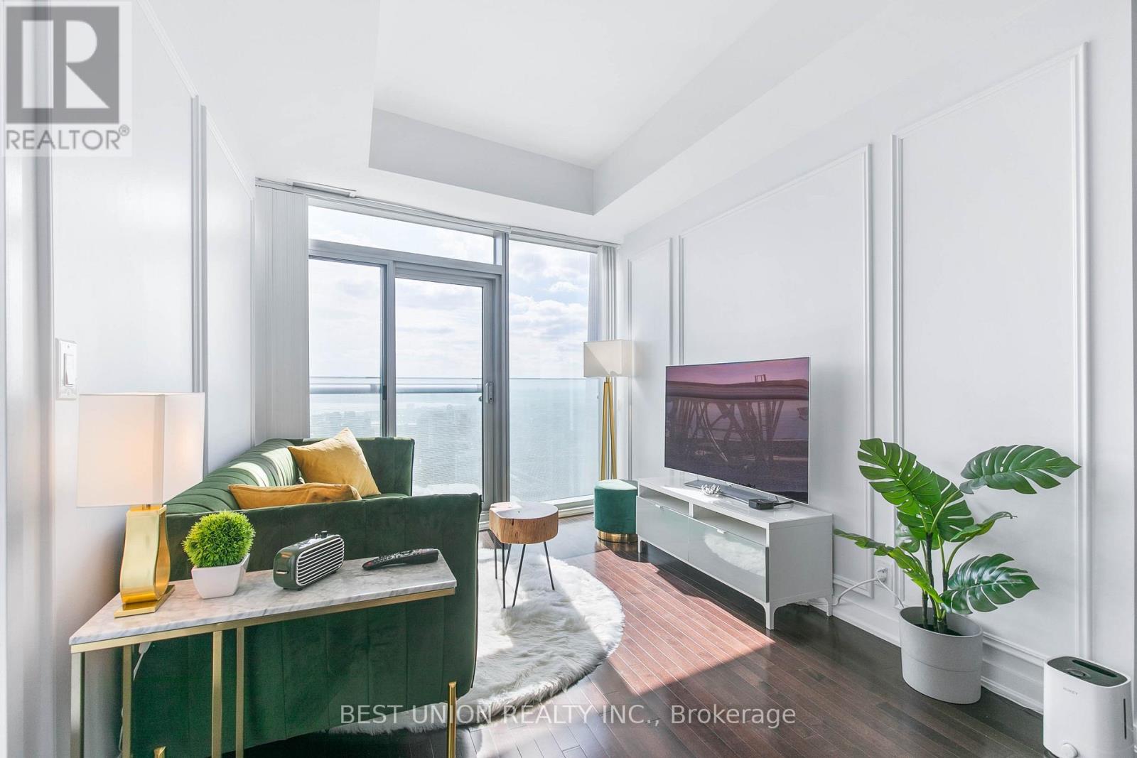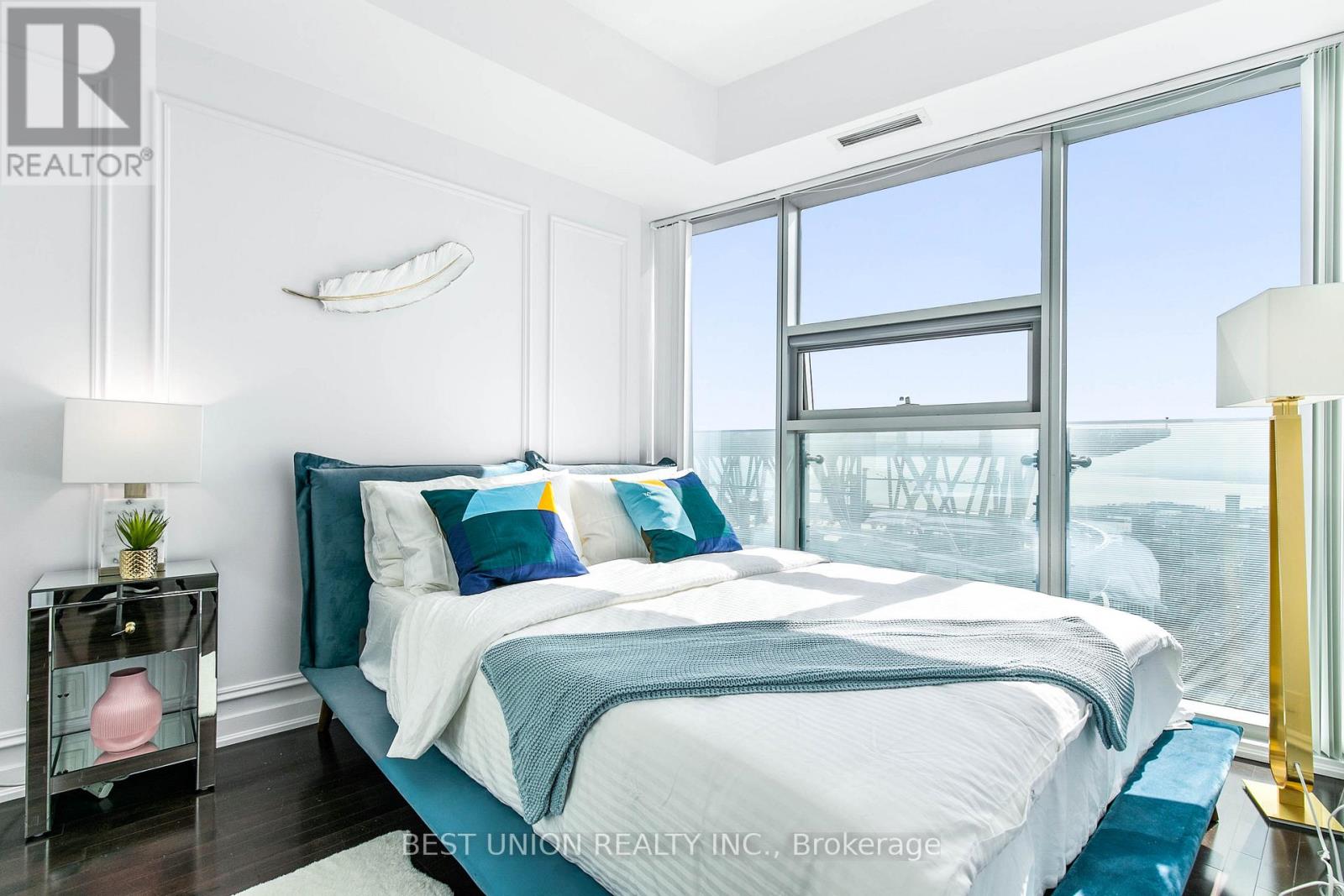 Welcome to ICE Condo 2 at York Centre, an inspired luxury residence combining urban living with waterfront tranquility. This rare 64th-floor unit offers 677 square feet of thoughtfully designed space featuring a premium 1+1 layout, easily convertible into a functional two-bedroom setup. Perched high above the city, the unit showcases breathtaking panoramic views of the Toronto skyline and mesmerizing city lights at night. Finished with hardwood flooring throughout, this unit includes one parking space and one locker for added convenience. Enjoy soaring 9-foot ceilings, floor-to-ceiling windows, and unobstructed west-facing views of the CN Tower and downtown core. The modern kitchen is equipped with high-end finishes, perfectly suited for contemporary lifestyles. Direct PATH access connects you effortlessly to Union Station, Rogers Centre, and other downtown landmarks. Exceptional amenities include a fitness centre, indoor pool, sauna, party room, and 24-hour concierge service. An outstanding opportunity to experience elevated living in one of Torontos most iconic developments. (id:51158)