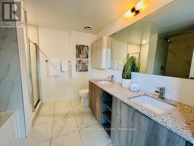 RARE Corner Suite in Sought-After Gramercy Park! Experience sophisticated city living at Southside Residences. This exceptional, rarely offered corner suite is the one you've been waiting for. With a bright, airy, and spacious layout, this unit features 2 bedrooms, 2 full bathrooms, plus a study area - perfect for a home office. Stylish kitchen that boasts a timeless neutral palette, elegant stone countertops, and a convenient centre island for cooking and entertaining. Retreat to the sun-drenched primary bedroom complete with double closets, a luxurious 5-piece ensuite bath, and walk out to balcony. Includes the convenience of a locker on the same level and underground parking. Enjoy an unbeatable location just steps from TTC, easy access to major highways, and minutes from Yorkdale Mall, top schools, a hospital, and every amenity you could possibly need. Don't miss the opportunity to live in the highly desired Gramercy Park community! (id:51158)