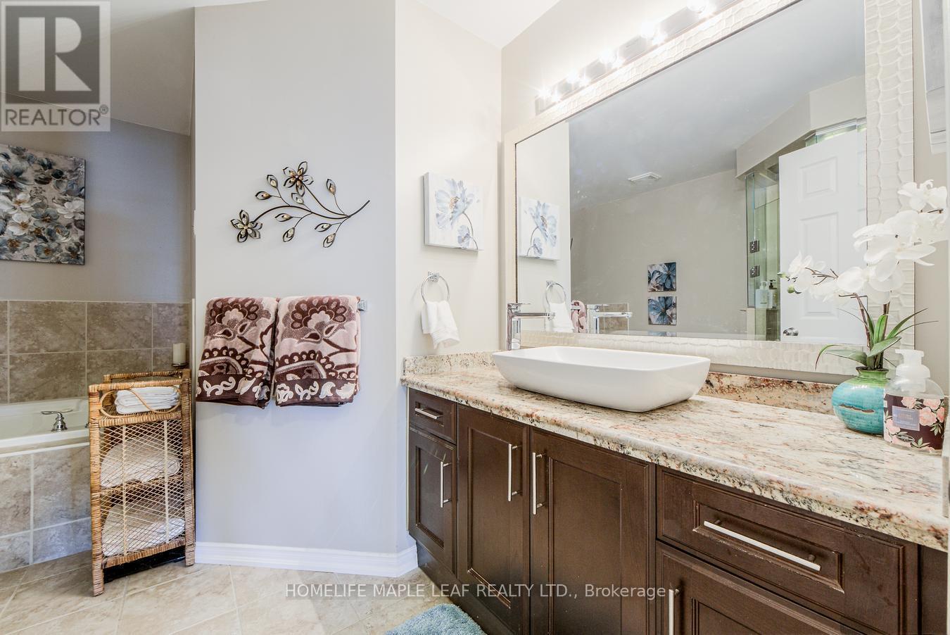 Welcome to your dream home in Waterdown! Perfectly placed in one of Waterdowns most sought-after neighbourhoods, this meticulously maintained corner end-unit freehold townhome offers approximately 2,900 sq. ft. of total living space (2,049 sq. ft. above ground), including 3 spacious bdrms and 4 washrooms With modern updates, thoughtful design, and an abundance of natural light, this home combines comfort and lifestyle in a highly desirable setting. *The main floor showcases 9 Feet Ceiling, new hardwood flooring, a separate dining and living area with 2 Way fireplace, and a chef-inspired kitchen with extended cabinetry, a centre island with raised breakfast bar, granite countertops and Eat- in- kitchen area, California Shutters. Step outside to enjoy a two-tier deck featuring a beautiful gazebo with custom built-in bench, all surrounded by lush greenery perfect for hosting! Entrance from Garage to Home. *Upstairs, the versatile loft/office is perfect for working from home, primary suite features 2 closets with one walk in closet, a luxurious En-ensuite complete with a oversized jacuzzi spa tub, glass shower, and granite vanity. 2 more generous size bdrms with windows overlooking the backyard and one full bathroom with soaker Tub. New carpet throughout the stairs and second floor. Recently renovated W/O balcony Newer Windows in the bdrms *The fully finished bsmt offers even more living space with new cork flooring , Pot lights, a den, ample storage, a washroom, and a cozy fireplace set against a beautiful stone wall makes this level is as functional as it is stylish.Set in a quiet family-friendly neighbourhood on a cul-de-sac, this home is steps from one of the best schools, day Care, the YMCA, Memorial Park, and everyday amenities, with easy access to scenic walking trails, golf courses, and the Greenbelt countryside. Commuters will love being just 10 minutes to Aldershot GO Station and Highways 403, 407, and the QEW. Best rated restaurants in the area. (id:51158)