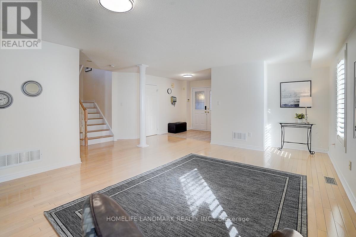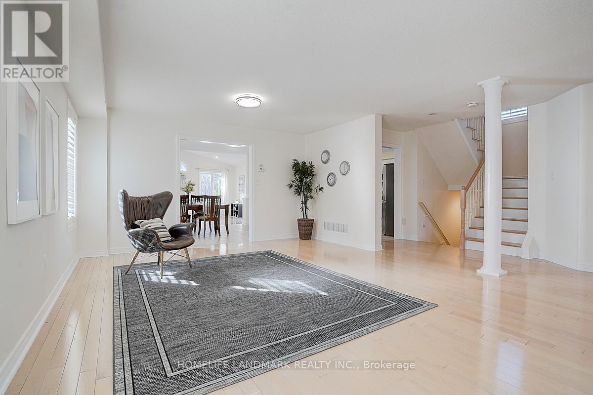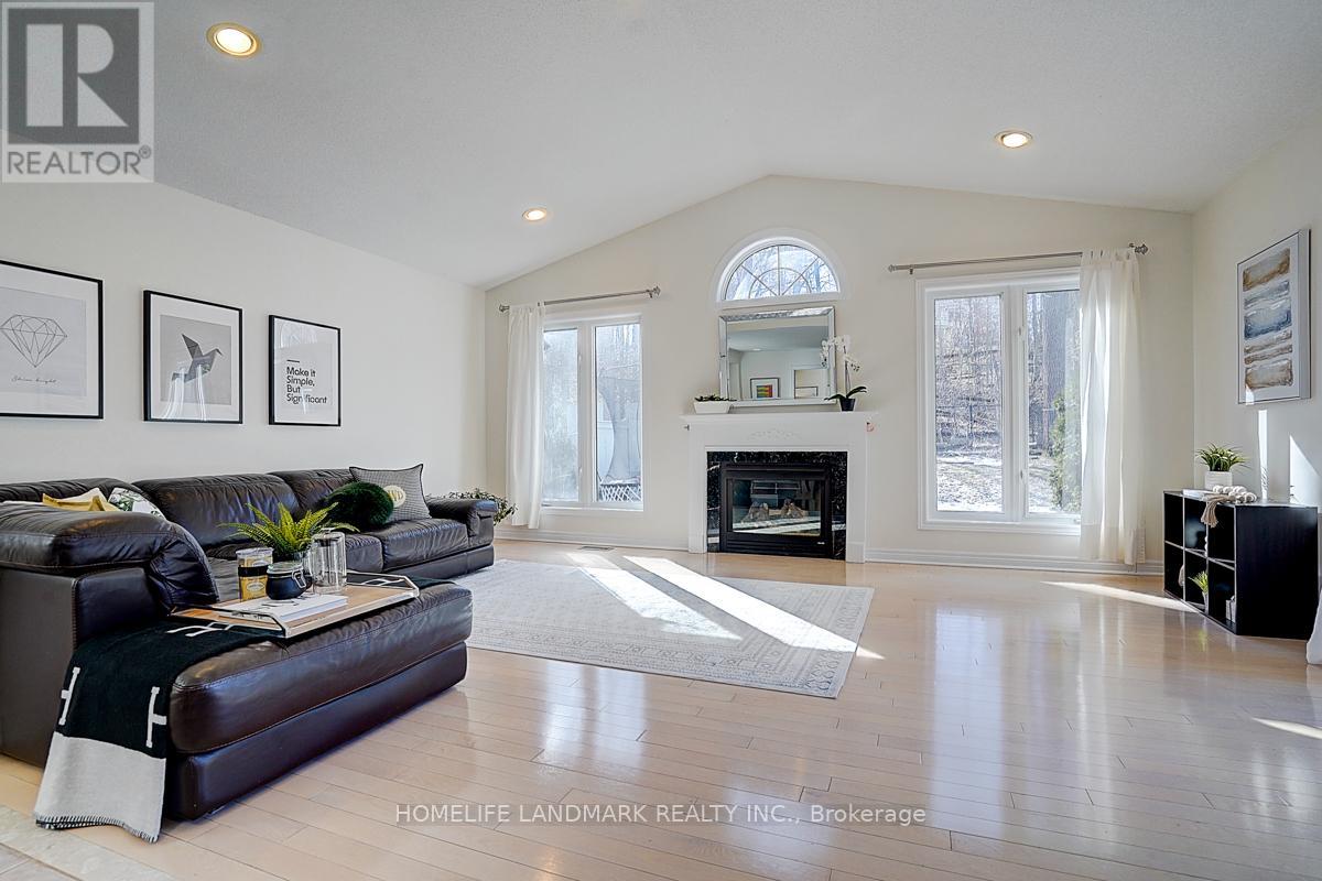 Stunning Detached Home Located in a sought-after neighborhood. Features a double garage with inside entry, hardwood and ceramic flooring throughout, and bright, sophisticated living and dining spaces. The spacious eat-in kitchen includes a breakfast bar, while the large family room impresses with a gas fireplace and soaring cathedral ceiling. Main-floor laundry and powder room add convenience. The primary suite offers a walk-in closet and a spa-inspired ensuite. Step outside to a beautifully landscaped backyard with a stone patio, in-ground sprinkler system. Backing onto a scenic forest and peaceful trail. Offers a rare blend of nature and privacy. Enjoy daily walks under a trees, vibrant fall colors, and a tranquil setting just beyond your backyard. Wilkins Walk Trail Just Behind Backyard and Wilkins Beach Steps Away (id:51158)