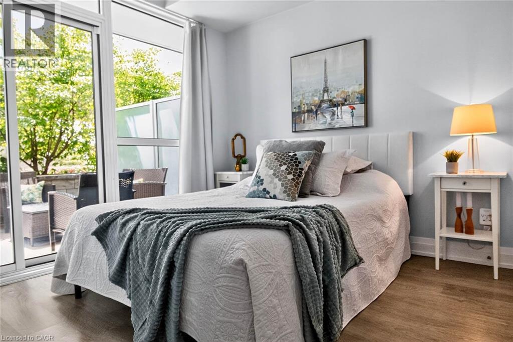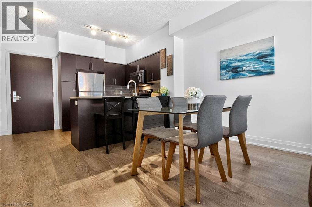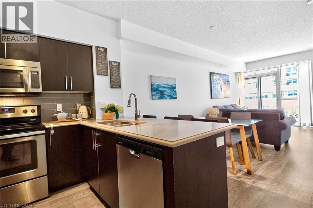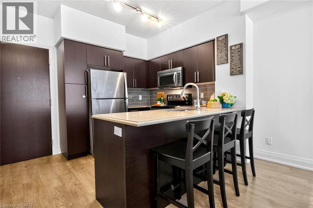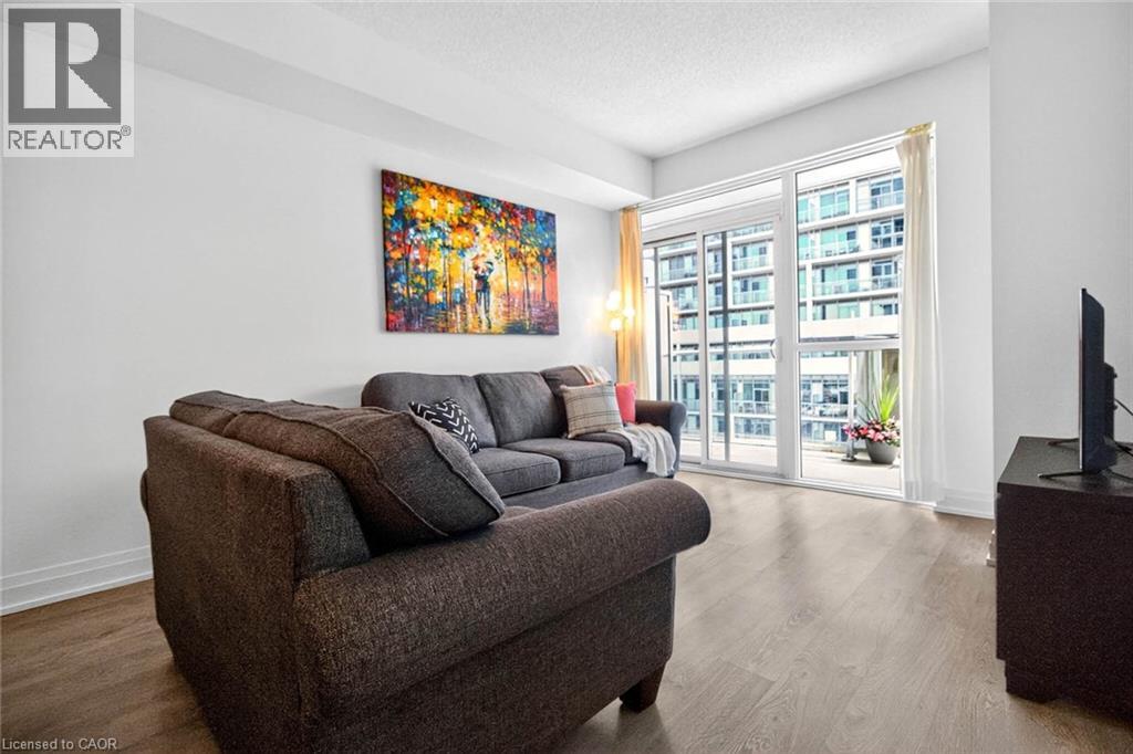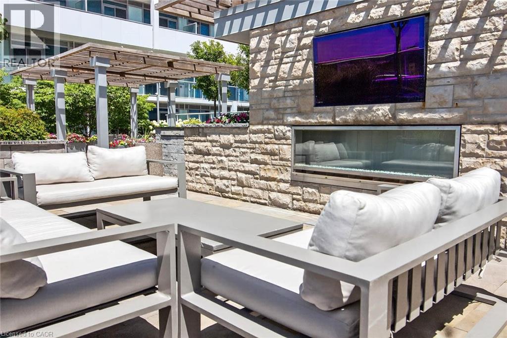Absolute Gem!! This bright, open-concept 1-bedroom plus den unit, spanning 693 sq. ft. (MPAC), features a spacious private terrace, ideal for entertaining. Enjoy premium upgrades, including a sleek kitchen with quartz countertops, an undermount sink, stylish backsplash, and stainless steel appliances. The suite boasts gleaming floors, 9-foot ceilings, a primary bedroom with a semi-ensuite bathroom and walk-in closet, plus a charming separate den, great for a home office. Unwind on your private terrace or take advantage of the stunning rooftop terrace on the same level, no elevator required for BBQs and gatherings, complete with great views! Located in an exceptional with top class amenities, including an indoor pool, hot tub, dry sauna, gym, party room, and BBQ facilities plus Public Access Wifi (Common Areas). Perfectly situated in vibrant Oakville, close to shopping, restaurants, parks, public transit, Go Station and the QEW, with Lake Ontario and Entertainment nearby. This unit is a must see!! (id:51158)