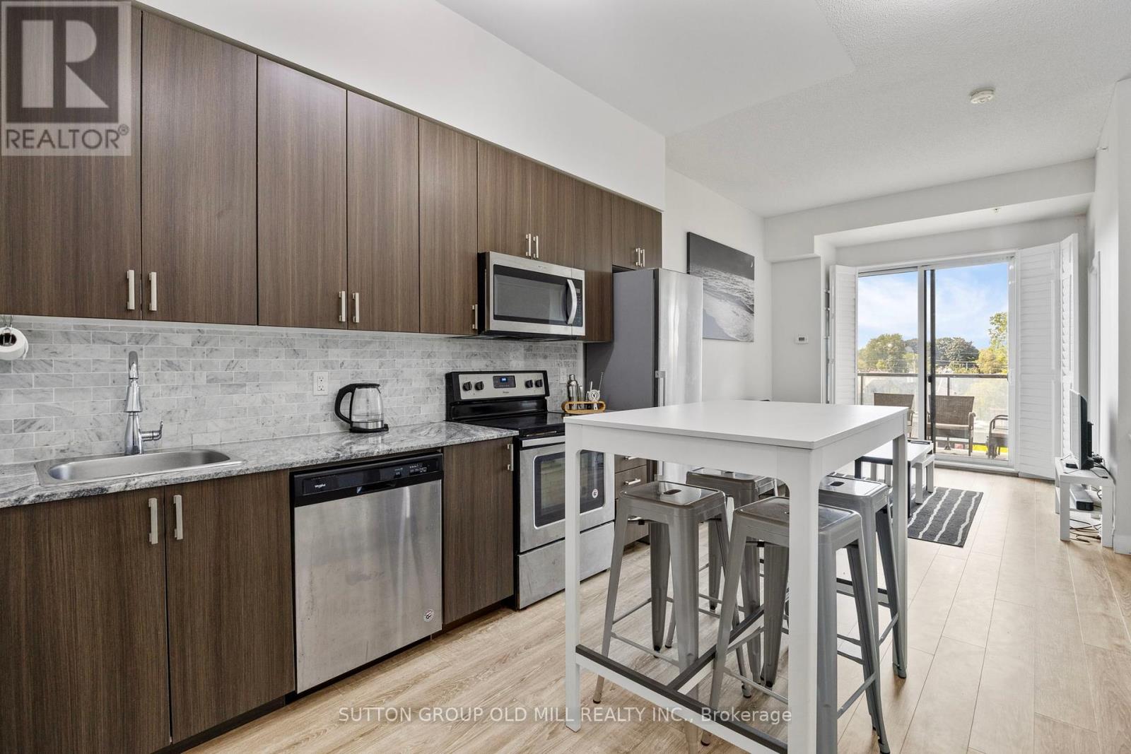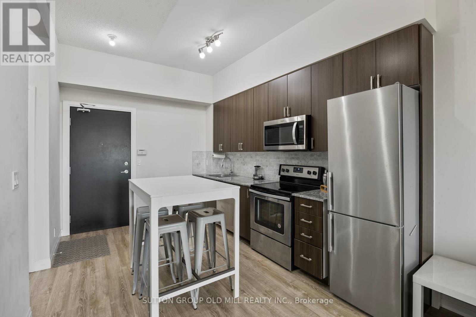 Come and experience Haven on the Bluffs! This one bedroom plus den boasts an open concept floor plan with 10 foot ceilings. The kitchen has granite counters, a ceramic backsplash & stainless steel appliances. Also included is an ensuite washer/dryer, one underground parking space and locker unit located on the second level. Steps to shopping, cafe's, restaurants and transit at your doorstep. (id:51158)