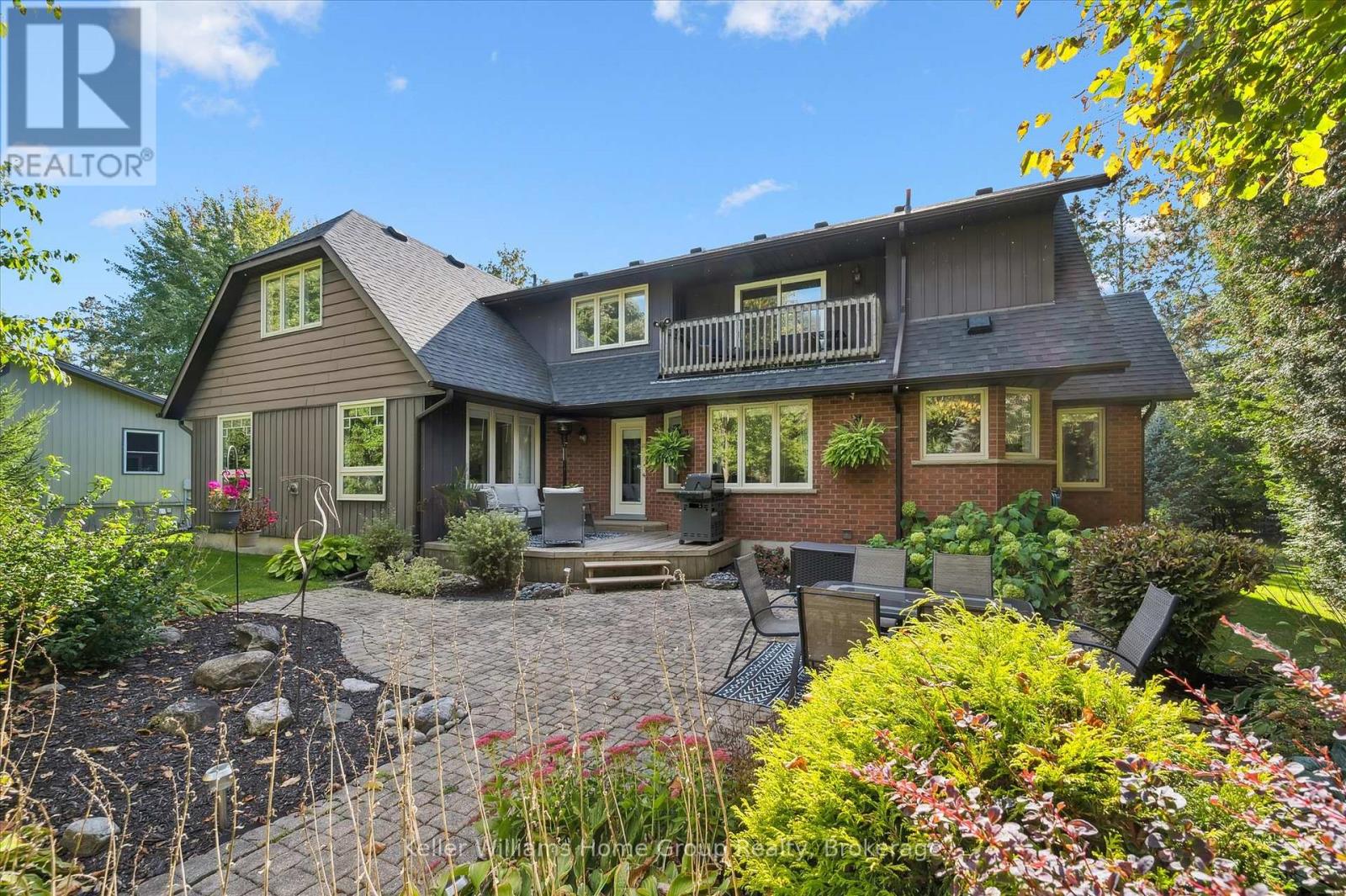 Welcome to this beautifully refreshed 4-bedroom, 4-bathroom custom home set on a private 0.7-acre tree-lined lot just minutes from downtown Fergus. With approximately 2,800 sq ft of living space, this home features a renovated kitchen with granite countertops, walk-in pantry, and coffee bar, an open-concept main floor perfect for entertaining, and a spacious primary suite with a large walk-in closet and a versatile nook ideal for an office, dressing room, or reading area. The newly reorganized second level offers private access to all bedrooms, a Jack and Jill bathroom between two bedrooms, a stunning new 4-piece family bath, and a beautifully finished ensuite in the primary. A main floor powder room adds convenience, and the family room connects directly to the laundry, which could be converted back to a 3-piece bath if one-level living is desired. The mostly unfinished basement includes a finished room perfect for an office, guest room, or potential fifth bedroom. An attached 2-car garage, front deck for enjoying the afternoon and a back deck surrounded by mature trees and perennial gardens complete this quiet, spacious, and move-in-ready in-town retreat truly one of a kind. (id:51158)