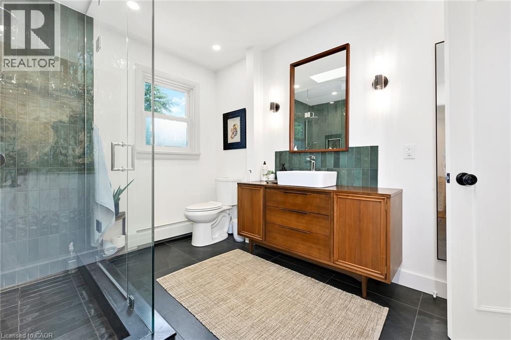 Welcome to this beautifully updated, 5 bedroom, 4 bathroom, sprawling ranch home offering over 3700 sq ft of living space. Ideally situated on an expansive 96 x 124 ft, private, tree lined lot in a quiet, coveted south Aldershot neighbourhood. The quality finishings, functional layout, stunning grounds and desirable location make this a rare find. Step inside to the welcoming foyer which leads to the open concept living room and dinning room featuring hardwood floors, stone fireplace and picture windows. The kitchen feels like your own bistro complete with Wolf range, lots of counter space, plenty of storage with 2 large pantries, ample cupboards, dine-in area and a spectacular view of the backyard. A chef’s dream space to create. The spacious split floor plan is ideal for families. The primary suite with a private den, and a gorgeous updated spa bathroom, a second bedroom plus a powder room are at one end of the home. At the other end, three additional generous sized bedrooms and a newly updated 3 pc bathroom. The incredible backyard is where memories are made. Lounging around the in-ground pool, relaxing under the custom pergola, or entertaining family and friends, it’s like having a private 5 star resort. The lower level of the home offers so much space and versatility. A huge rec room with fireplace and custom bar, 3 pc bathroom, office, den, laundry, workout room and loads of storage including a cedar lined closet. There are three separate entrances to the lower level, the perfect set up for an in-law suite. Fully fenced yard. Double garage with inside entry. Located near Lake Ontario, walking and biking trails, parks, schools and downtown Burlington’s shops and restaurants. Commuting is easy with quick access to the GO train and major highways. 655 Gayne offers an abundance of space and an idyllic lifestyle. All you need to do is unpack and enjoy. Full list of the features and updates available upon request. (id:51158)
